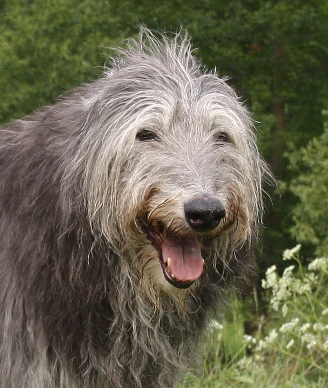 Een poosje terug liep ik met de hounds een rondje bos. Achter bij het maisveld aangekomen moesten de meiden, Caintha en Coney, even dakken door het 30 centimeter hoge mais. Ik vond dit niet zo’n goed plan en probeerde ze op het pad te krijgen. Goh, wat kunnen Deerhounds toch ongelooflijk slecht luisteren, eigenlijk helemaal niet, als ze plezier hebben. Onze achterbuurman was op zijn stukje grond aan het werk en kwam kijken wat er aan de hand was. Natuurlijk kwamen we tot een praatje en de meiden kwamen tot rust en stonden vast iets erg smerigs boven water (maisveld) te wroeten. Hun neuzen verdwenen steeds dieper in de bagger en hun poten werden steeds zwarter. Op een gegeven moment kwam Coney over het greppeltje en wilde de buurman wel begroeten, dit kon ik gelukkig voorkomen! Maar daar kwam een andere bosbewoner aan met Mo, een Dwerg Schnauzer. Na Mo te hebben begroet was natúúrlijk de eigenaar in zijn witte korte broek aan de beurt, dat kon ik niet voorkomen. Met een zeer enthousiaste zwaai van haar met bagger doordrenkte snoet, porde Coney haar neus in zijn kruis. “Niet doen, ik heb net een schone broek aan!” Met een zo strak mogelijk gezicht mompelde ik mijn excusses en zei dat ik de stomerij kosten wel zou betalen. In gedachten zag ik hem al ’s middags met zijn vrouw (ook zo’n modepoppetje) door het centrum van Breda lopen terwijl hij vergeten zou zijn om een schone broek aan te trekken.