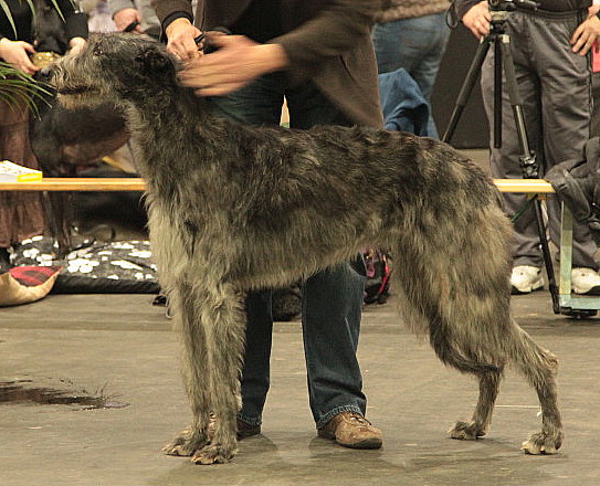 tegen haar broer voor Beste Baby en dit won zij. Aan het eind van de dag werd ze zelfs Baby Best in Show ! Brandir behaalde een derde plaatst in de kampioensklas. Het was een beetje een sfeerloze show met weinig echt mooie Deerhounds, de kwaliteit in Duitsland gaat duidelijk achteruit. Beste reu en BOB werd uiteindelijk Landlord von der Oelmühle van Florent Friedrich en Beste teef werd Barnsmore Energy of Life van Viola en Wolfgang Müller.