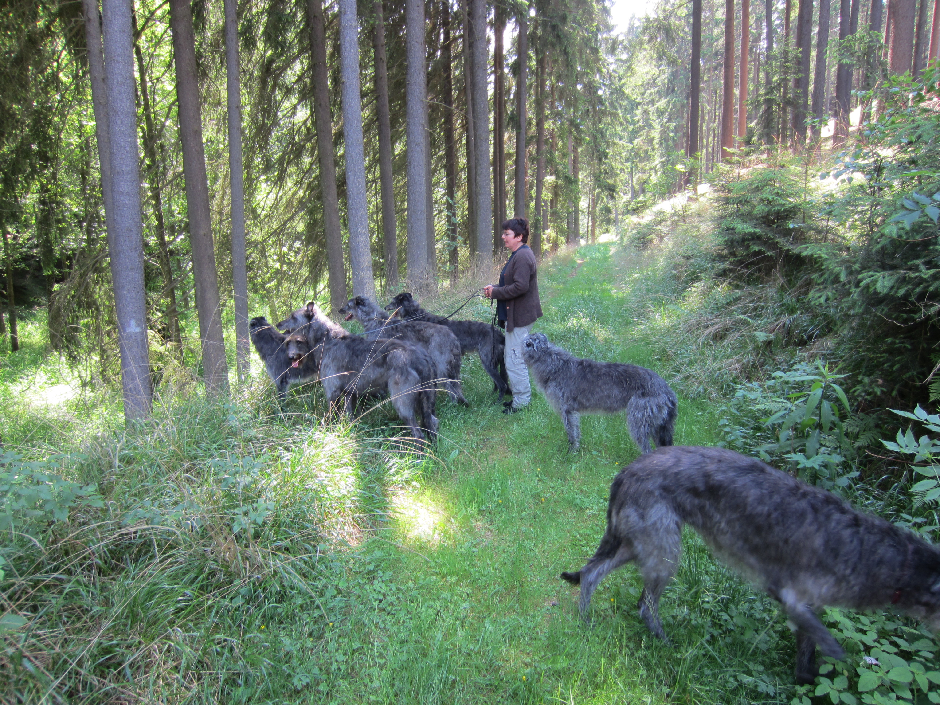 Donderdagochtend, 31 mei, vertrekken we, Sonja en wij, richting Tsjechië. Vlak voor de Tsjechische grens slaan we nog 60 kilo vlees in voor de hounds. Het past maar net in de vier vriezertjes die we bij ons hebben maar het moet net voldoende zijn om onze 8 hounds iedere dag van een normale maaltijd te kunnen voorzien. We blijven een aantal dagen op een leuke camping in het plaatsje Červená Řečice, een eindje onder Praag, overnachten. Het is er zeer spannend want het stikt er van het wild. De oudere dames; Coney, Caintha, Lavinia en nog niet