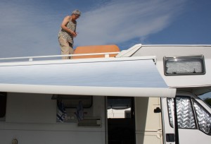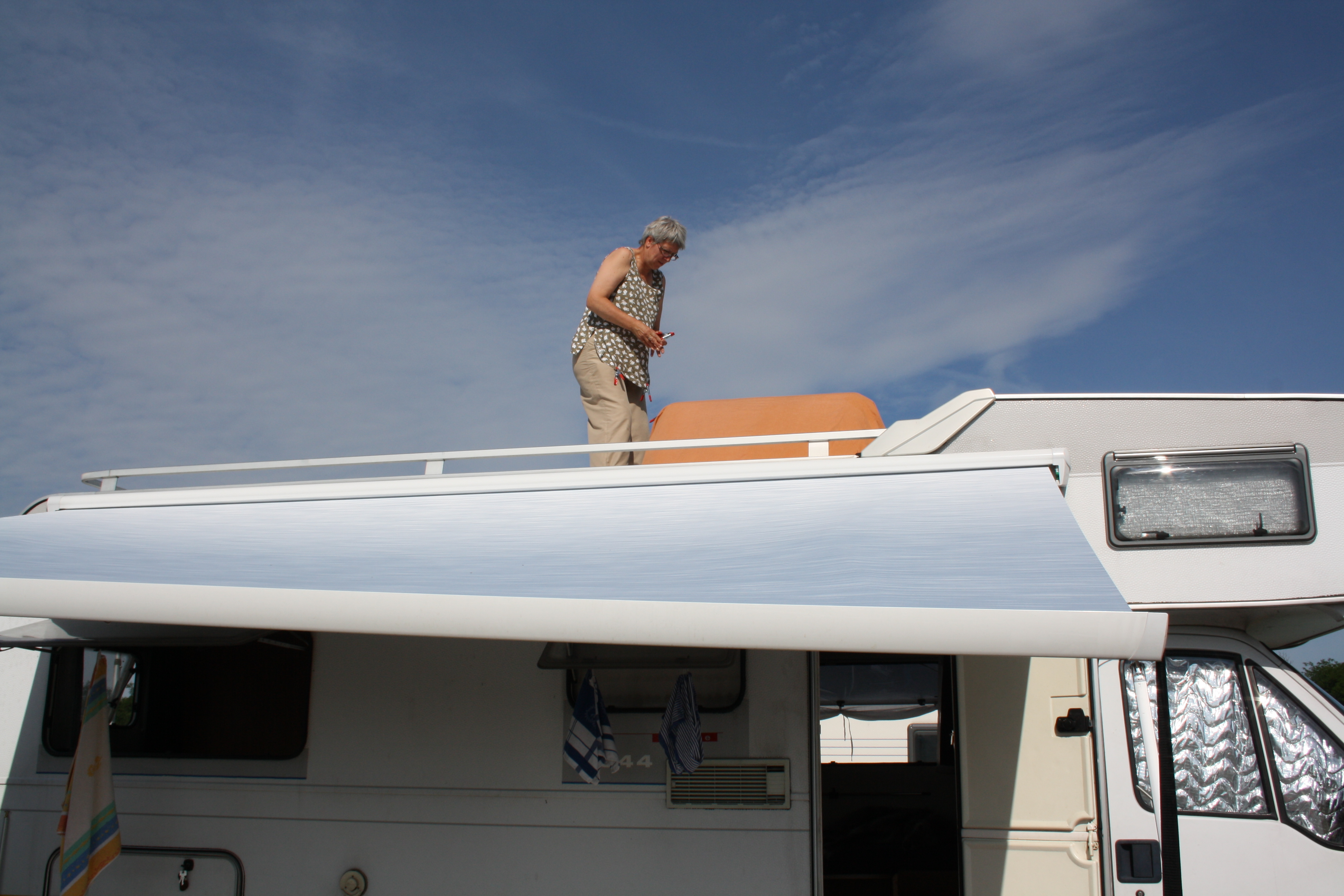 kilometer per uur bergaf is niet normaal. We stoppen op de eerste parkeerplaats en kijken of de turboslang nog op z’n plek zit. Alles ziet er goed uit en de temperatuur is ook prima dus besluiten we om in ieder geval de grens over te rijden. We merken al gauw dat Elvira weer vol levensvreugd is, waarschijnlijk een tijdelijke blokkade van de luchttoevoer, en op één van de volgende parkeerplaatsen nemen we afscheid van elkaar en scheiden onze wegen. Sonja gaat richting Hermannsburg en wij willen nog een overnachting maken in Dortmund voordat we doorrijden naar Rijsbergen. Maar vlak voor Dortmund begint het te regenen en het houdt niet meer op. Bij de camperparkeerplaats aangekomen regent het nog steeds. De plaats staat vol met auto’s en één camper, er is nog wel een klein plekje maar dan lopen we constant door een plas bagger de caravan in en uit. Dit zien we niet zitten en besluiten door te rijden naar huis. Om ongeveer half elf zijn we thuis. Blij en een paar illusies armer.