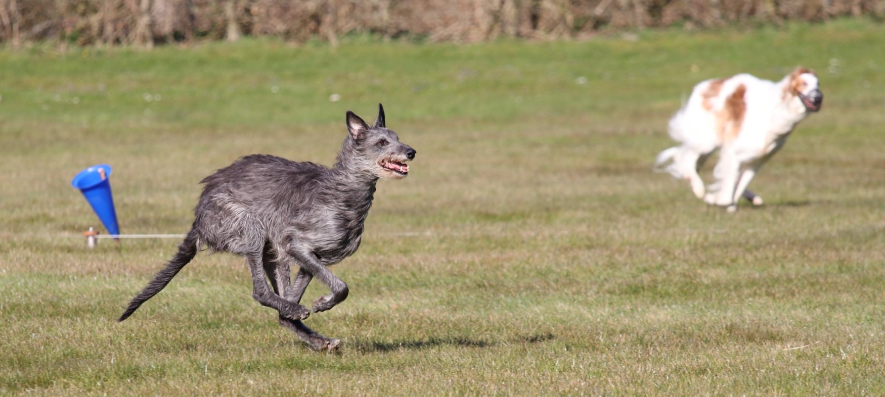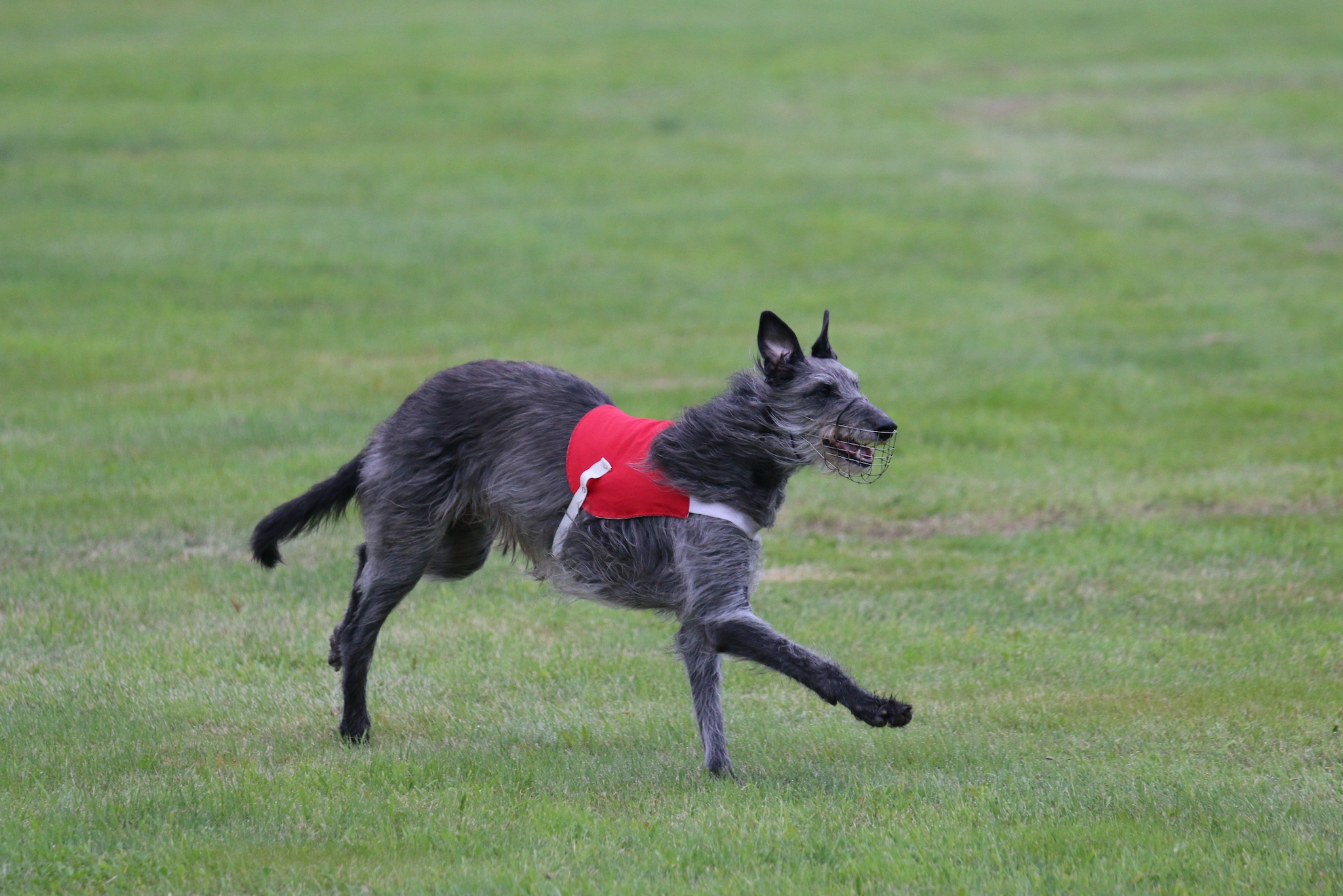 Von Sonja ging es weiter nach Göhlsdorf, wo wir uns seit vielen Jahren um das Coursing kümmern dürfen. Leider gab es dieses Jahr keine Ausstllung, da es die gleiche Wochenende wie die Ausstellung in Donaueschingen . Sehr seltsam, weil es etwa 700 Kilometer voneinander entfernt ist, so dass sie nicht viel Konkurrenz voneinander haben!! Etwas mehr als 80 Windhunde waren für das Coursing gemeldet worden, davon 10 Deerhounds. Der parcour war wegen des warmen Wetters nicht allzu lang, aber zum Glück wehte eine schöne Brise, so dass es für die Hunde machbar war. Charlaigne lief nicht gut und wurde Achter, Crumbaugh Sechster und wie durch ein Wunder Cranston Argyll Dritter!