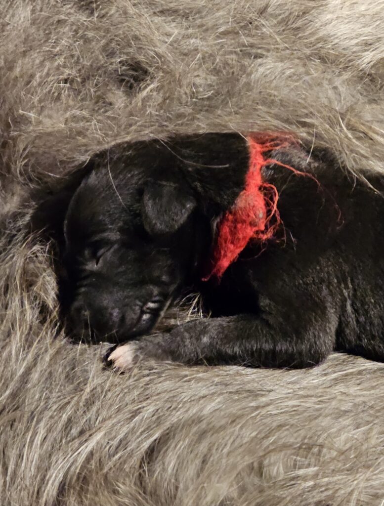 So dachten wir nach Nr. 8, dass Charlaigne fertig wäre, aber um zehn kamen die Wehen wieder und die letzte Rüde wurde geboren. Ein kräftiges Exemplar mit einem Gewicht von 510 Gramm.