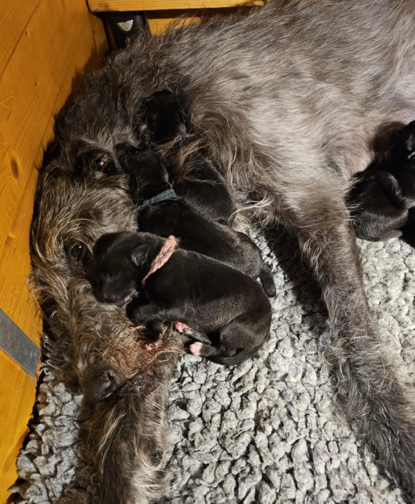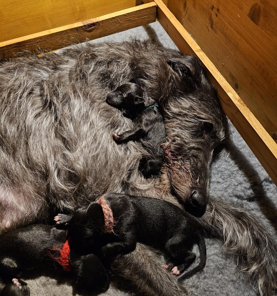 Während dieser ersten schwierigen Zeit zeigte sich bereits, dass Charlaigne eine großartige Mutter war. Sie war Tag und Nacht bei ihren Welpen und kümmerte sich rührend um sie.