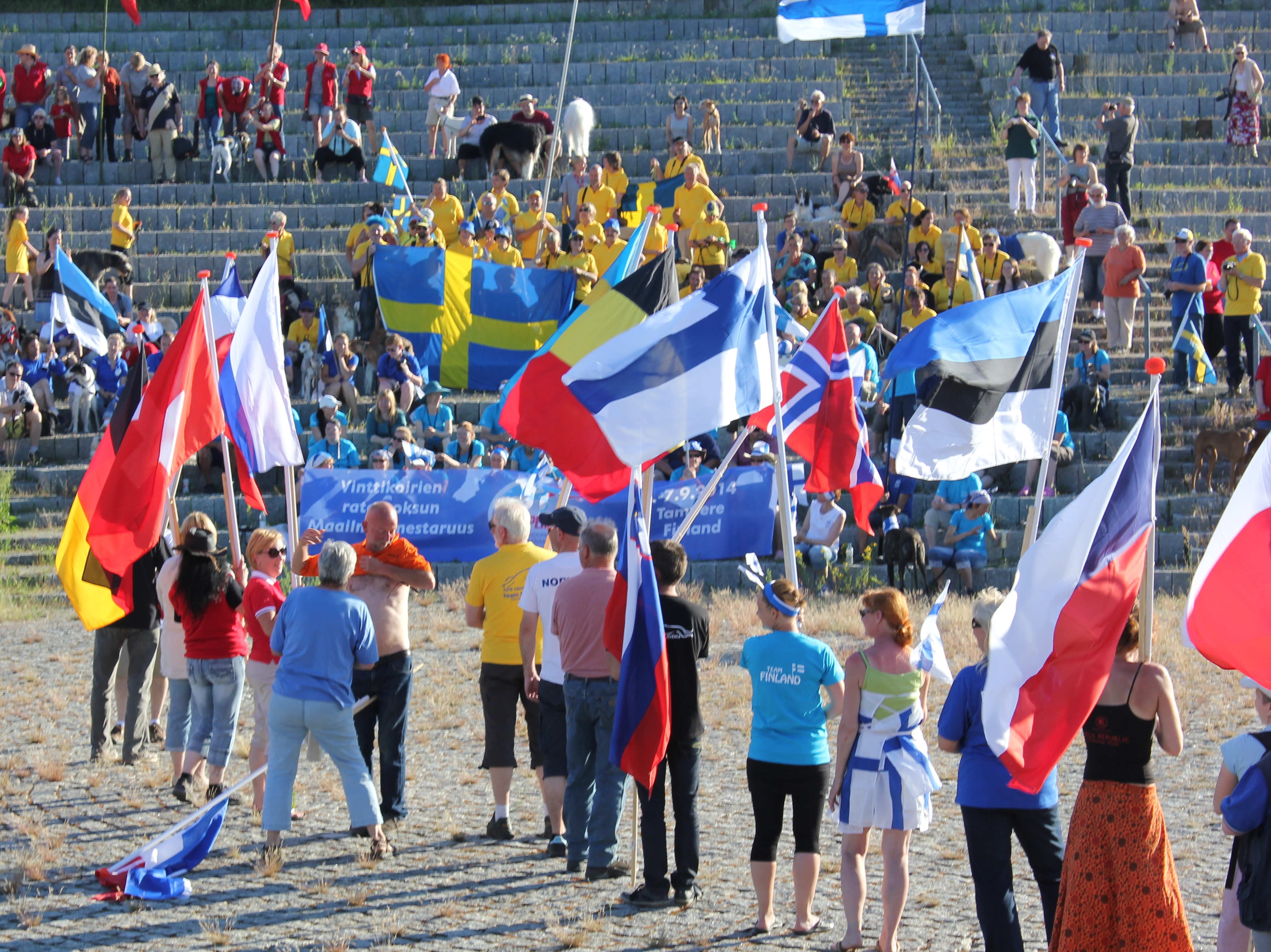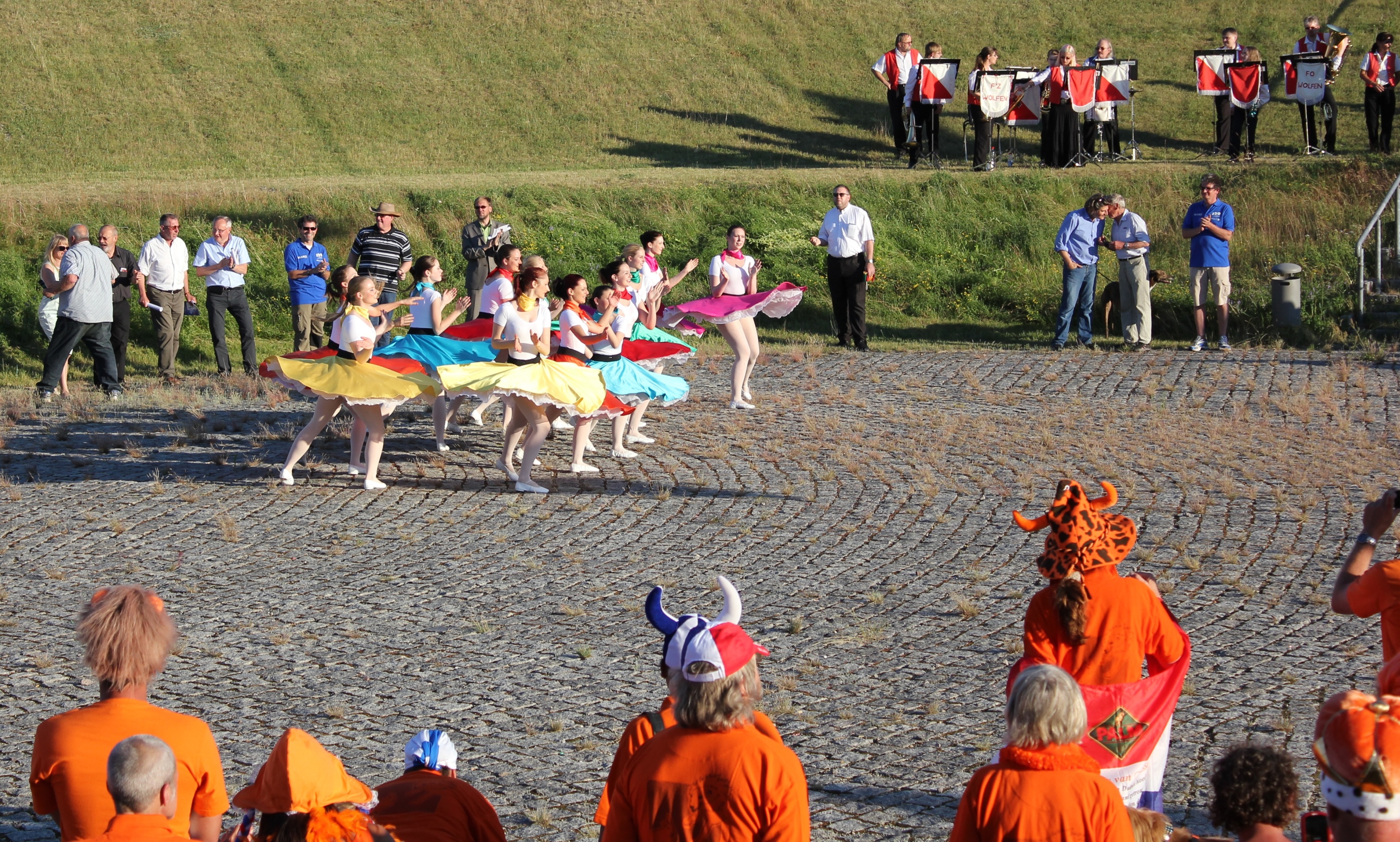 On Friday-evening, the opening took place in the amphitheatre in the middle of the peninsula. There Simon (almost) was too late and had forgotten to attract his orange polo, I sent Sonja with that thing to him to dress and-audience him.