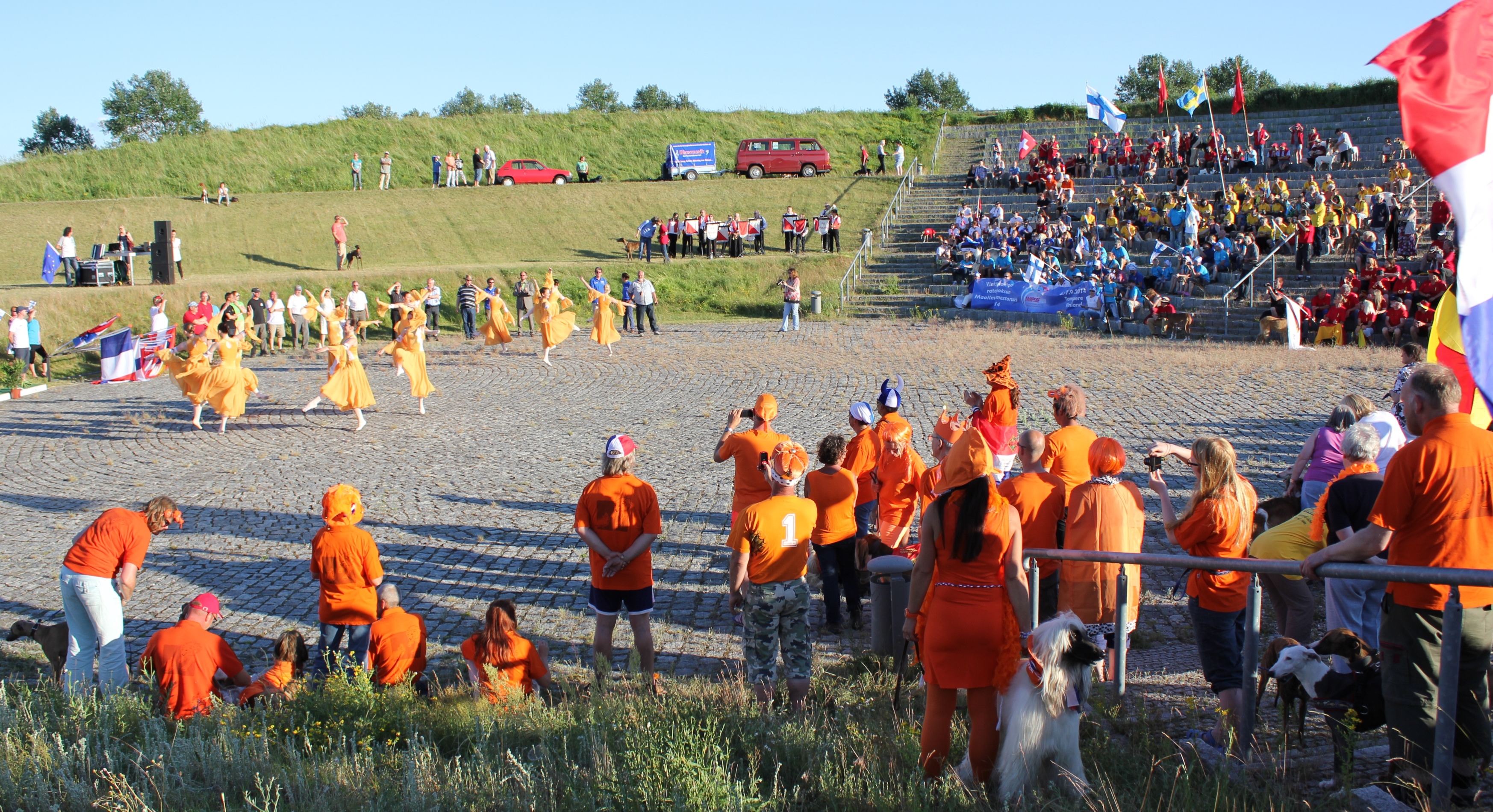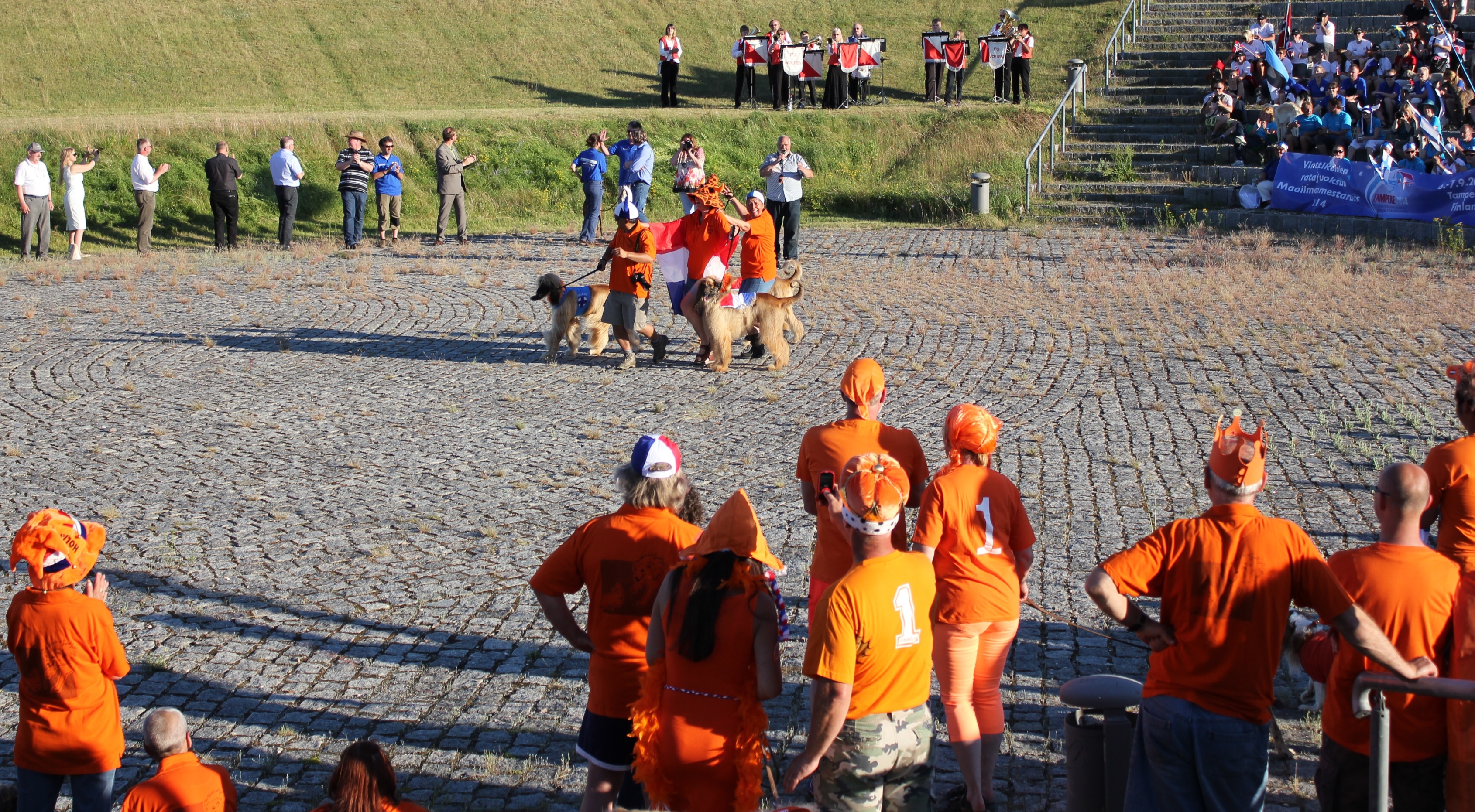 What was noticed by the larger varieties like the greyhounds, the Deerhounds and the next day the Barsoi's, Chart Polski's and the Irish Wolfhounds, was that there was quite a percentage of lame going to the podium. And there are only twelve of them…. According to the Chef D'équipe this was not by glass but by the bad courses/terrains. There were also several hounds unsubscribed for the second circulation due to injuries. Among other glass anyway??? All in all, the Netherlands did not perform badly, two first places, four second places, one fourth and one fifth place and yet we sang three times the Wilhelmus.