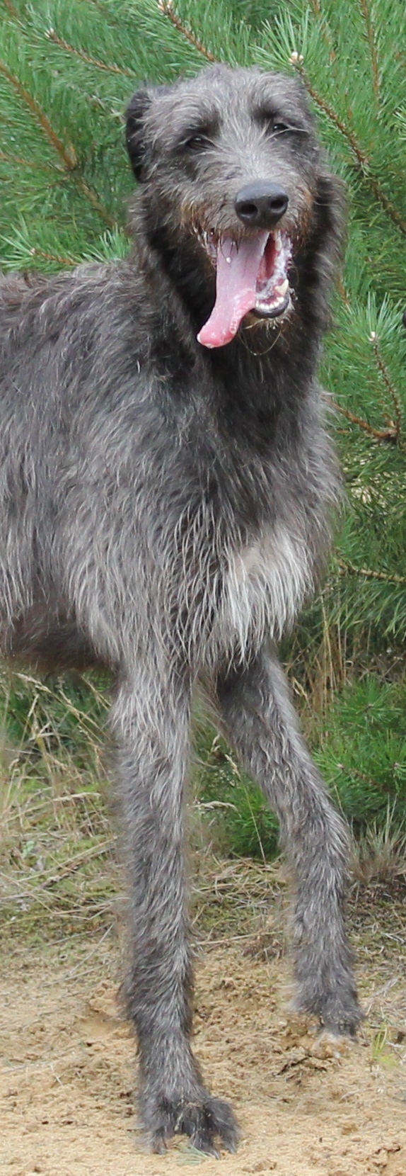 known Deerhoundfokker, who has been in the breed for many decades, has recently announced that he has never seen a Deerhound with Hubertus claws and also the colour ' wheaten ' according to Dr. Jödicke (He has already reported this in the last century) for quite some time ' Extinct '. But there are also ' grey ' crossings where in most cases you can see certain forms of body parts that the dog is not purity. If you doubt the varietal purity of your greyhound, you can let it be tested by having some blood (EDTA) in your vet. It must of course also check the chip number using the union booklet or the pedigree. This should be along with the form completed by you and your veterinarian, which you can find on the site of the DWZRV (www. DWZRV.de → Formulare → DNA Fingerprint) sent to Frau Ursula Arnold, Schlierbacher Weg 56, 64678 Linden Felsen, Germany and accompanied by a letter stating that it is the "DNA Test zur Rassebestimmung bei Windhunden". If you send it somewhere else you will most likely not get a correct result. The cost of the test is approximately 80,-euro, you will receive a later account.