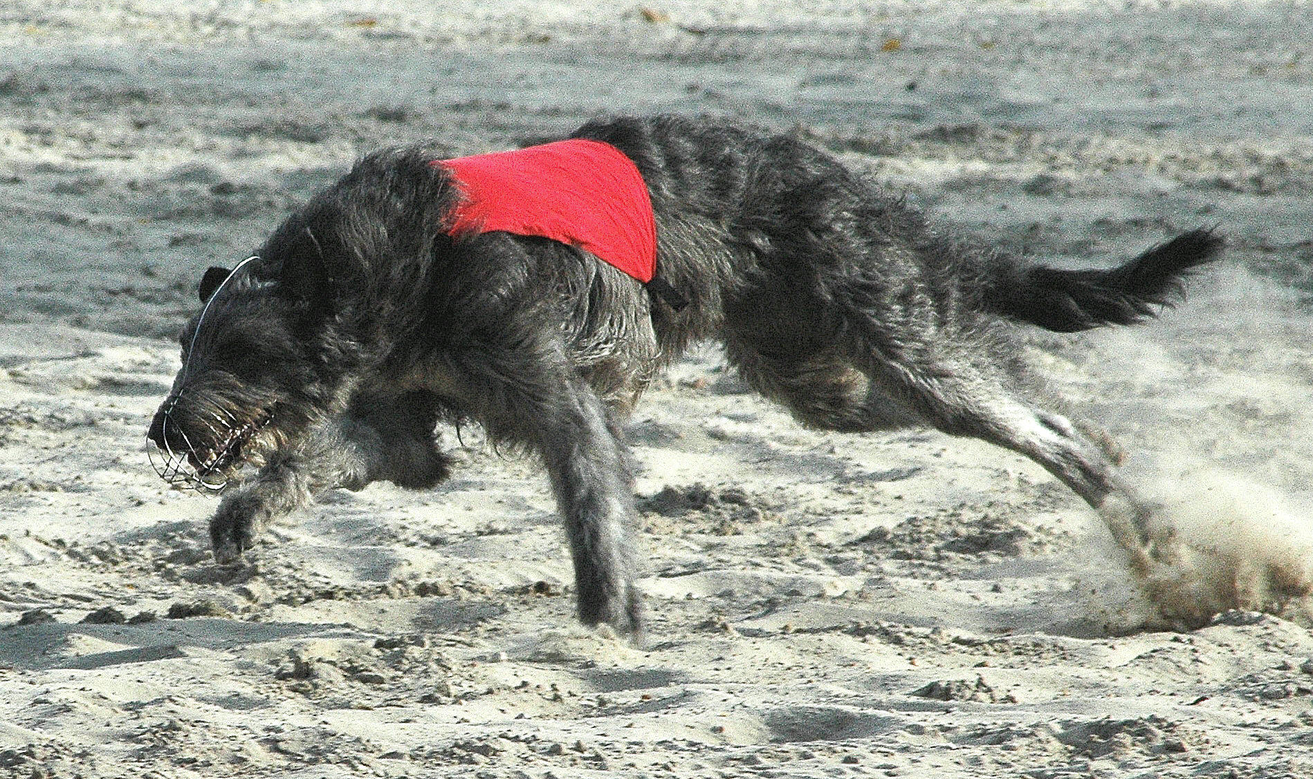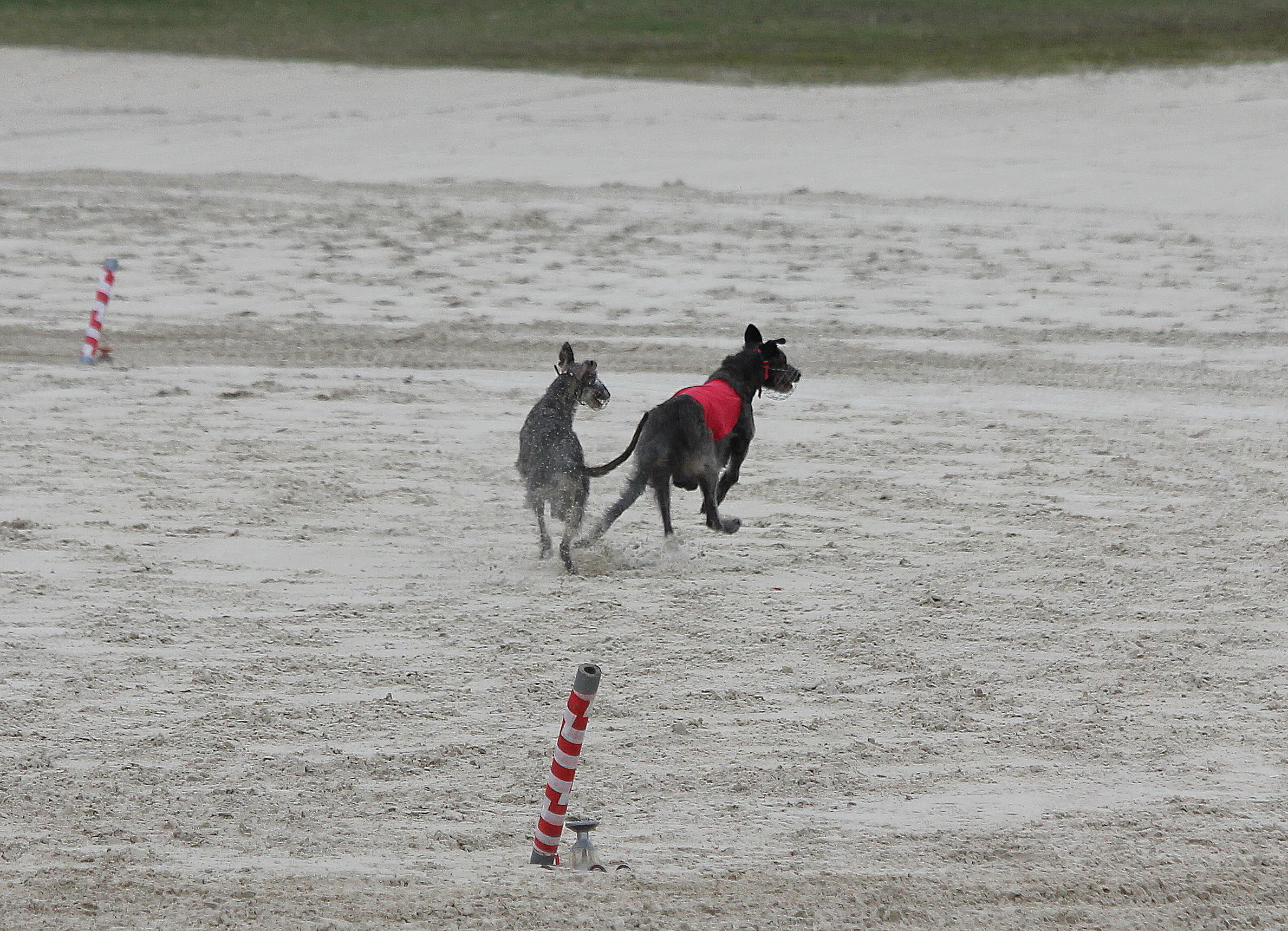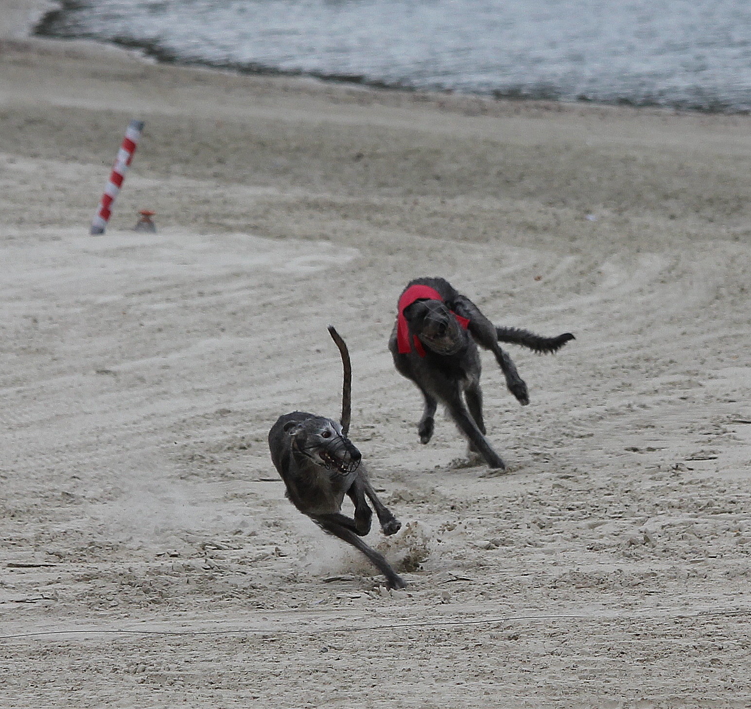 After I had the brandir on a leash and left the beach, I saw Ira Johannen standing with a hound ready. This was not mentioned in the afternoon program and I did not know who it was. Since Brandir really had given himself, I didn't keep looking at how this hound ran but we all (fiddle, Bernice, Picaro, Brandir, Sonja, Annemiek and I) started to run out of the hounds. At the end of the afternoon we were told that this was again Iora Rua from Janine but that there was a lot of commotion since this bitch had left the ground after the first attempt of the morning, crippled the terrain. Two first aiders had found that she had a torn nail and in consultation with the jury it was decided that she was not allowed to walk in the afternoon. Since someone else appeared with her at the start, no one had to say that it was the same bitch, so she started anyway. I have heard about it, she has walked the whole course and got quite lame from the terrain. So this is really not as it should be!!! In the evening, we even knew that Janine was already in the morning before the first turn on the crippled walk of Iora Rua. As an owner you have at eternal times the responsibility for your hound and a broken hound do not let you walk!!! So there was a lot of disgrace and with these two traps the Deerhound owners left a bad impression. Thanks!