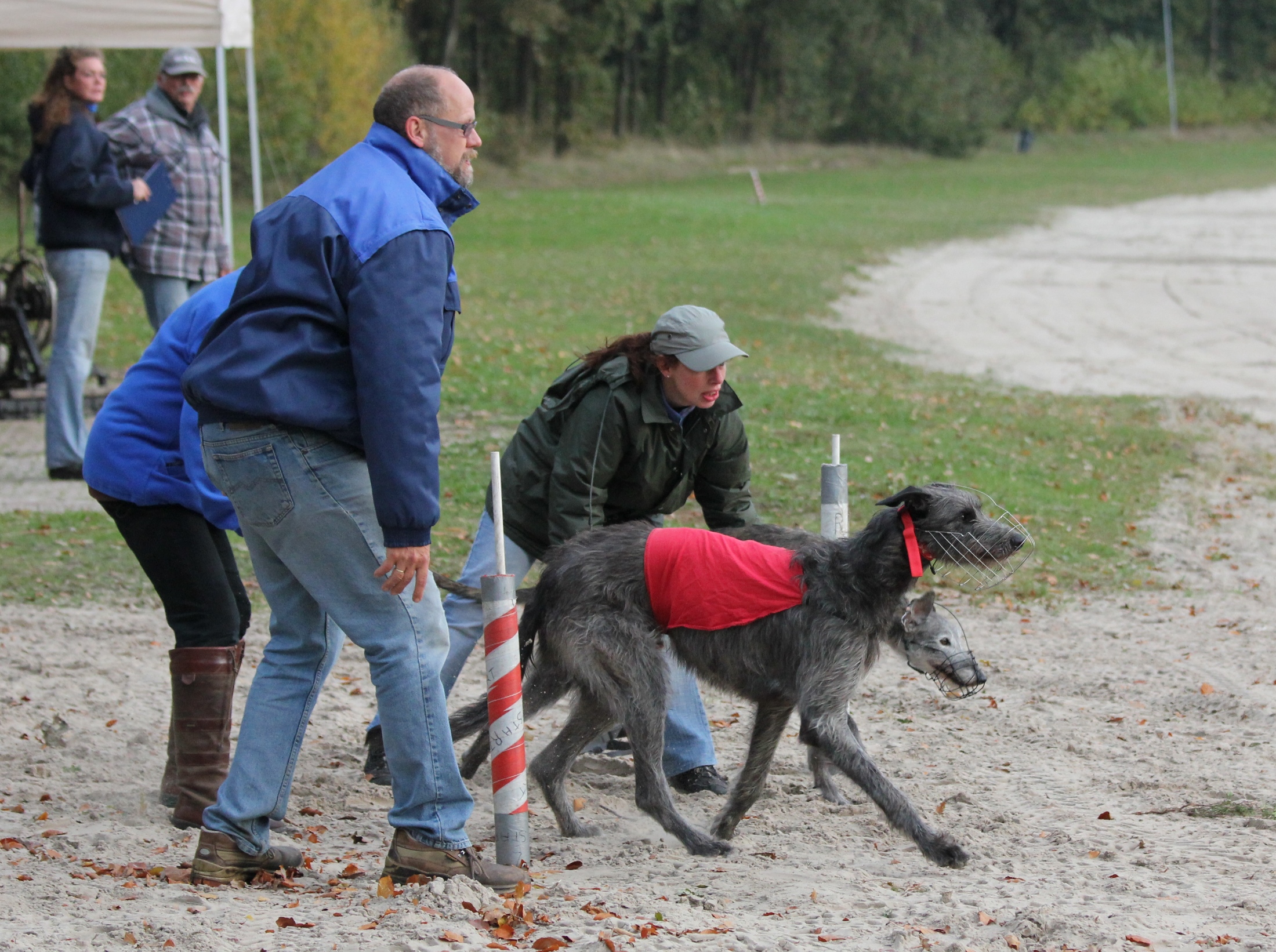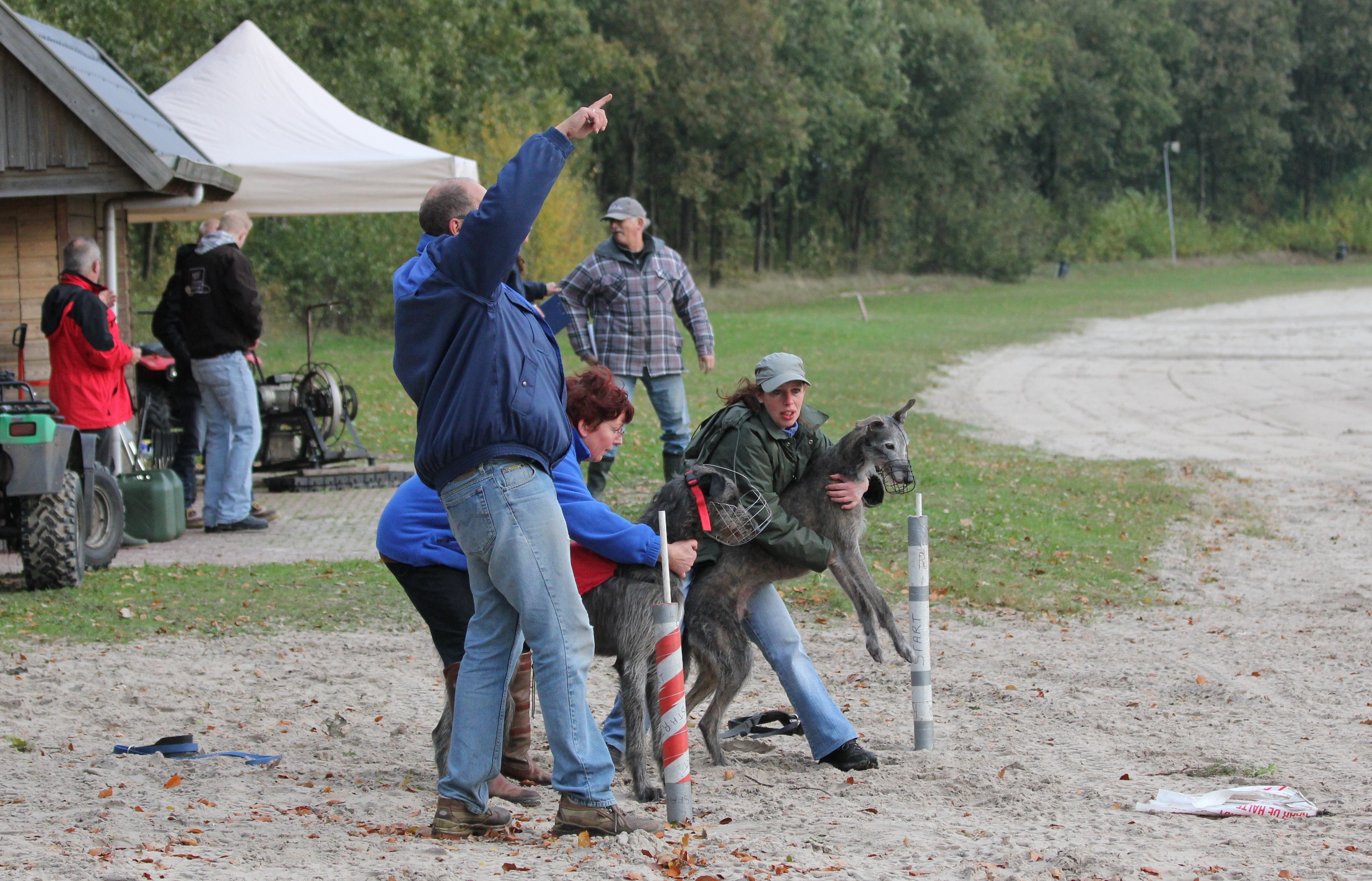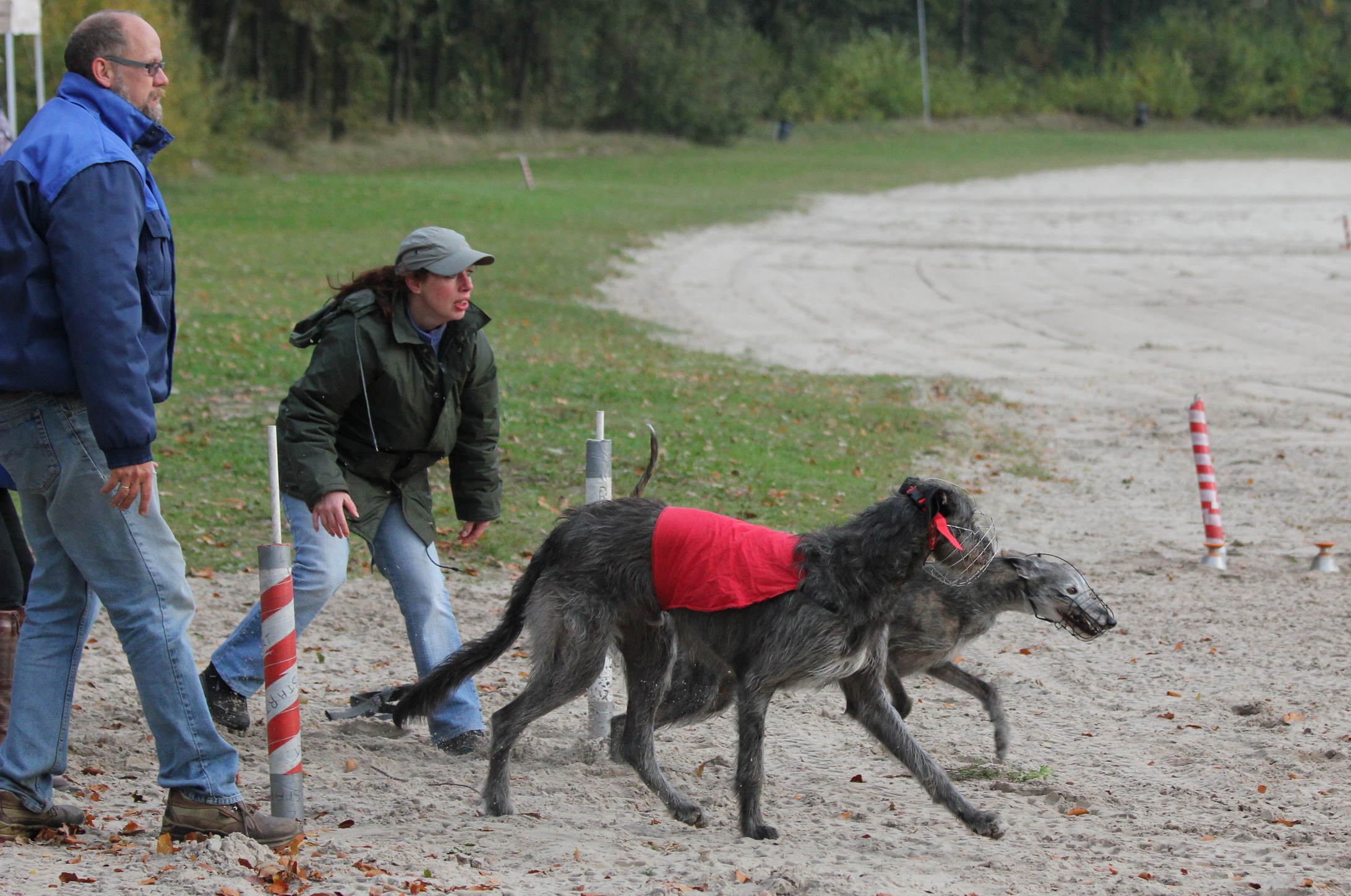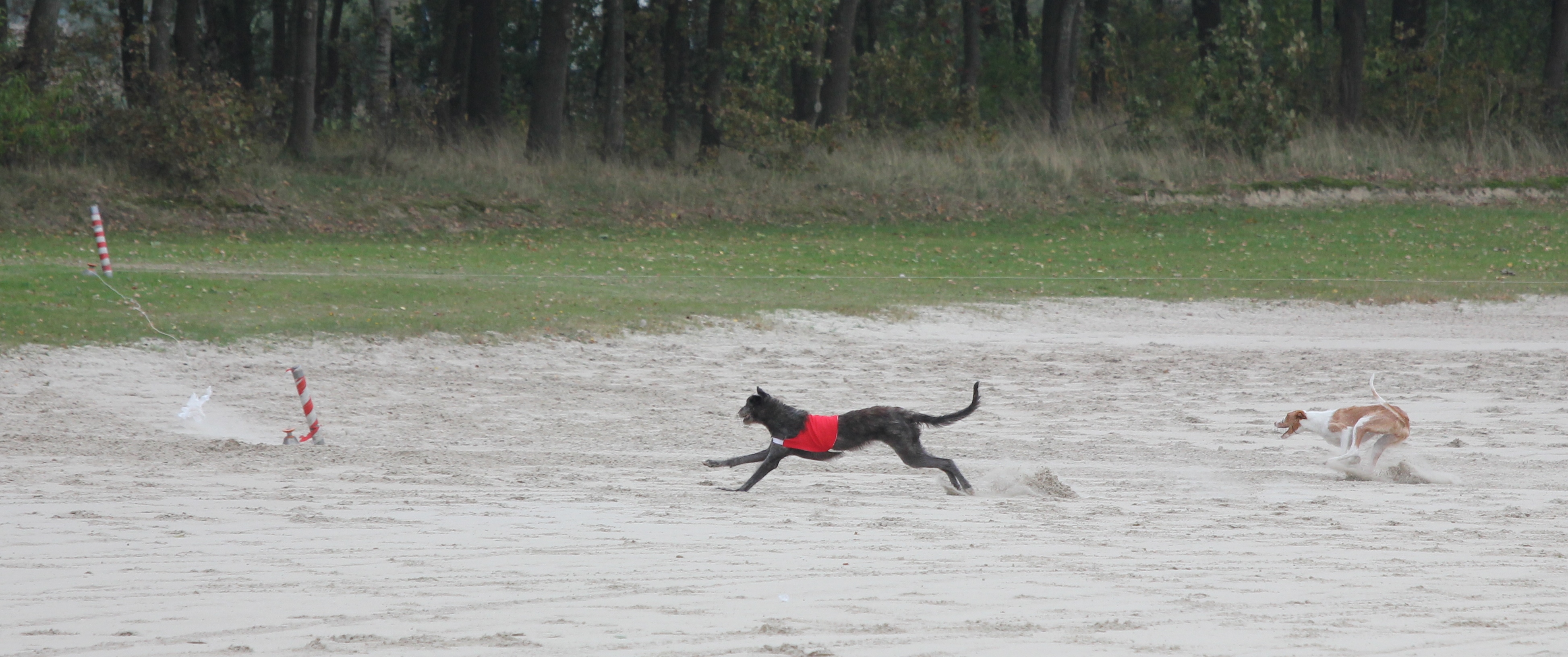 oursing but she wanted so much so I voted. Also Silva, almost 7 years young, wanted to stretch her legs again and finally we decided to Caintha, Silva and Calhoun at the same time to Coursingveld. A number of people looked strange when we appeared with this trio at the start. "What Crazy does a Deerhound with three-legged courses do?" But people had to know what Calhoun is doing on those three legs! I was already noticing Calhoun that it was serious and not like the last t