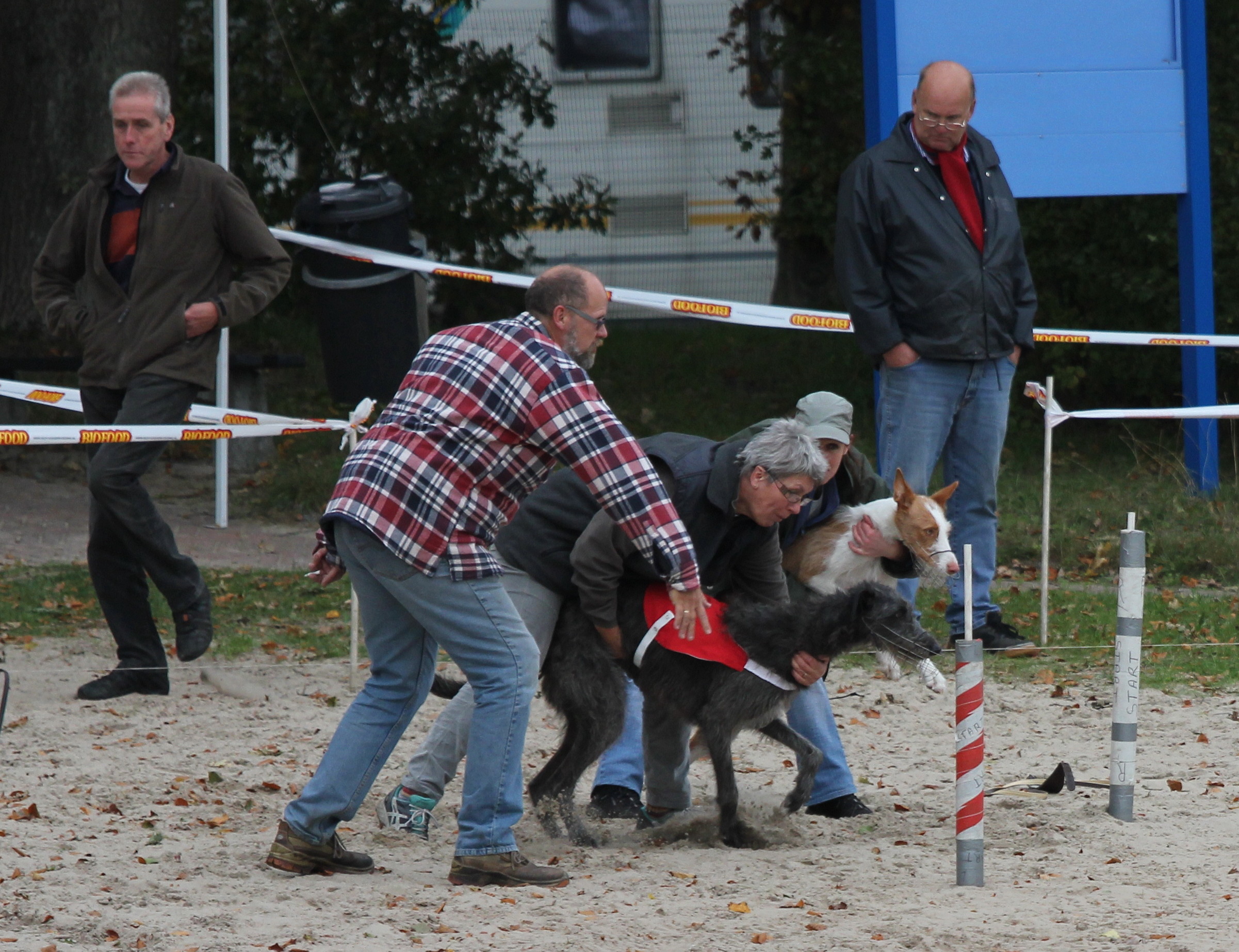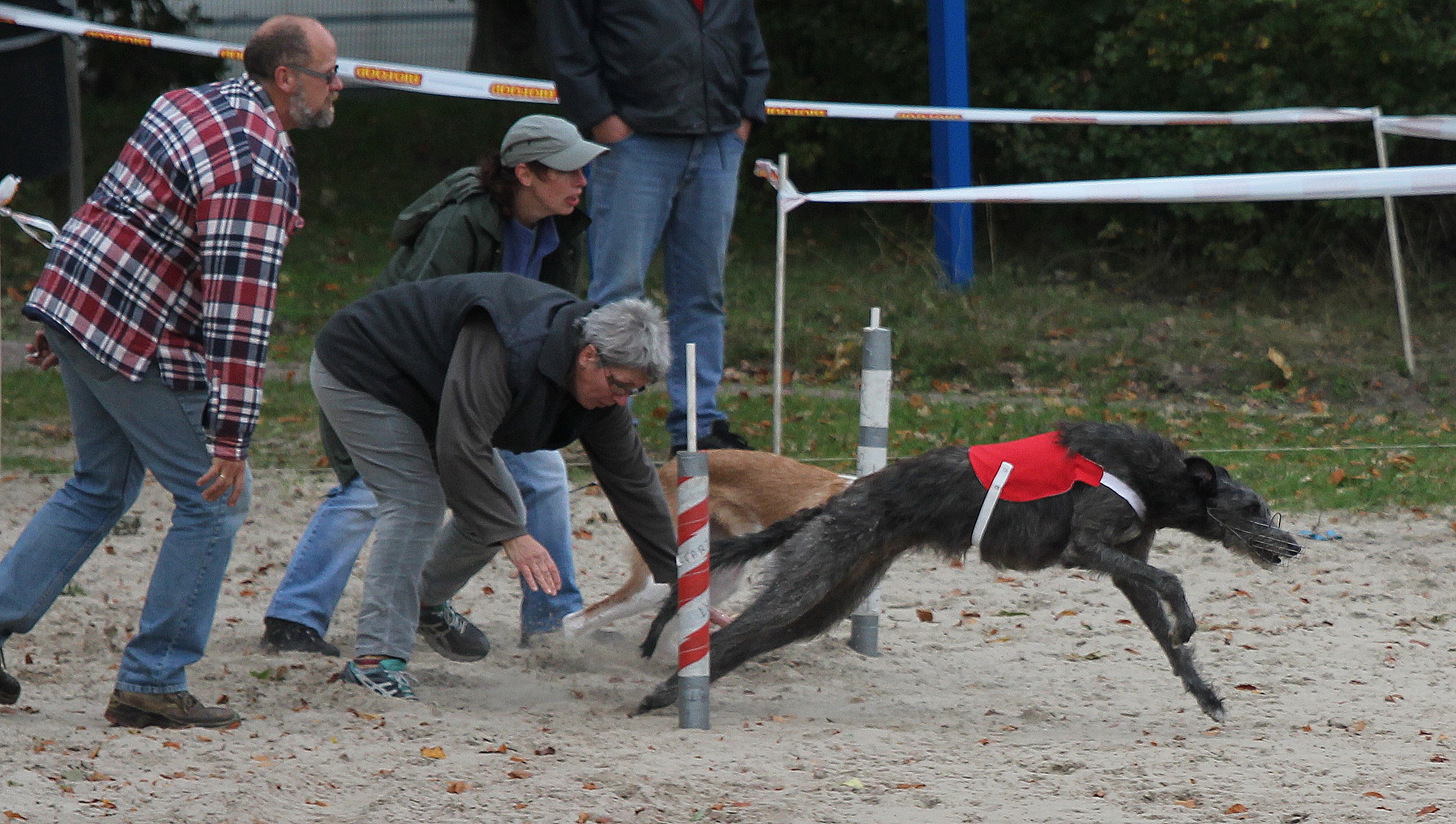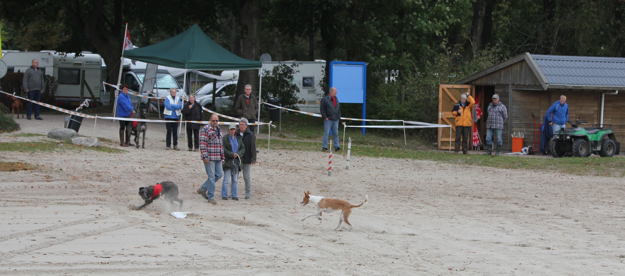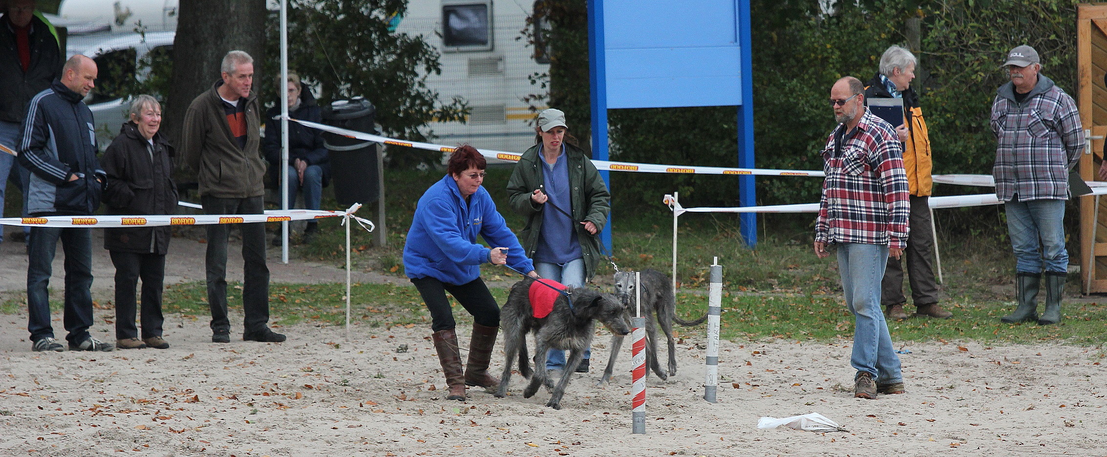 ay we headed for Berlin. The night was halfway by Sonja, Brandir did not know what he saw when his sister came to greet him! The next morning we drove all the way to Göhlsdorf, Simon was invited to join the international coursing judging and I was asked to approve during their CAC show. The coursing would take place on a large fenced lawn and fortunately the hounds could stretch the legs here on Friday afternoon. But of course there also had to be walked. Saturday morning, Simon, Angelika and Sonja went on the road and soon left the majority of the 9 hounds. It was immediately hit, several hares had to choose the Hazenpad and Calhoun got red wild in his nose and was right away. After a thick 15 minutes he came exhaust