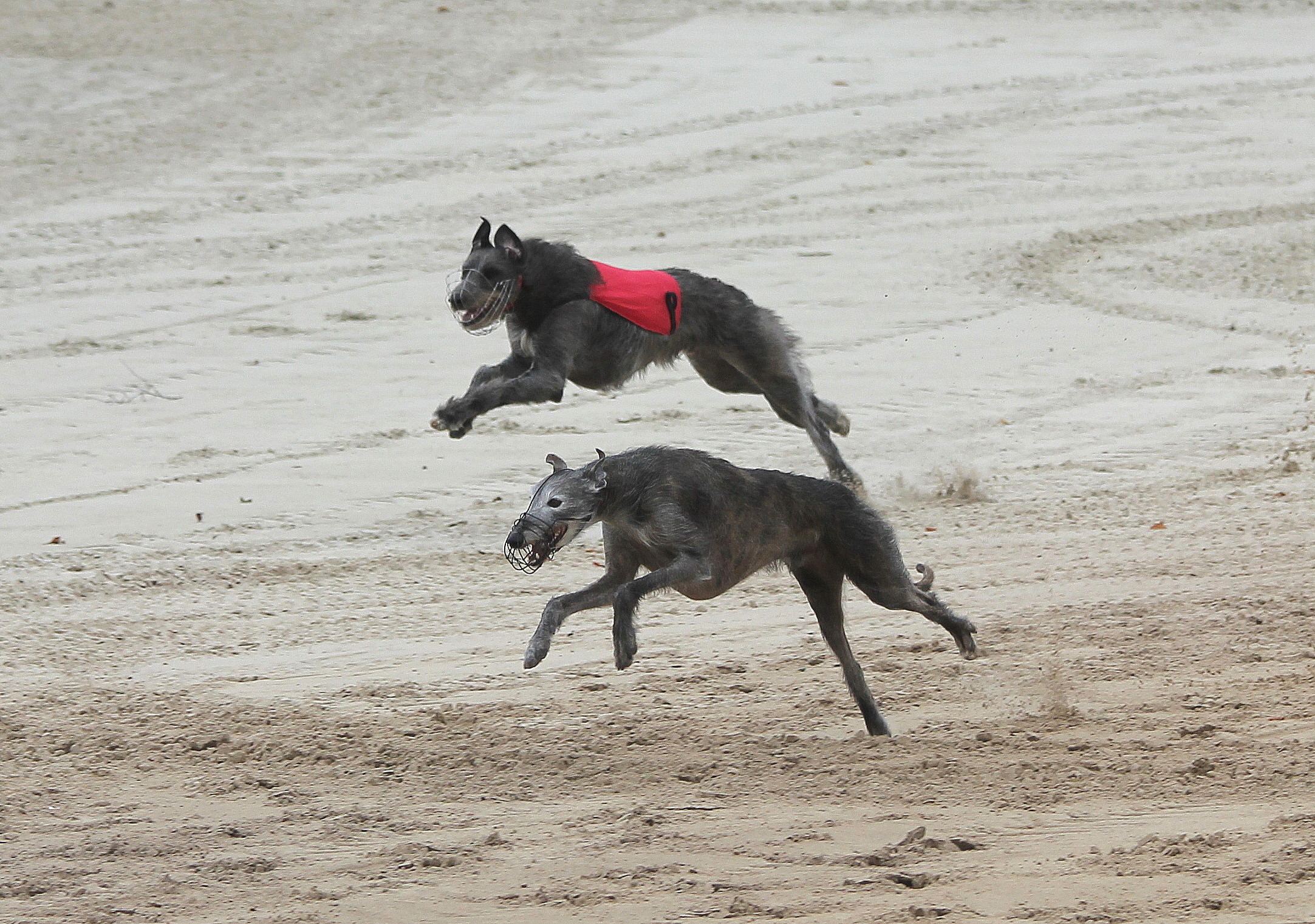 Brandir and Picaro are well-matched, on the long straights Picaro is of course faster than Brandir but Brandir does not beat a mud figure at any rate. By Kien courses they remain quite together and Brandir shows that he is running his own course. Even when the reception is fine, they both dive on the hare without anything of aggression or fear. Fantastic!