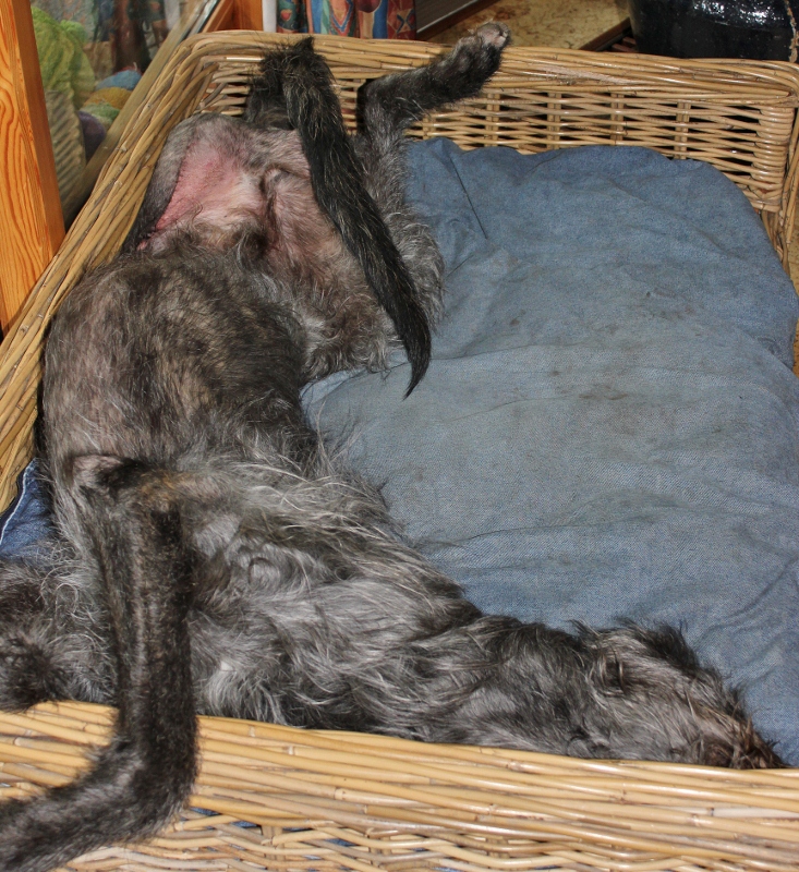 ges for 20 minutes. After this, it became a bit flushed with a physiological saline solution. Calhoun behaved all the time like a real Deerhound. No hassle or whining, while he still has very nasty experiences in the meantime. Afterwards he got a hand full of yummy biscuits which I expected he would not take. He is absolutely not corrupt and if he does not have the same meaning, he does not eat. But these were apparently irresistible for he took it. At home, Calhoun has to be kept separate from the other hounds for the first 5 days and we have to look very much with saliva, urine and feces. He now sleeps in "Cody's" room and is stretched out on his back on the Gelmatras. Brandir does not like this, who wants to cuddle him so much, but that is not allowed. With exhausts, therefore, it is also very careful that they do not smell each other and clean up stools. Once at home he had to get one and a half Cerenia tablet, this against nausea. A little half an hour later I finished his food and this went well with the drug Peroxicam, a painkiller and an inflammatory inhibitor. Happy. Calhoun has slept well, he is not sick, shows no side effects, his old temperature of 37.9 C has returned again and has eaten well today. It's going well with Calhoun, hopefully it stays that way.
