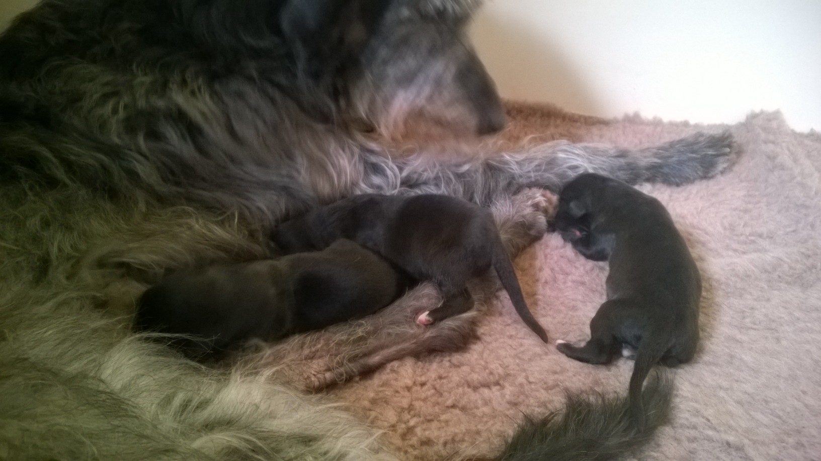 Bibelot of the Meirse Meadows as everything lucky around 24 March puppies are born with Marijn van Irishl, Deerhoundkennel "van de Meire Weiden". The mother is Bibelot of the Meirse Weiden-Dutch junior champion, Dutch champion and Profiter 2013.