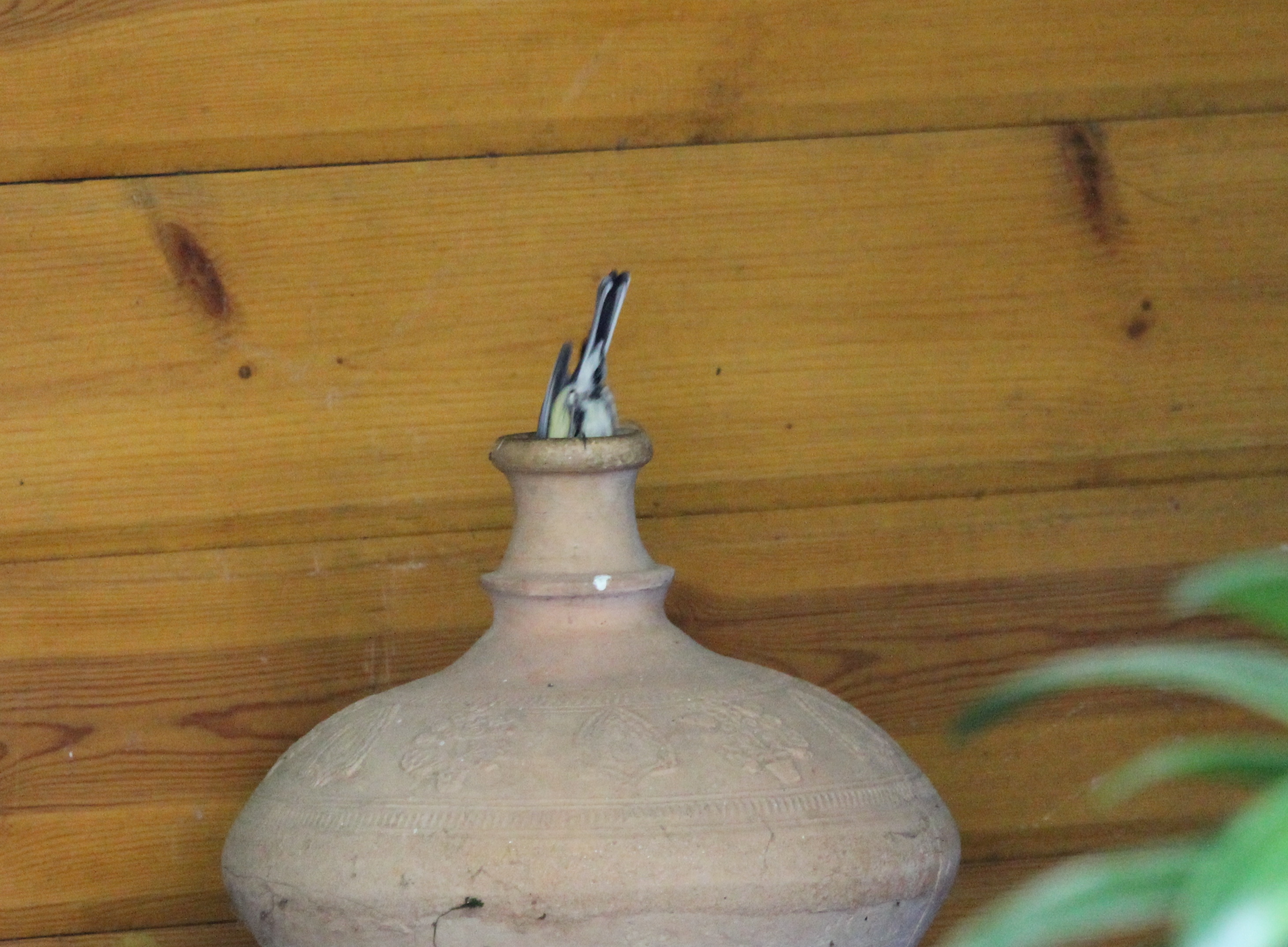 Flying into it is not that difficult, but we did wonder how the young birds had to come from that jar. How Ma and PA did I could capture but the boy had already flown out when we came back six days later from Tüttleben.
