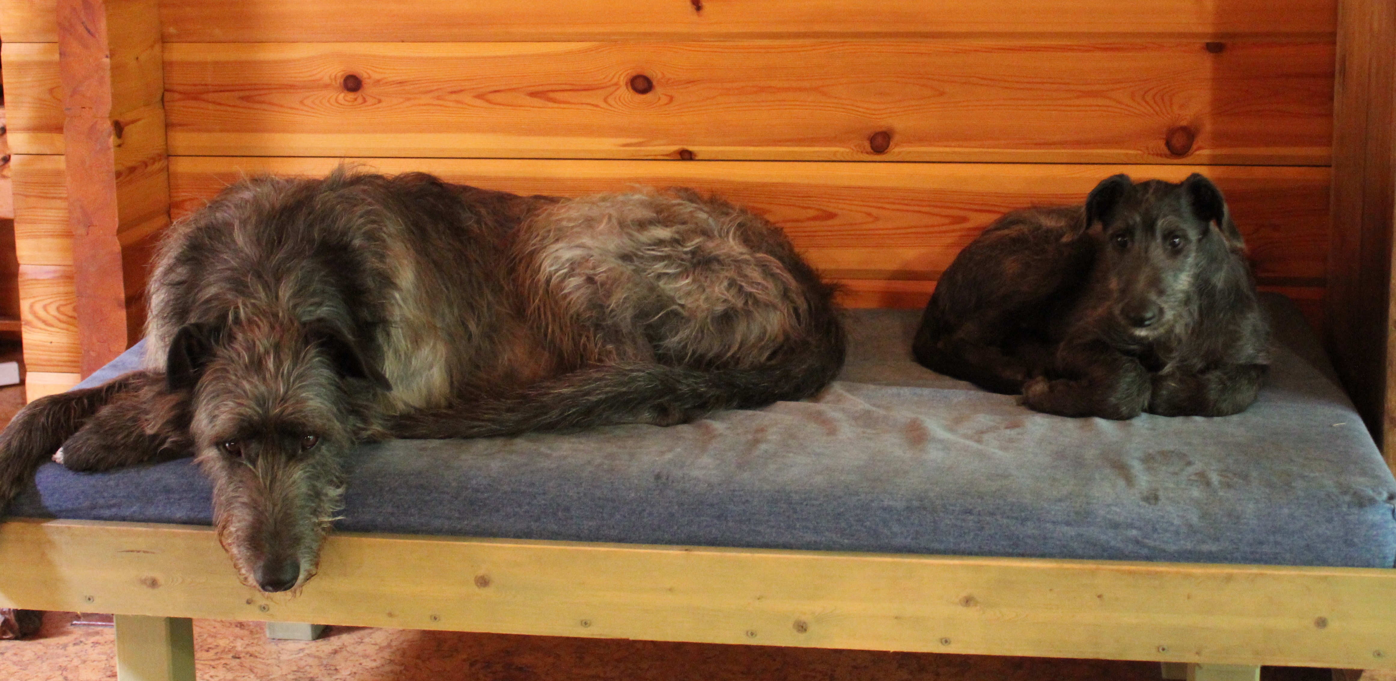 elped! But it was very strange, the last time Sonja was here they were still with his six, the Deerhounds, now in total only three. On 29 December, Sonja had to let the old Lavinia sleep. Lavinia couldn't find any rest and the last few nights was just walking around, which is not healthy for anyone. Lavinia has become 13 years, 2 months and 15 days old. We will also miss this lady very much, precisely because she was so unproblematic like Caintha. After long walks and what Coursingtraining Sonja is on Sunday 18 January again left. The first days after that it was still with Brandir but then he stopped eating again and walked squeaky through the house. What I had to do with him! On February 1, it happened that Simon had to go to Denmark for his work and so I could get a lift to Hermannsburg where Sonja lives. Sunday morning we crammed our stuff in the car, a nice mattress for brandir and riding. After four and a half hours we arrived in Hermannsburg. Brandir and Bernice were of course intensely happy that they saw each other again! That afternoon we have done some coursingtraining and they run well!!! They are both apparently losing all the pains