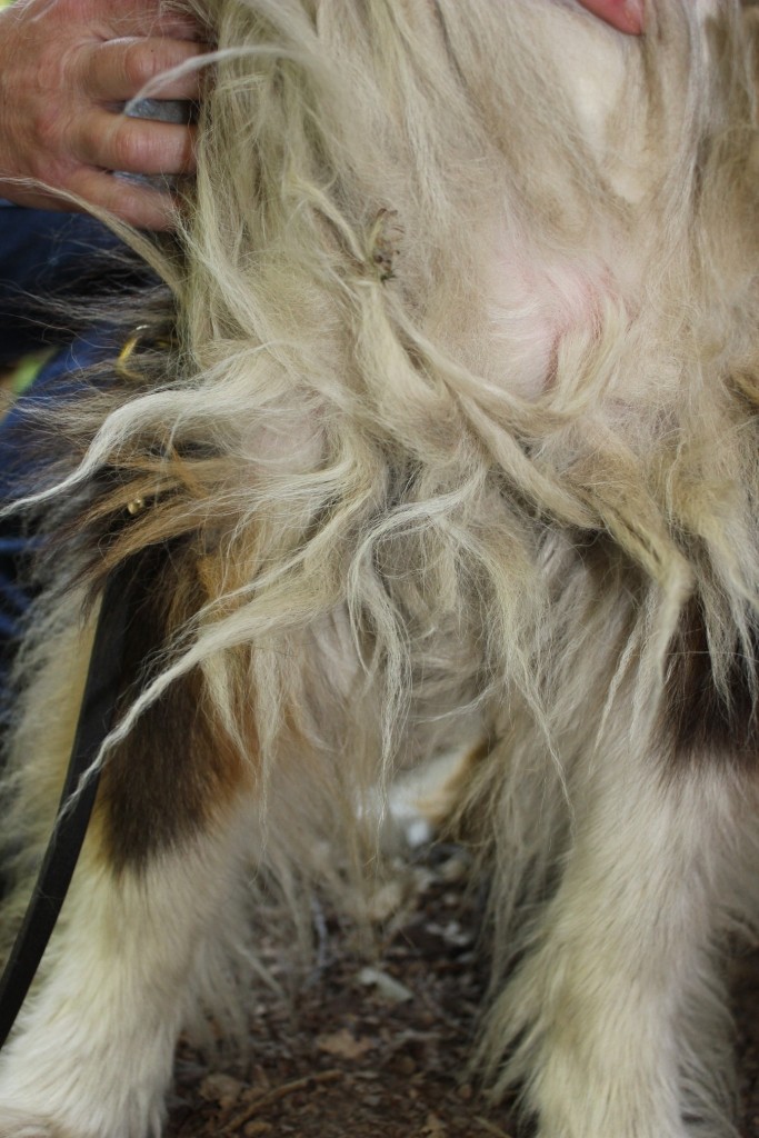 I went home to see the poor animal and I was terrified. This dog was not a bit in the burdock but was almost totally felt, including felt strands and huge t