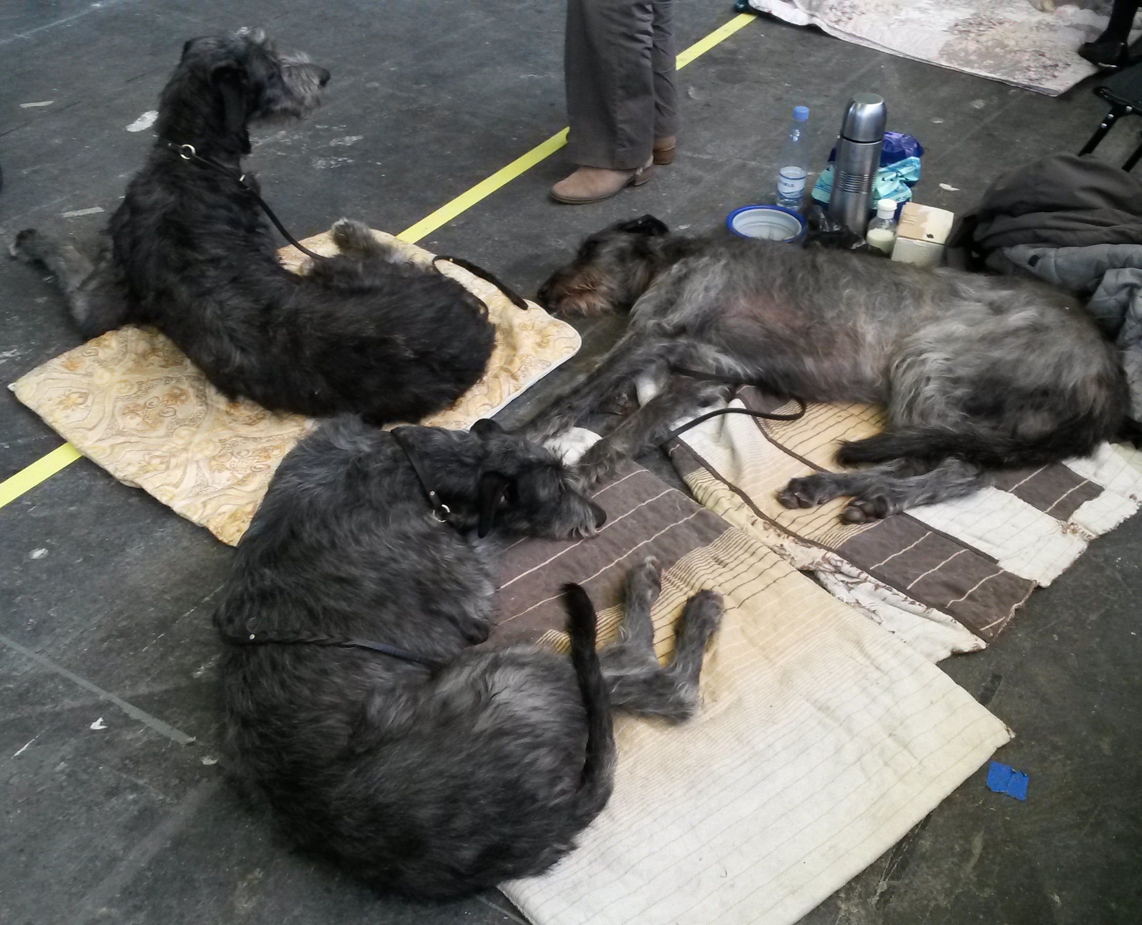 Again the last day of the year. What has happened again soon! Last year we sat around this time in France in the snow, fleeing the fireworks. Now you don’t have to, Brandir doesn’t like it but isn’t really upset. Chidish and Cytaugh have not responded to this until now and therefore do not seem to suffer from it. Hopefully that will stay that way! Still a big walk with the hounds in the PANNEHOEF, normally they can go loose some pieces but because of the nice weather it was so busy that they had to remain largely on the line. Bales but yes, they only run a round, at five thousand square meters you can also enjoy. For this year I had once again enrolled for the Winner. Fortunately Sonja offered to come and go along, I had them all three reported so good help I could use and Simon’s hobby is not it! So Sunday the thirteenth left we packed early in the morning and slumped towards Amsterdam. Chidish and Cytaugh behaved exemplary, truly Deerhound worthy.