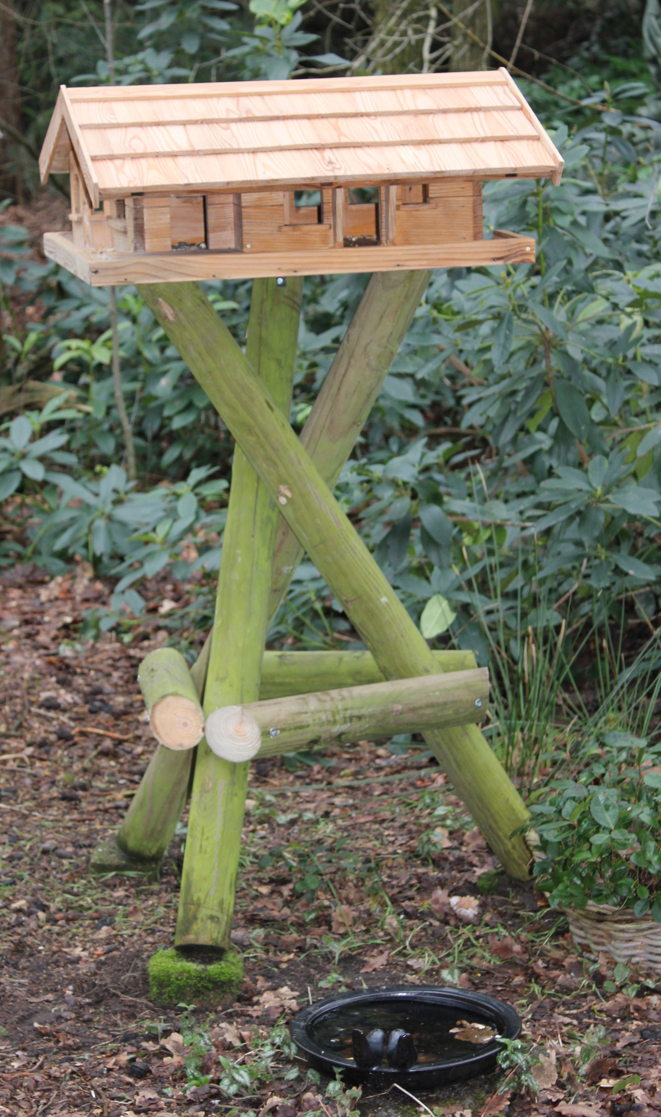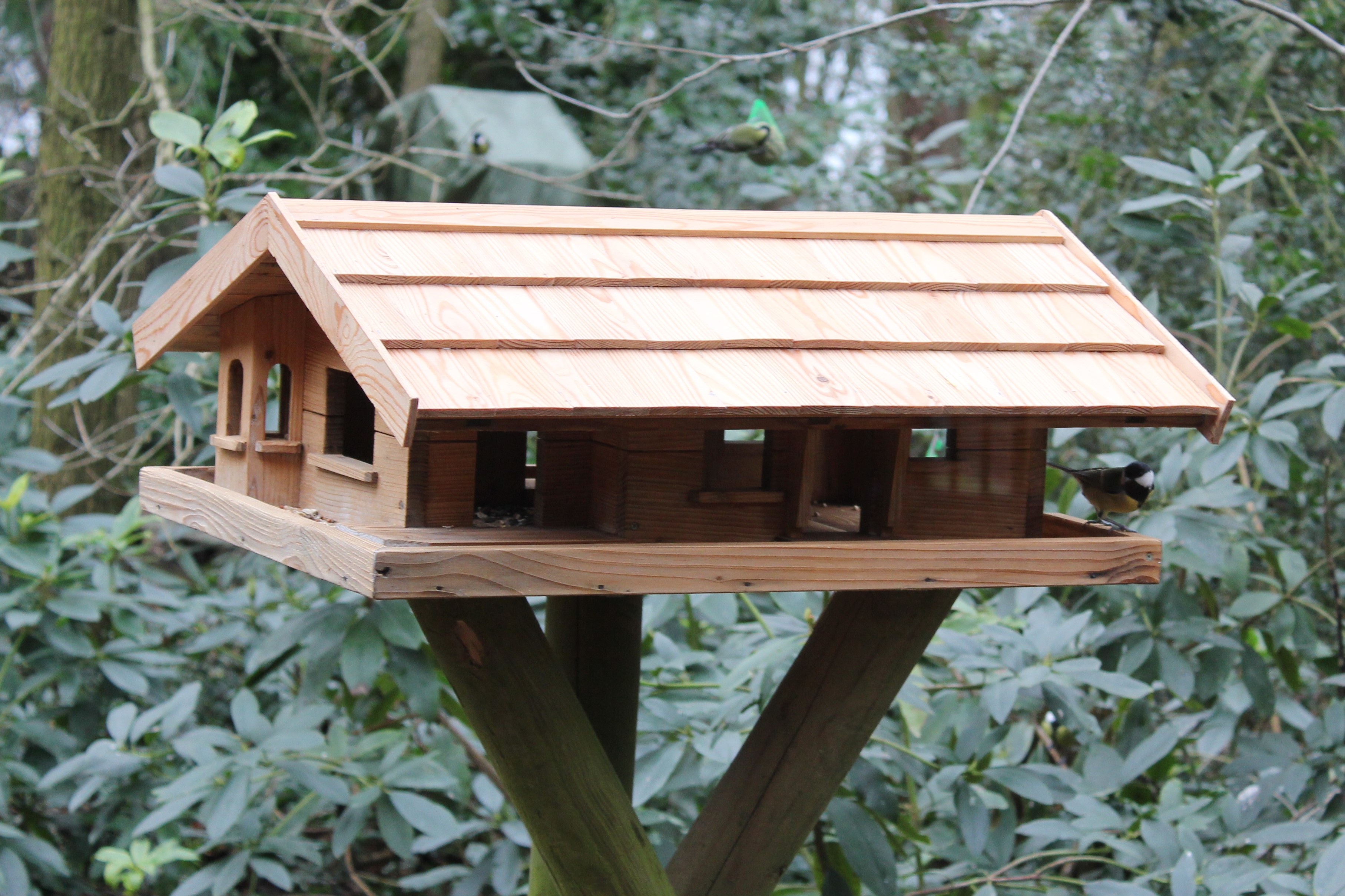The birds are very happy with it. The birdhouse is visited every day by a ton of titmice, robins, blue woodpeckers, doves, turtledoves, jays, and magpies. The great spotted woodpecker hasn’t dared to try it yet, while blackbirds and finches prefer to stay on the ground. Stout as they are, wood pigeons do not fit. I still have to put in a rope ladder for the squirrels because they can’t get up there now. But when it’s there, they will inspect it, curious as they are.