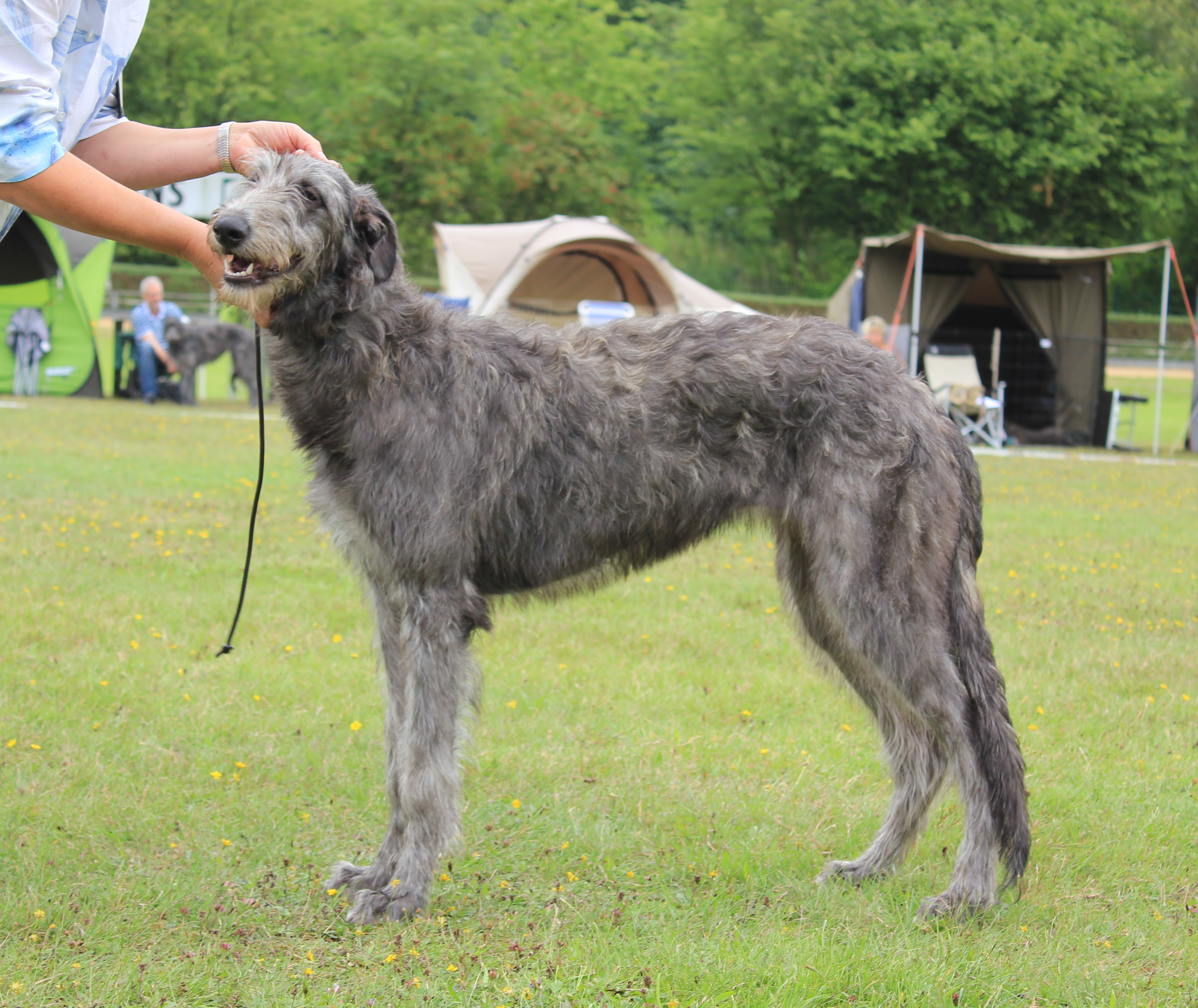 Sunday was the CAC show for all the greyhounds and Mr. Peter Friedrich approved the 15 Deerhounds. All Deerhounds got an excellent so that says enough again. Chidish was first in his class and became best male. Cytaugh also got 1h and is now also a German junior champion. BOB became the Finnish bitch Brokenwheel Mc Blodeuwedd.