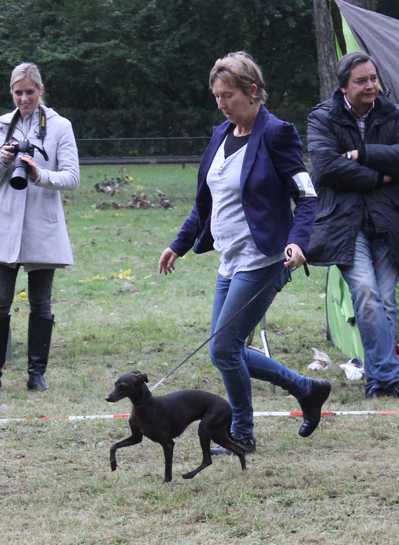 On Friday 14 October was the international show in Dortmund. Since Dagmar K.C.-Pordham approved, I had registered. There were 10 Deerhounds reported and one youth was absent. She found Chidish quite nice during the wide Show in April JL. Even now she liked him and made him BOB. Unfortunately, Cytaugh got 2h behind something that should never have been won. Vision first stood in the Jugendklas and won this convincingly and also became Jugend BOB.