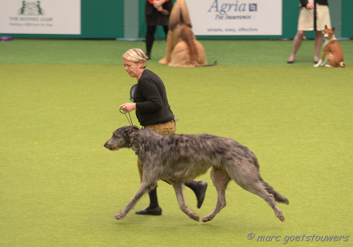 Tuesday afternoon 7 March, Sonja was back with us to leave for Birmingham on Wednesday morning. Simon had found a good accommodation at a half hour drive from Birmingham where we had a great time; A large park nearby, a pub and a eatery, what else do you need? We had Vision, Chidish and Cytaugh reported for Crufts and of course hoped for a nice competition. But unfortunately that was not the same; Of the three reported Deerhounds in Yearling Dog There were only two, even with the bitches there were absents in the classes of Cytaugh and Vision. Of the total of 81 reported Deerhounds, only 70 were present. Also the atmosphere was not nearly as cosy as 5 years ago. There were quite few people around the ring and we missed many familiar faces.