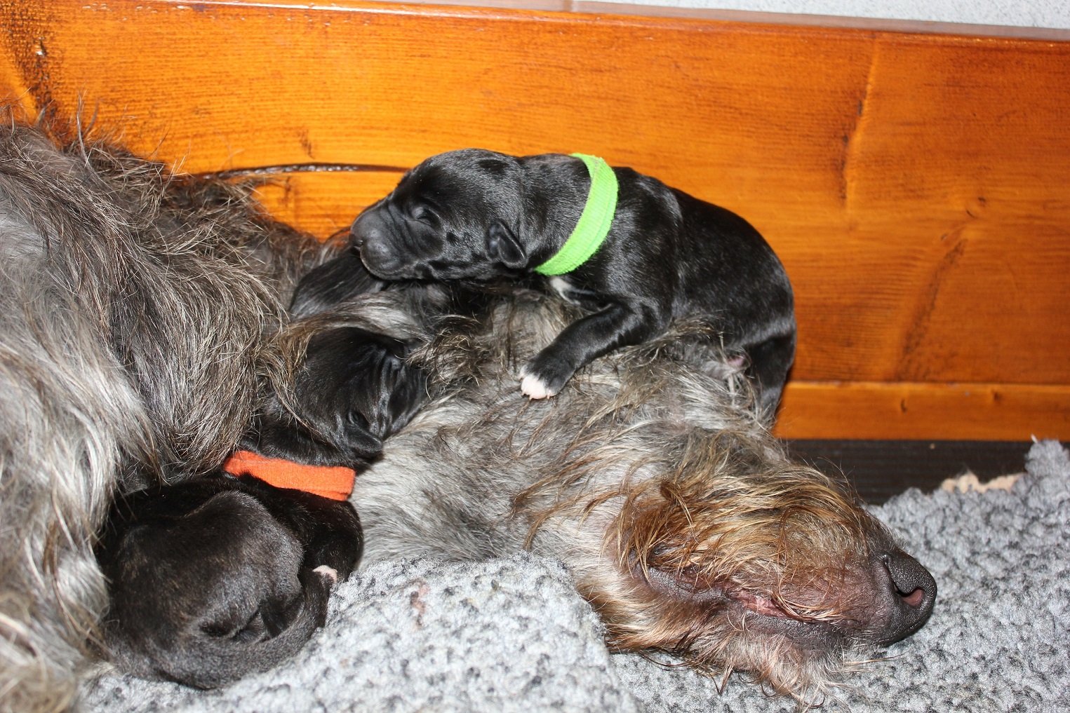 On Saturday 21 January There are four females and two males born. The heaviest puppy was 580 grams and the lightest 470, four out of six were above 500 grams, a very tough weight!