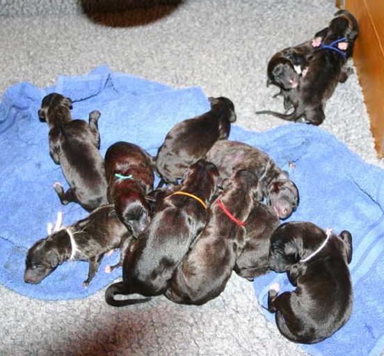 But to be honest, I was also looking forward to see three out of six going to their new owners around February 9 (Holly would not leave for Germany until the beginning of March) but it was not to be. After the puppies had their last vaccination on February 9, they all got sick in the evening. At first I thought it was a reaction to the vaccination but because they all were not feeling well and later also vomited