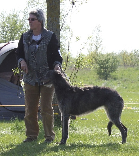 Anyway, I was very satisfied with my numbers and loved to get so many Deerhounds in my hands again. The quality was very different but I had a couple of very nice hounds including a young male of 23 months who made it very difficult by either not wanting to trot or to go at a pace but…..when he trotted, he showed the best movement whatever you could imagine, dancing beautifully with a long, flowing stride, low to the ground and at a good pace. The best gait of the day. Furthermore, he was a male who was really ‘Fit for function’ and could really do his job. Also a male and female, brother and sister, 20 months young, stood out in type, movement, beautiful small ears and very dark eyes. Yes, and then those adorable hounds; who really want to cuddle with you intensely or that old bitch of 11.5 years who was still so fit and trotted active through the ring, they touch you in the depths of your soul and it always brings tears to my eyes.