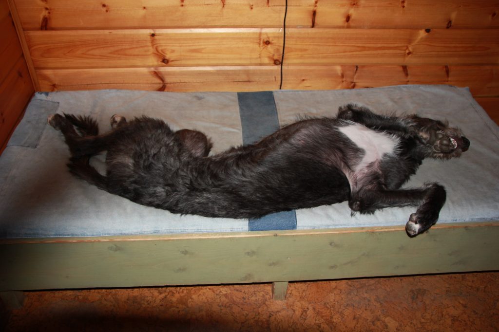 The past few days it went downhill very fast. You could see in Cearrean’s eyes that he had constantly terrible headaches and he was no longer enjoying life. He growled all day and night at everything that came close, didn’t want to play with Cranston anymore, often lay out on a bed until late at night and ate badly the last few days. He regularly act ugly to one of the other hounds and he didn’t like the puppies anymore. In the house we had to keep him separate from the puppies to avoid annoyance, but the days before it went well outside and he still liked them.