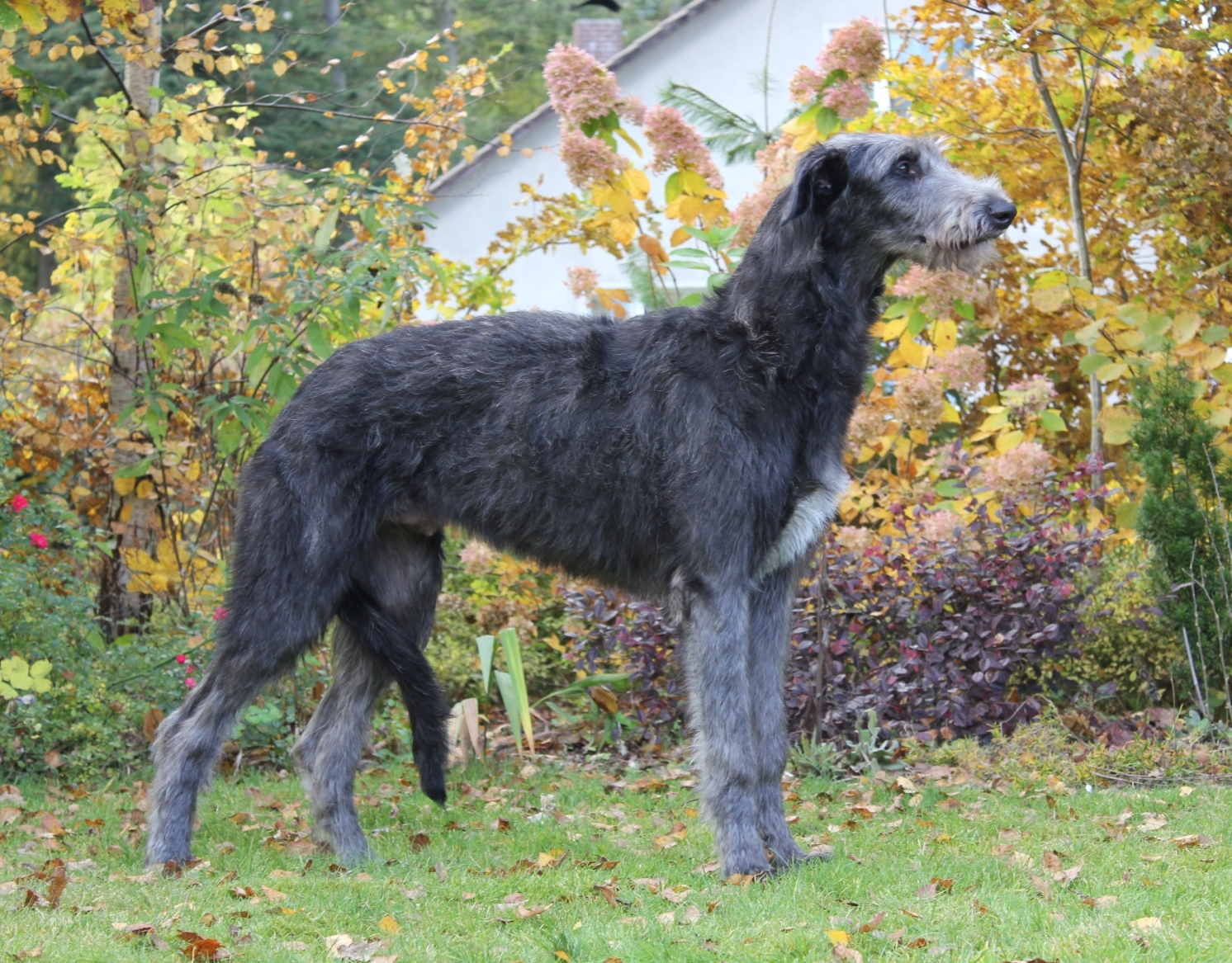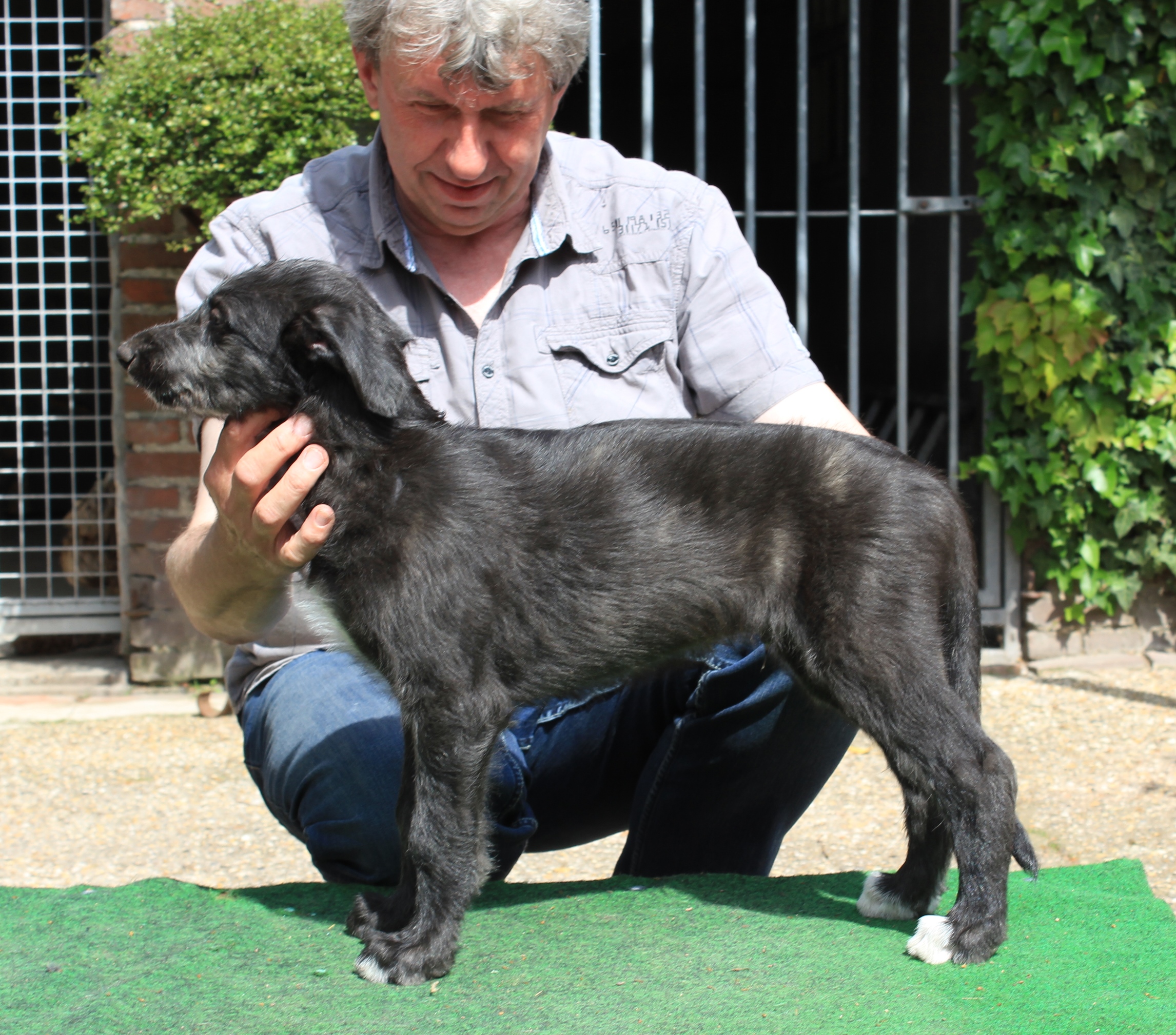 During the Jahresausstellung in Trautskirchen (D, 2015), Chidish got a first place with Very Promising in the Baby Class (2) under Brian Doak. In Bad Homburg (D) he also got a first place with Very Promising. At the Young Dogs & Veterans Day of the Dutch Sighthound Club he became first in his class (1). At the CACIB show in Hannover, Chidish received a Very Promising and Jüngsten-BOB. His last performance in the Puppy class was during the Winner in Amsterdam where he became best Deerhound puppy.