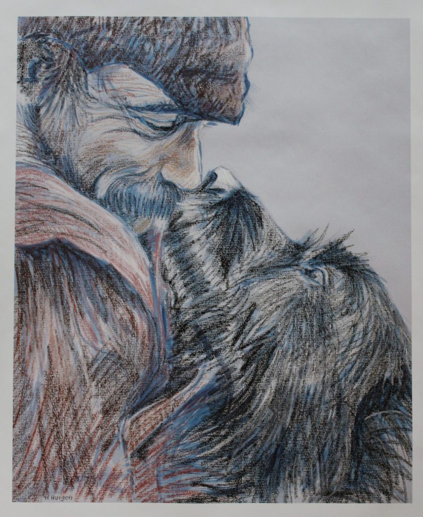 The following print with the name “Dear Relationship” was created by Nini Hammond. It is a copy of gouache with chalk and the size is 37 at 45 centimeters.