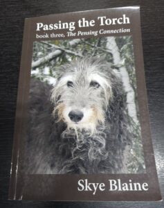 In January 2022, I read a call from a writer, Skye Blaine, in the American Deerhound List for a photo of an old Deerhound for the cover of her new book “Passing the Torch”. Brandir was 10 years old at the time, but because he didn’t have any white on his muzzle yet, he wasn’t suitable.