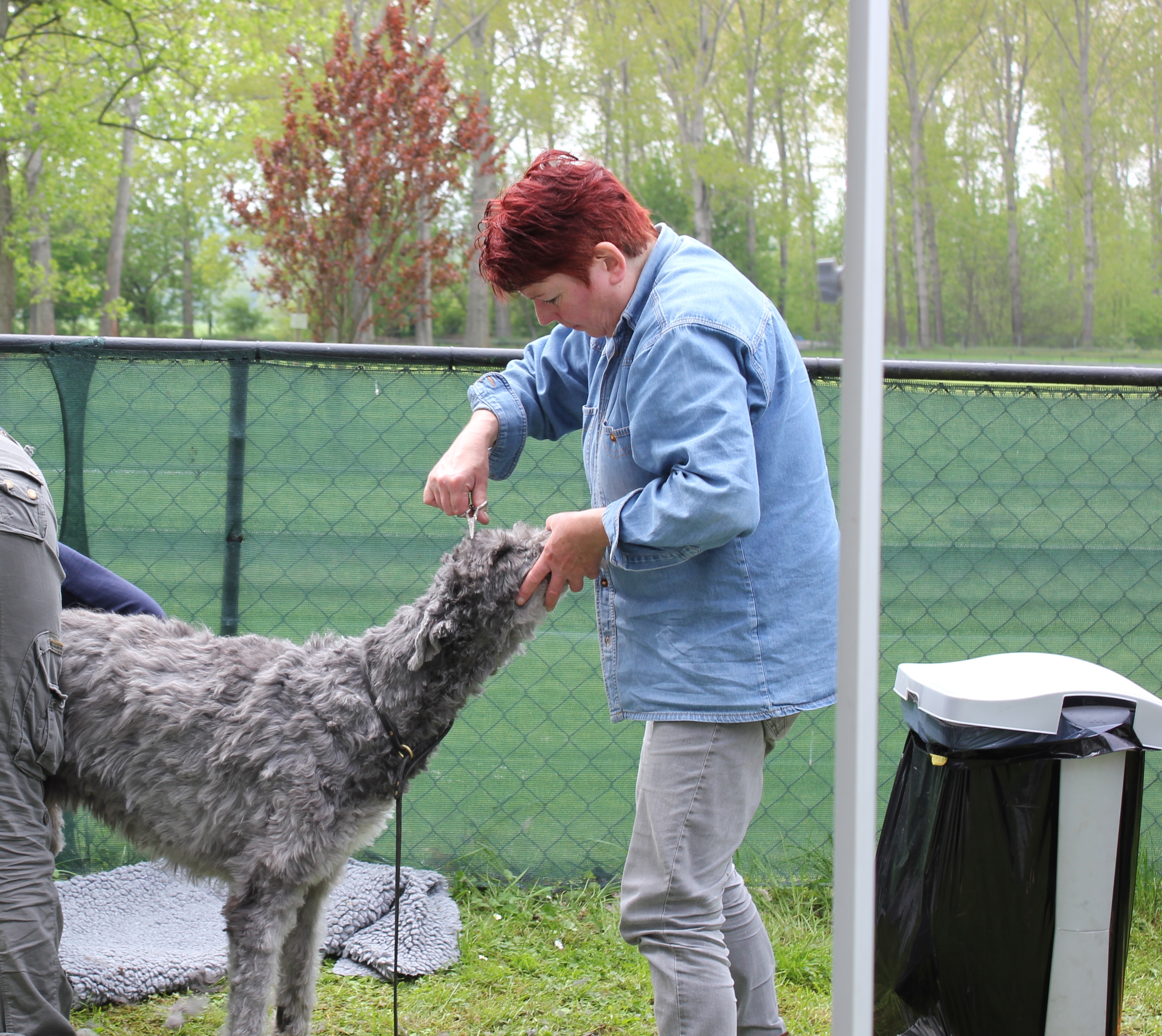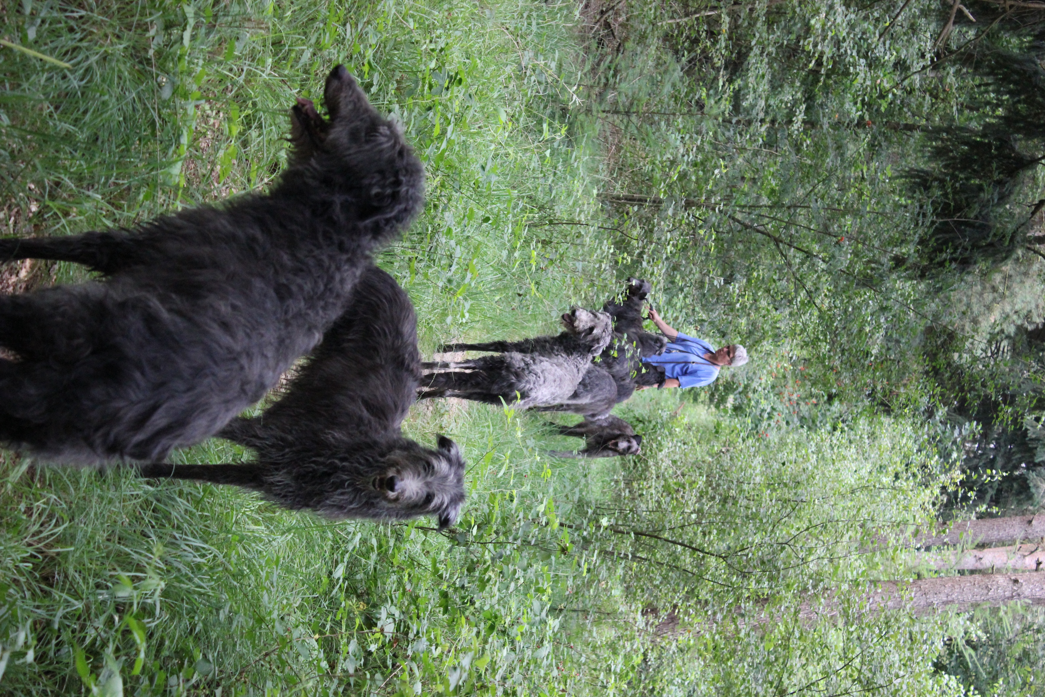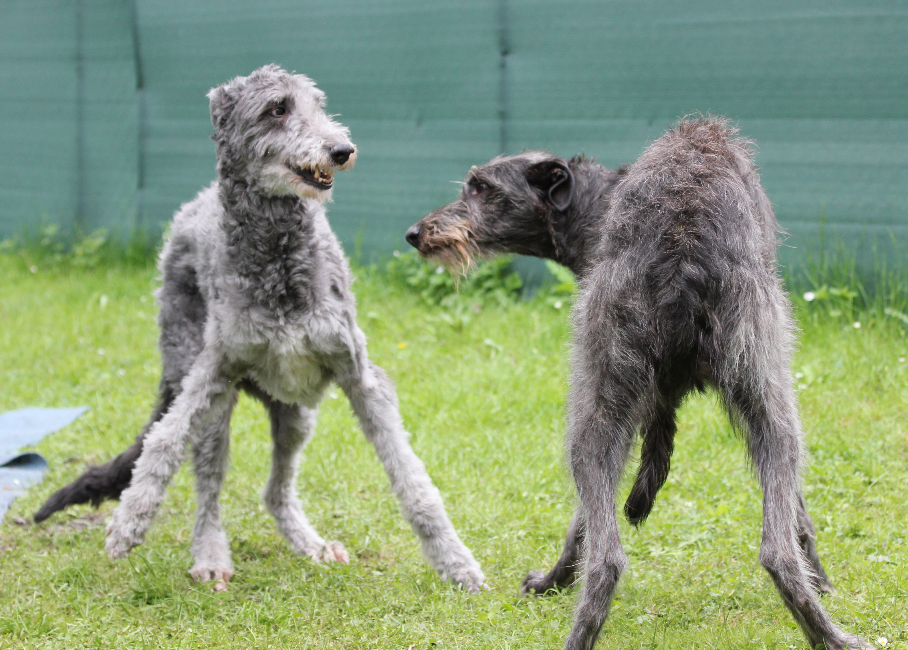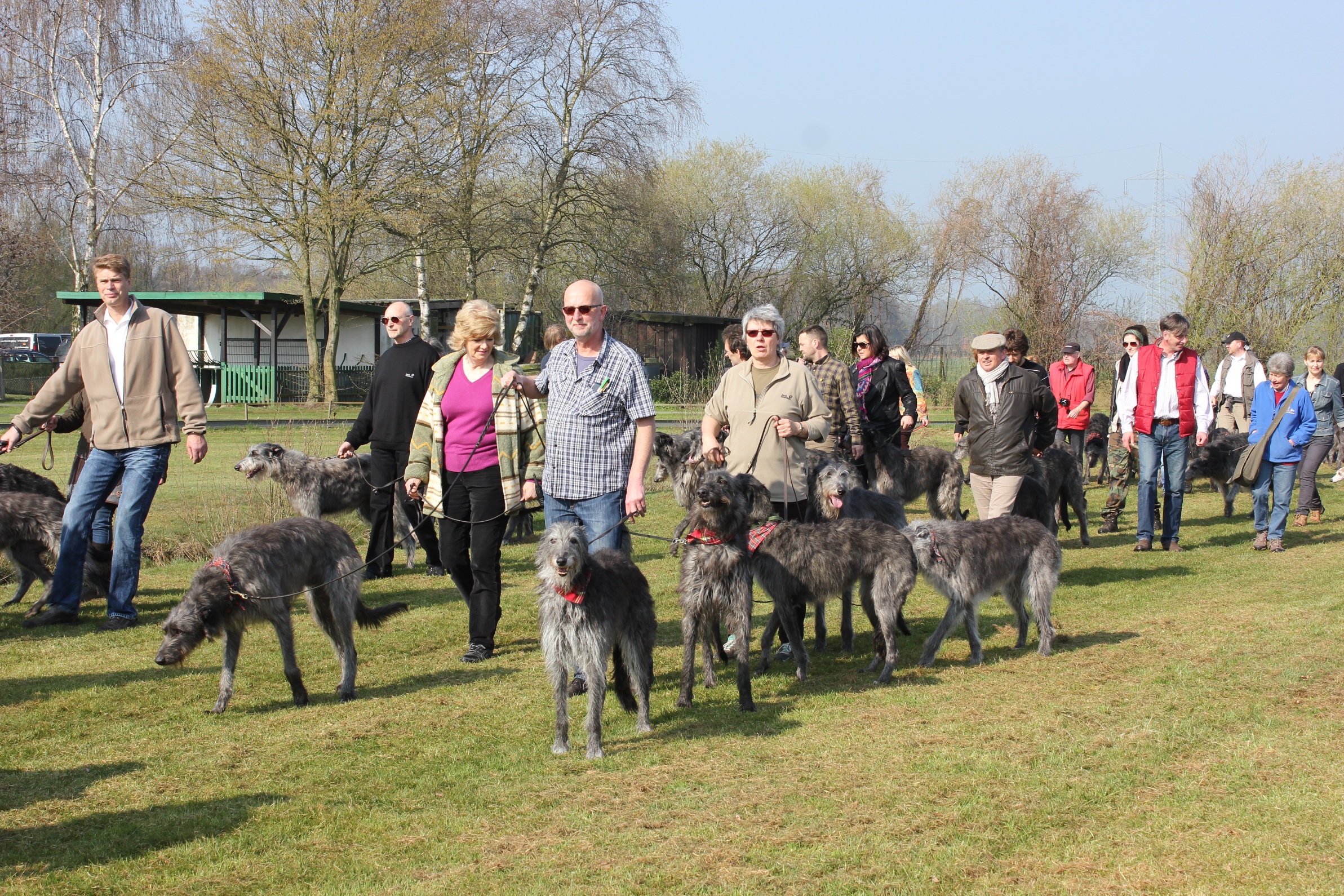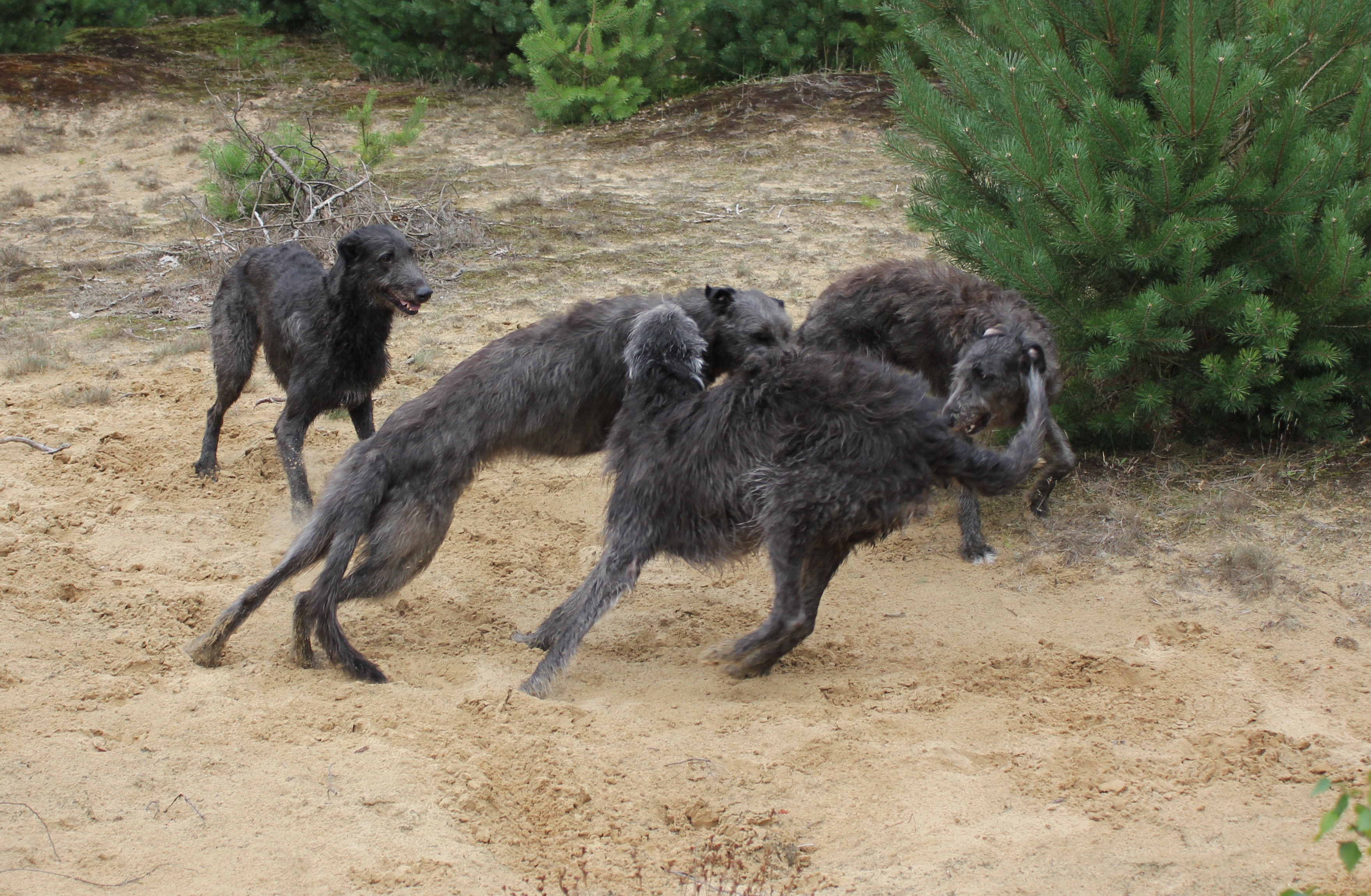 ed back, which had walked enough for the rest of the day! And Simon had enough stress for the rest of the weekend, which left Calhoun (fortunately) no more loose! The weather was extraordinary, almost 30 degrees but with a little wind so it was still well toefen. Only for a big walk it was soon too hot for our elderly club; 3 of 10 years and 1 of 11.5. On Saturday so the show, Sonja showed Brandir, Bernice and Silva. There were 9 Deerhounds reported, 8 present. Brandir and Bernice got their first YOUTHCAC and Brandir became JeugdBOB. BOB and BIS became the Kilbourne Harvest Moon, the brother of the father of Brandir and Bernice, living in Finland. Sunday, the coursing for which two Finnish Deerhounds were reported. One of them was blixen the Great Scott, this male had walked with Calhoun in the Czech Republic during the EKC in 2009. It was clear to see that he was a day old! Monday morning we all left again. We first went to Tüttleben to put our caravan there before the Pentecost weekend. From here we drove home on Tuesday.