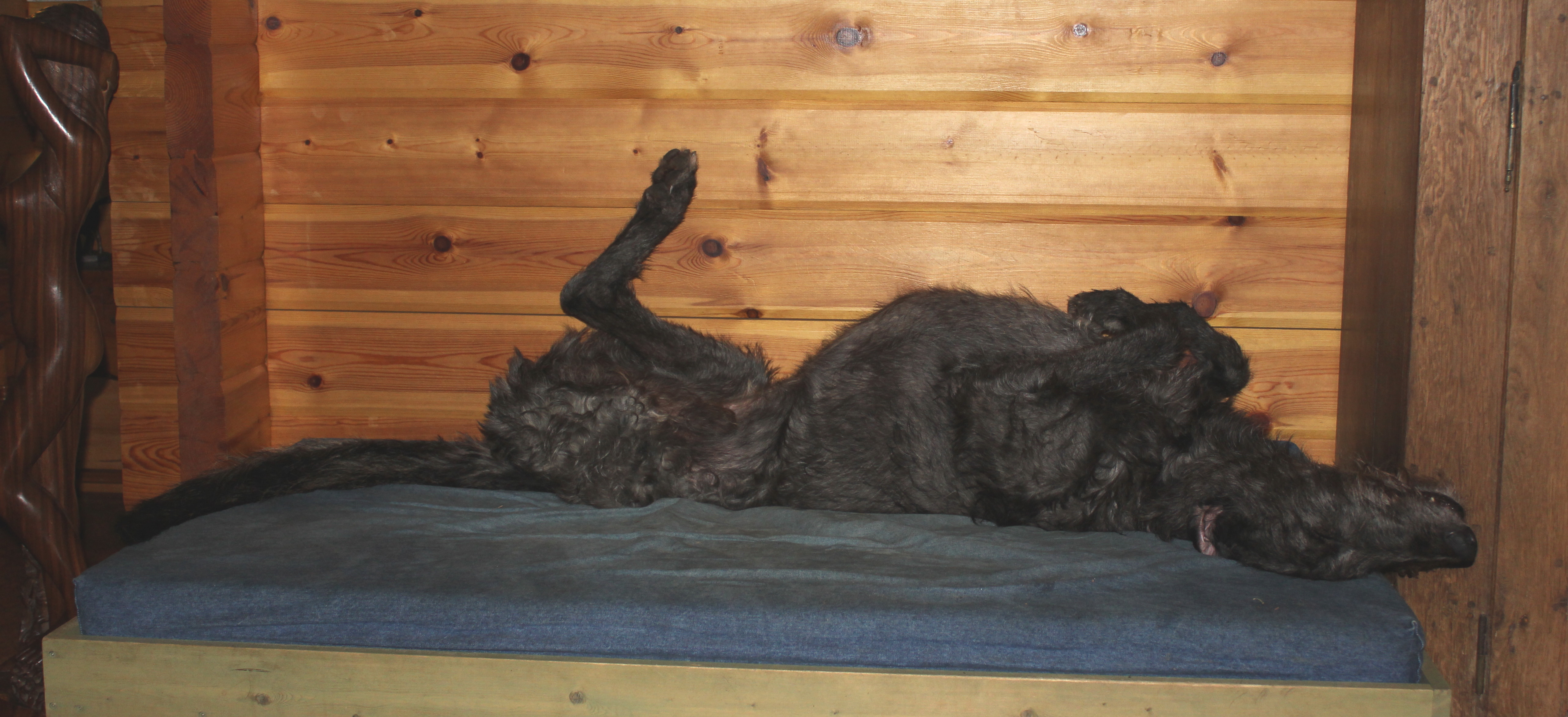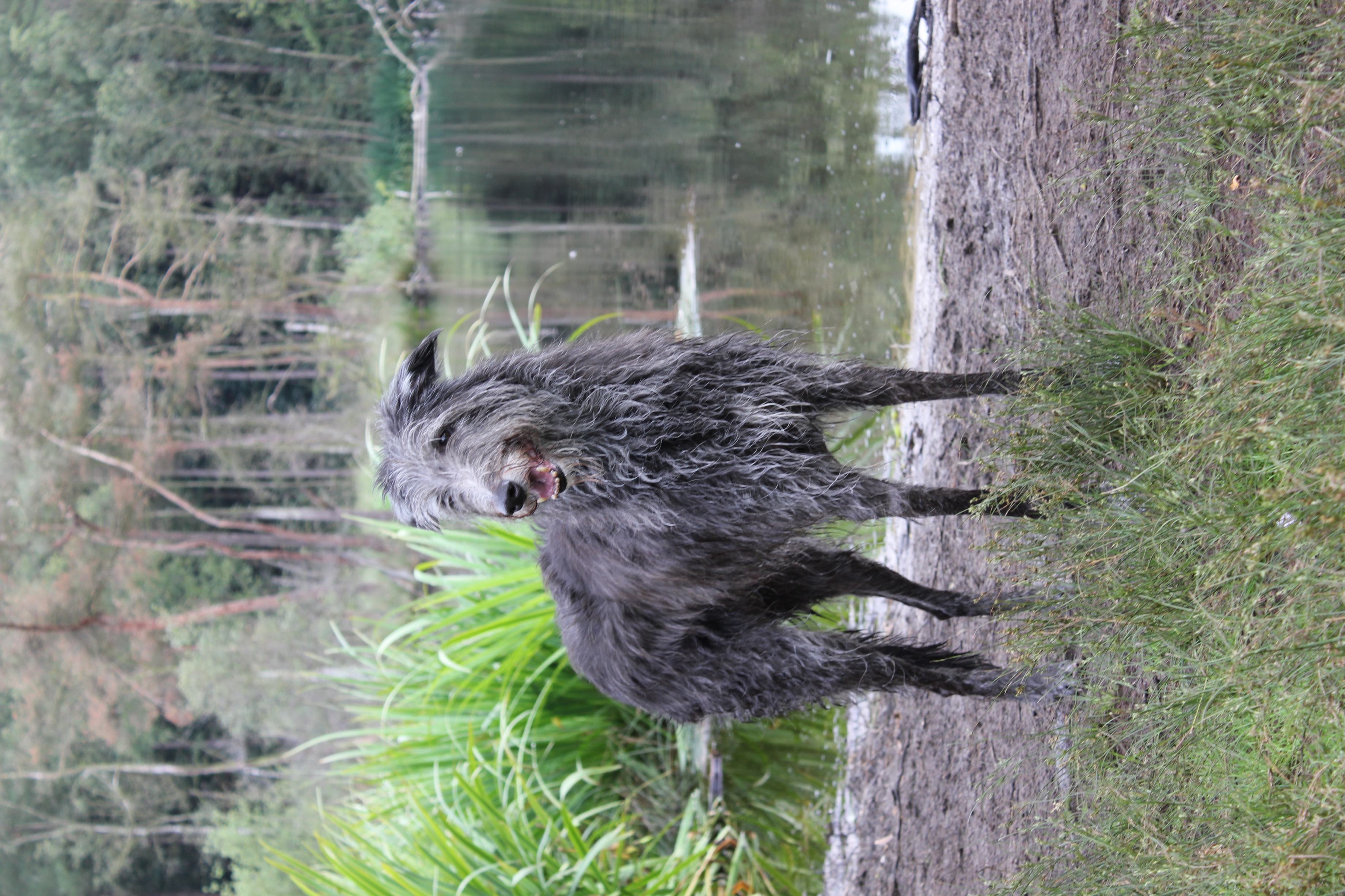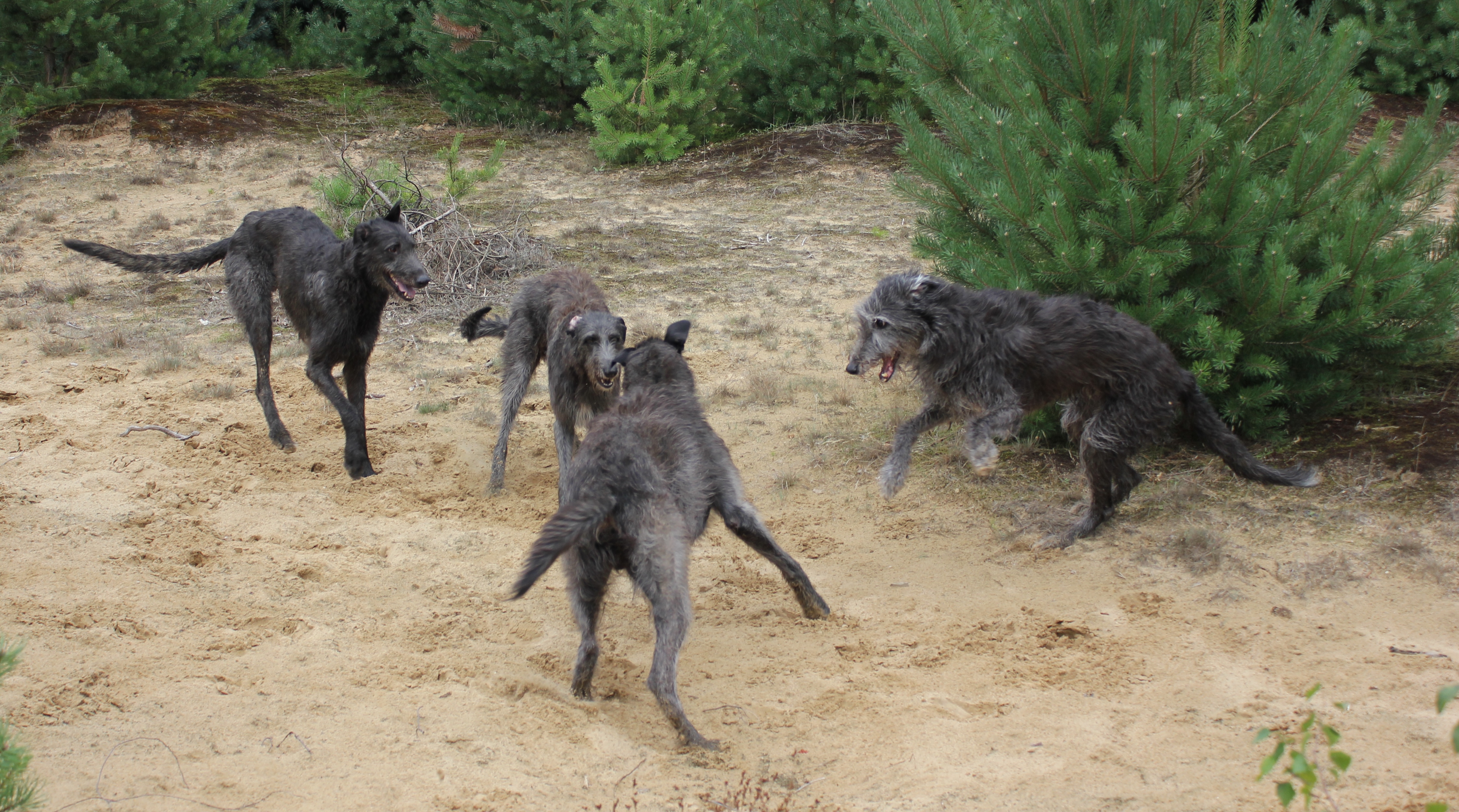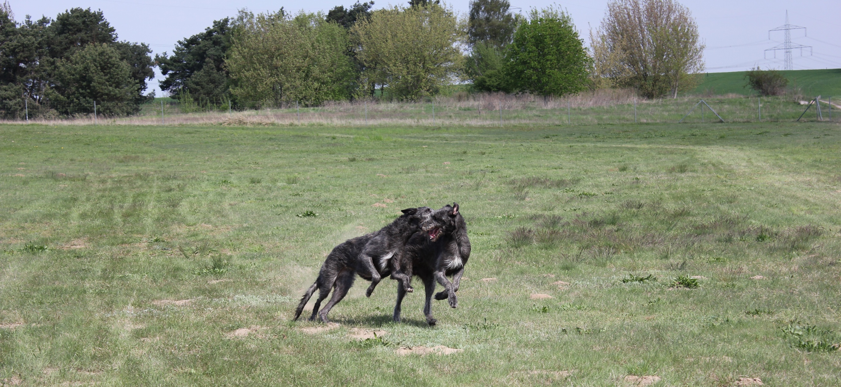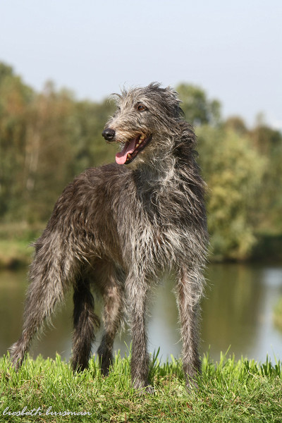 ed back, which had walked enough for the rest of the day! And Simon had enough stress for the rest of the weekend, which left Calhoun (fortunately) no more loose! The weather was extraordinary, almost 30 degrees but with a little wind so it was still well toefen. Only for a big walk it was soon too hot for our elderly club; 3 of 10 years and 1 of 11.5. On Saturday so the show, Sonja showed Brandir, Bernice and Silva. There were 9 Deerhounds reported, 8 present. Brandir and Bernice got their first YOUTHCAC and Brandir became JeugdBOB. BOB and BIS became the Kilbourne Harvest Moon, the brother of the father of Brandir and Bernice, living in Finland. Sunday, the coursing for which two Finnish Deerhounds were reported. One of them was blixen the Great Scott, this male had walked with Calhoun in the Czech Republic during the EKC in 2009. It was clear to see that he was a day old! Monday morning we all left again. We first went to Tüttleben to put our caravan there before the Pentecost weekend. From here we drove home on Tuesday.