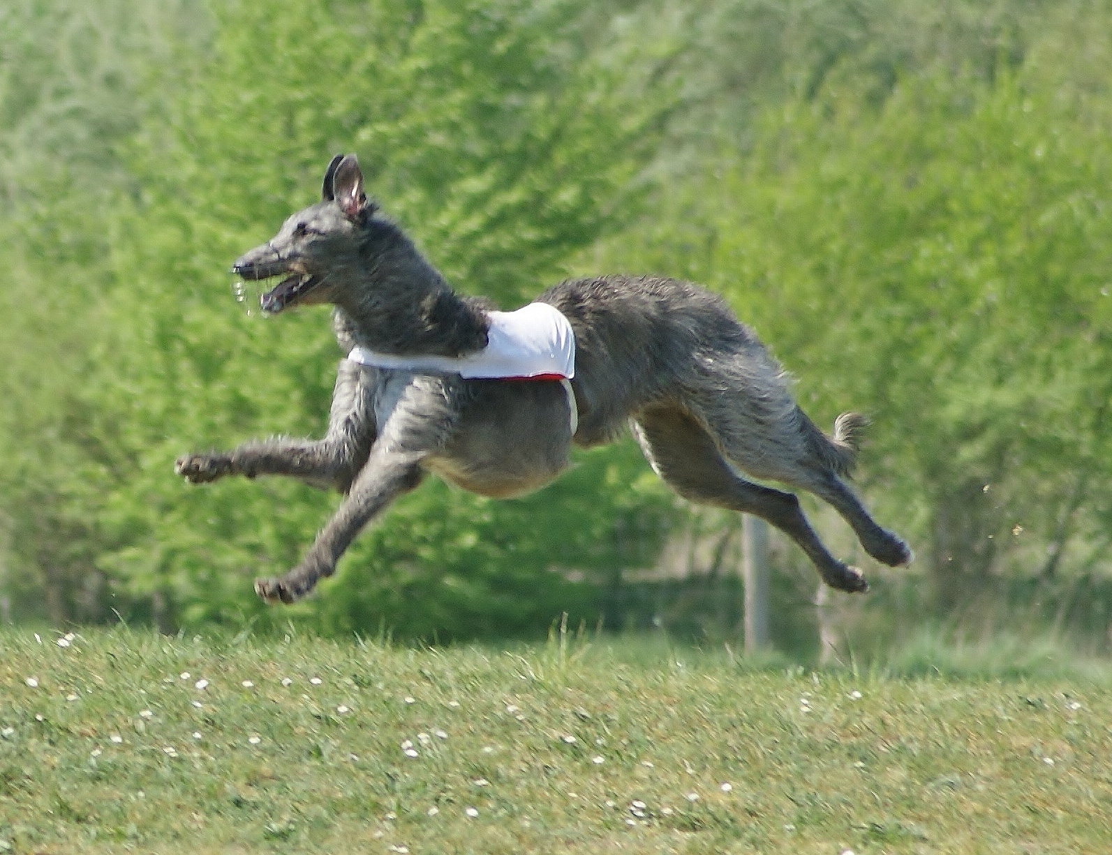 /caption] She has participated in a total of 77 games in many countries and in addition very many "fun" coursings. She has participated in 5 European Championships and has twice been in second place and 1 time on the fifth. She carries various beauty and coursing titles and is after Calhoun (her nephew) the second Deerhound in the Netherlands entitled to the title "Champion of Beauty and performance". And she deserved it!