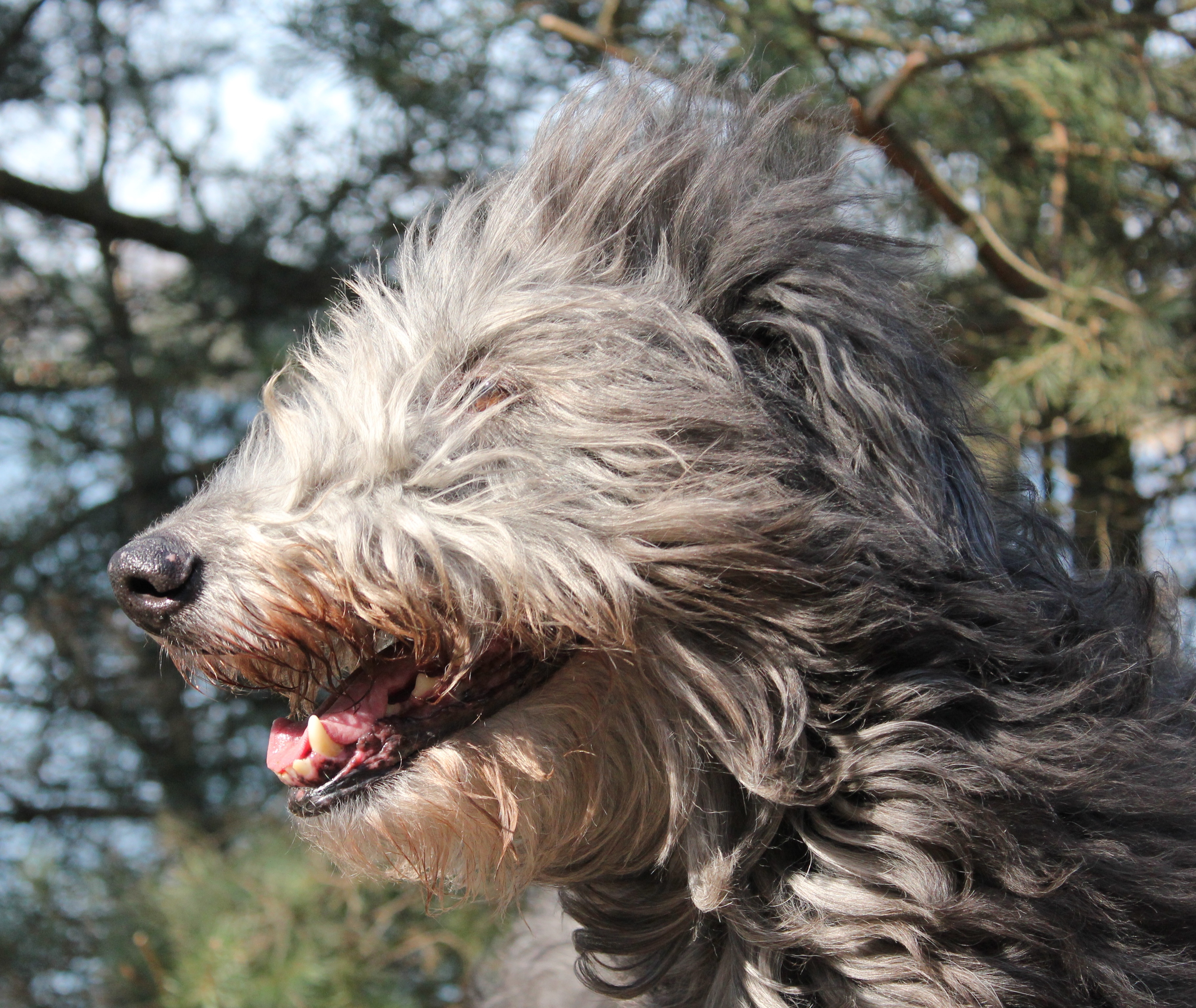Cody is a real woolly but that makes him quite attractive. Most people still think he's a puppy, especially if he's gonna play with a stick or make crazy bokkesprong! There he is very good at it!