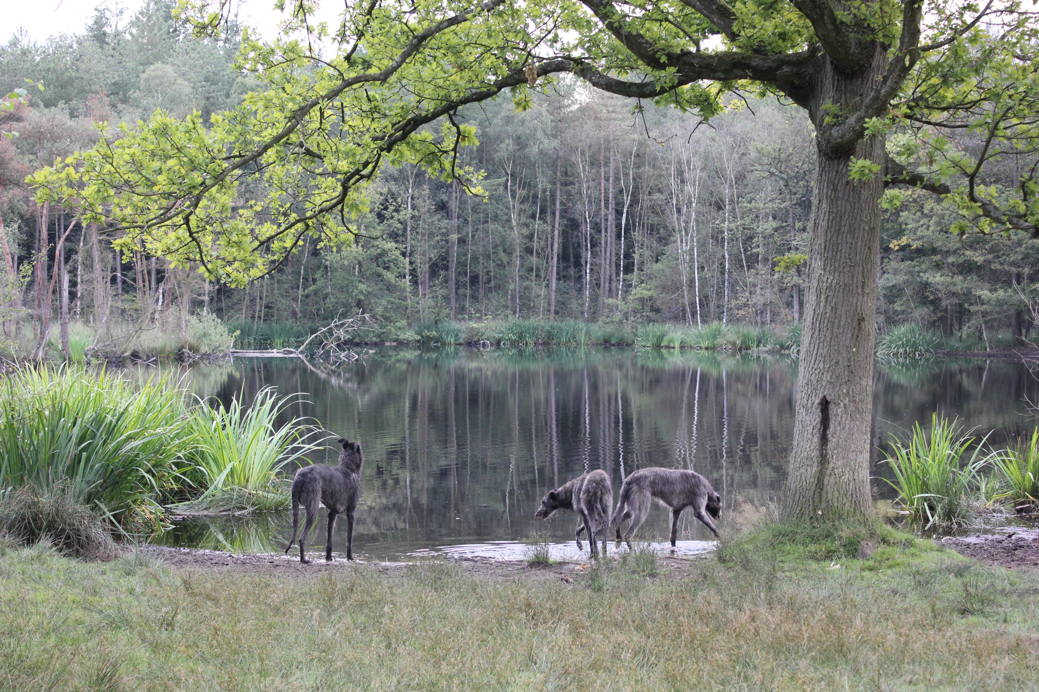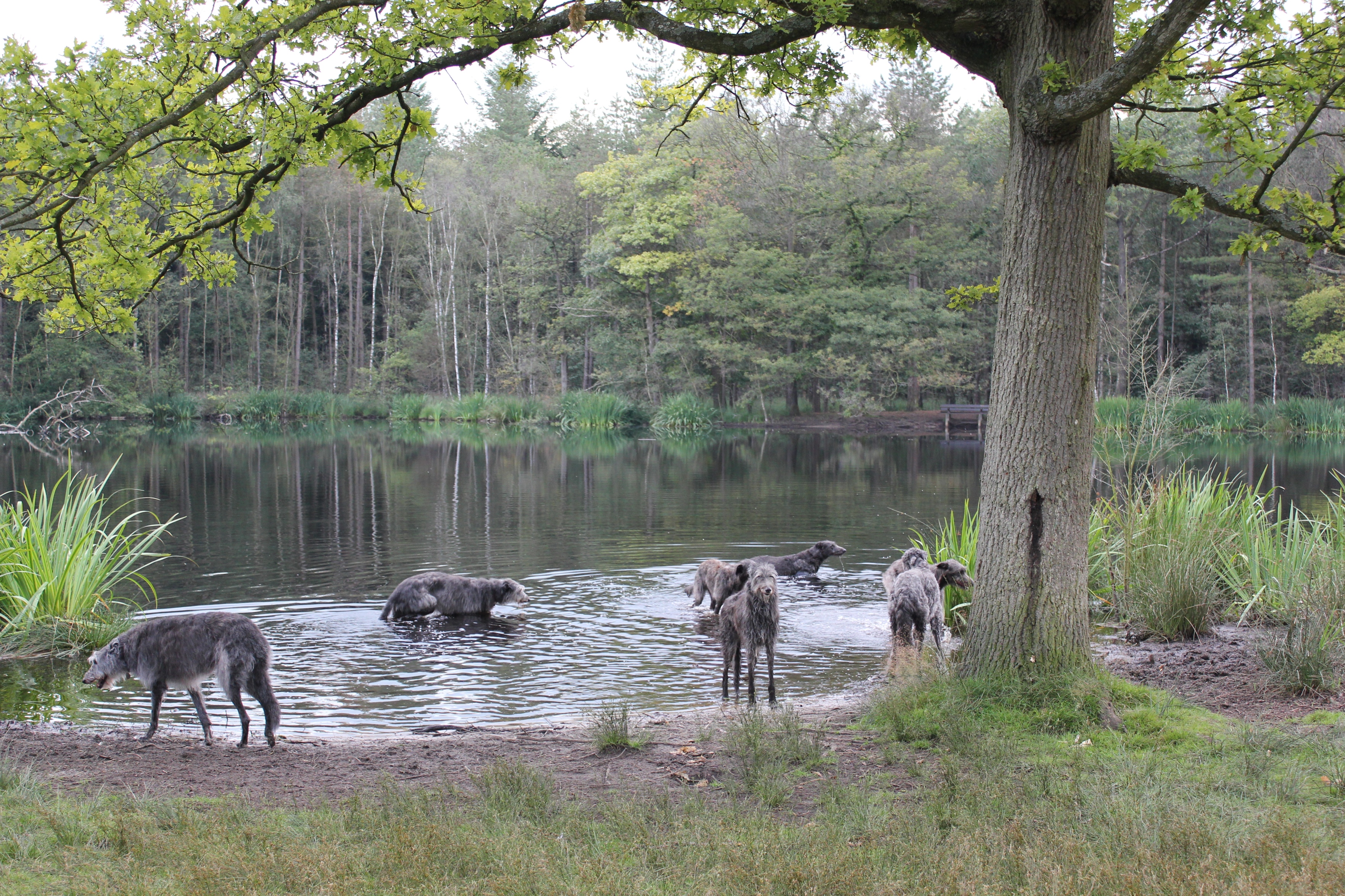 The walks we made were tuned to the elderly club. With one of almost 12 and three out of 10 years, you don't have to walk for hours, also a small hour for Calhoun is also enough. He makes sure he gets enough movement. So also Wednesday afternoon. Barely arrived in the woods he had disappeared, Bernice and Brandir in his wake. After a few minutes, Brandir and Bernice were back, Calhoun took a little longer. Moments later they shot again, but then it took much longer before Calhoun was back again. He had already done enough, but fortunately there was a nice lake in the area where you can have a good stay.