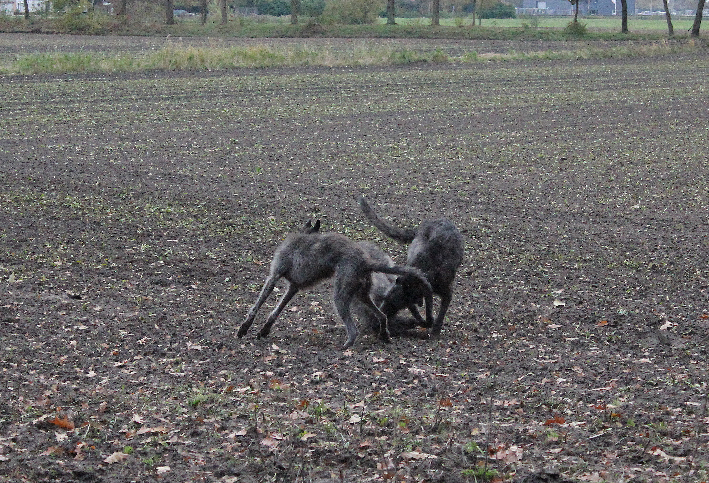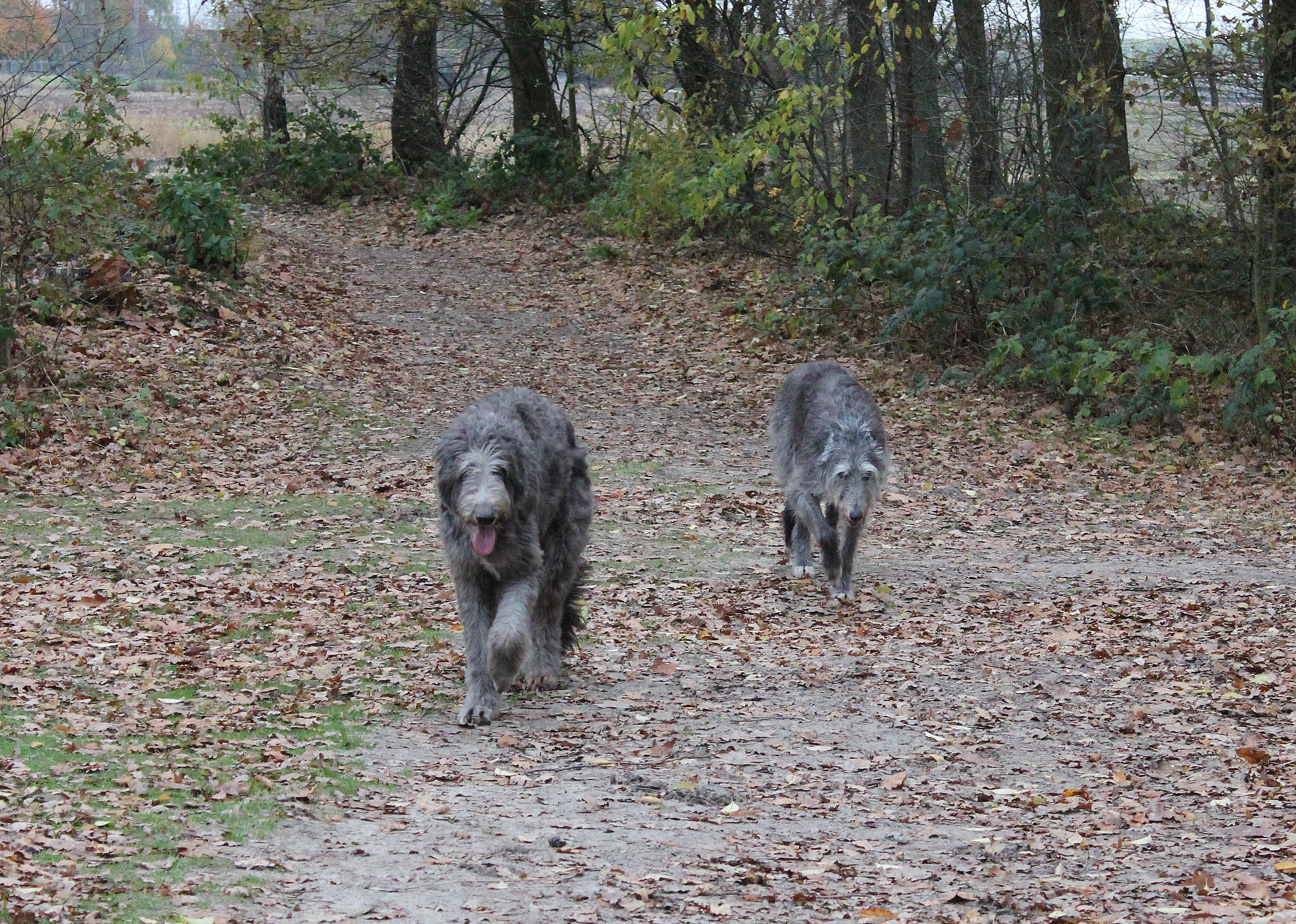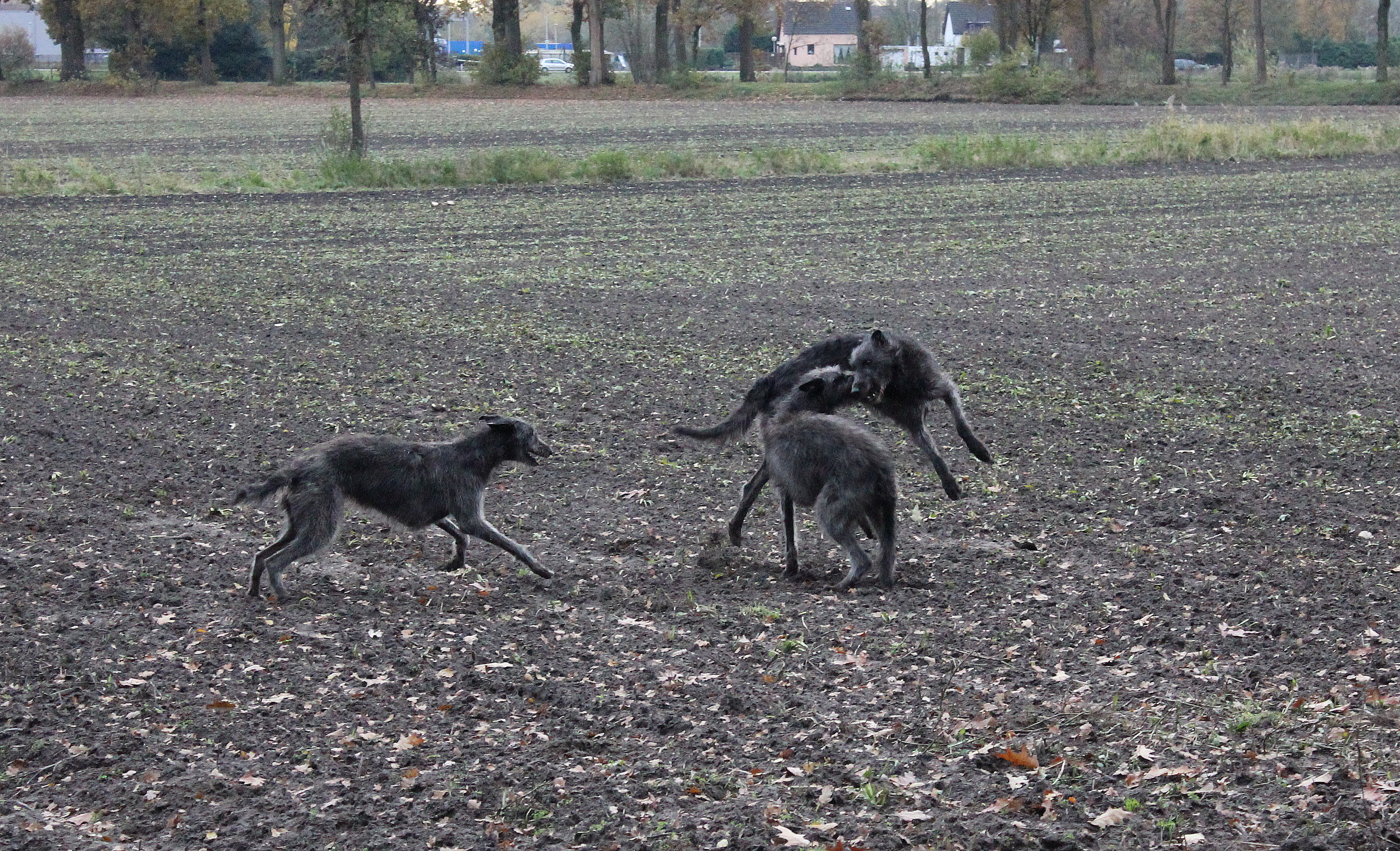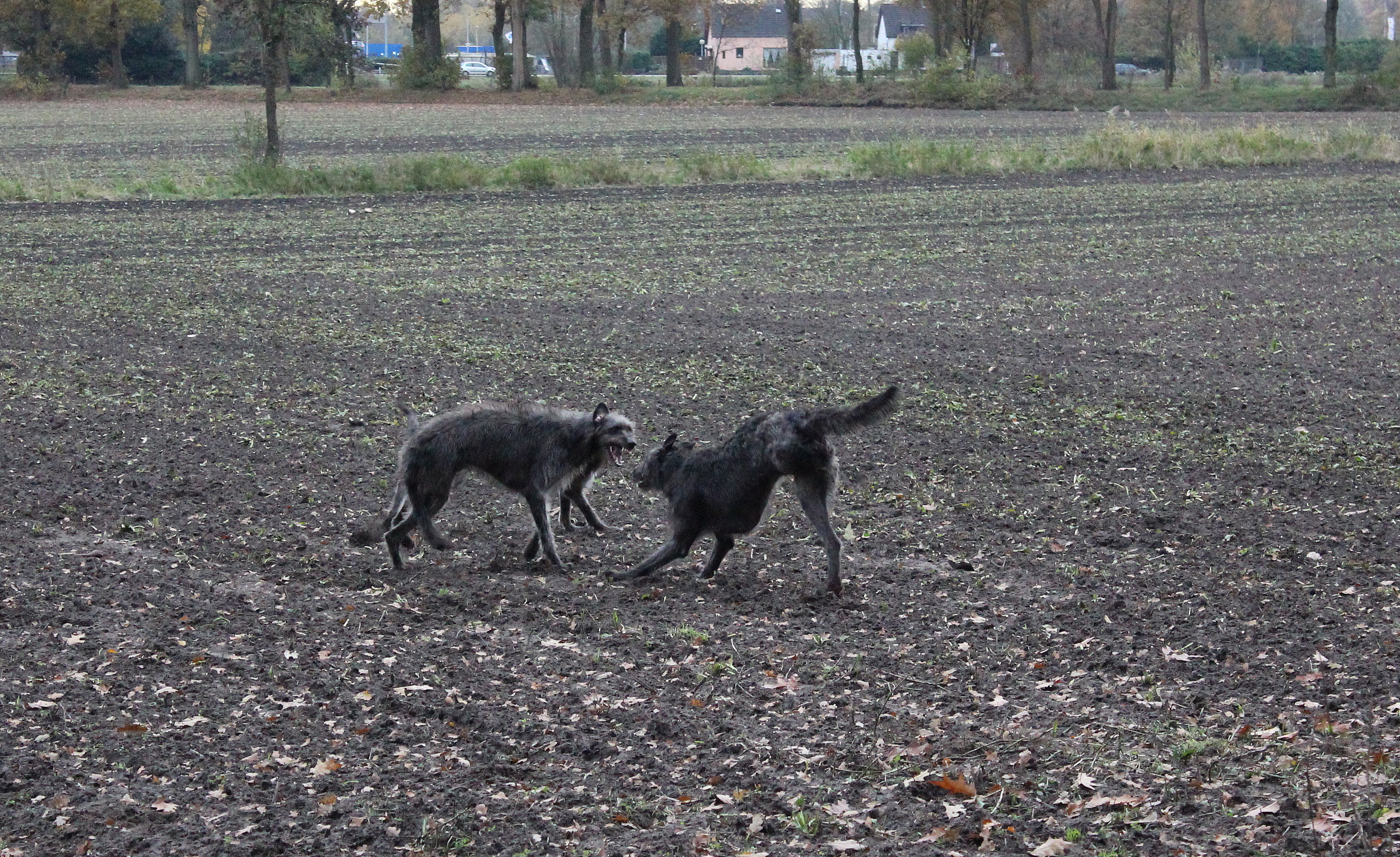 On 24 September the WRZ held her coursing in Bergschenhoek. Again 4 Deerhounds reported but now partially others. In The first circulation Calhoun ran together with E'Lynnhe Palantiri of the family humps. Calhoun felt "something" and started badly. He is becoming more and more sensitive, which is certainly at the disadvantage of his coursingprestaties. Caintha ran with Islay's Hannah, also from the family humps. In the second circulation were Hannah (155 pnt.) and E'Lynnhe (156 pnt.) divided together. E'Lynnhe, who had just been running, gave up the chucked and got a disqualification. Caintha (152 PNT.) was allowed with Calhoun (149 PNT.). Again Calhoun started badly but Caintha walked so excited that Calhoun was still going along. Hannah became first with 311 PNT., Caintha second with 309 PNT. and Calhoun third with 279 pnt. Caintha obtained her second CACNL and in combination with the previously obtained show results I can get the title "Champion of Beauty and performance" for her applications.