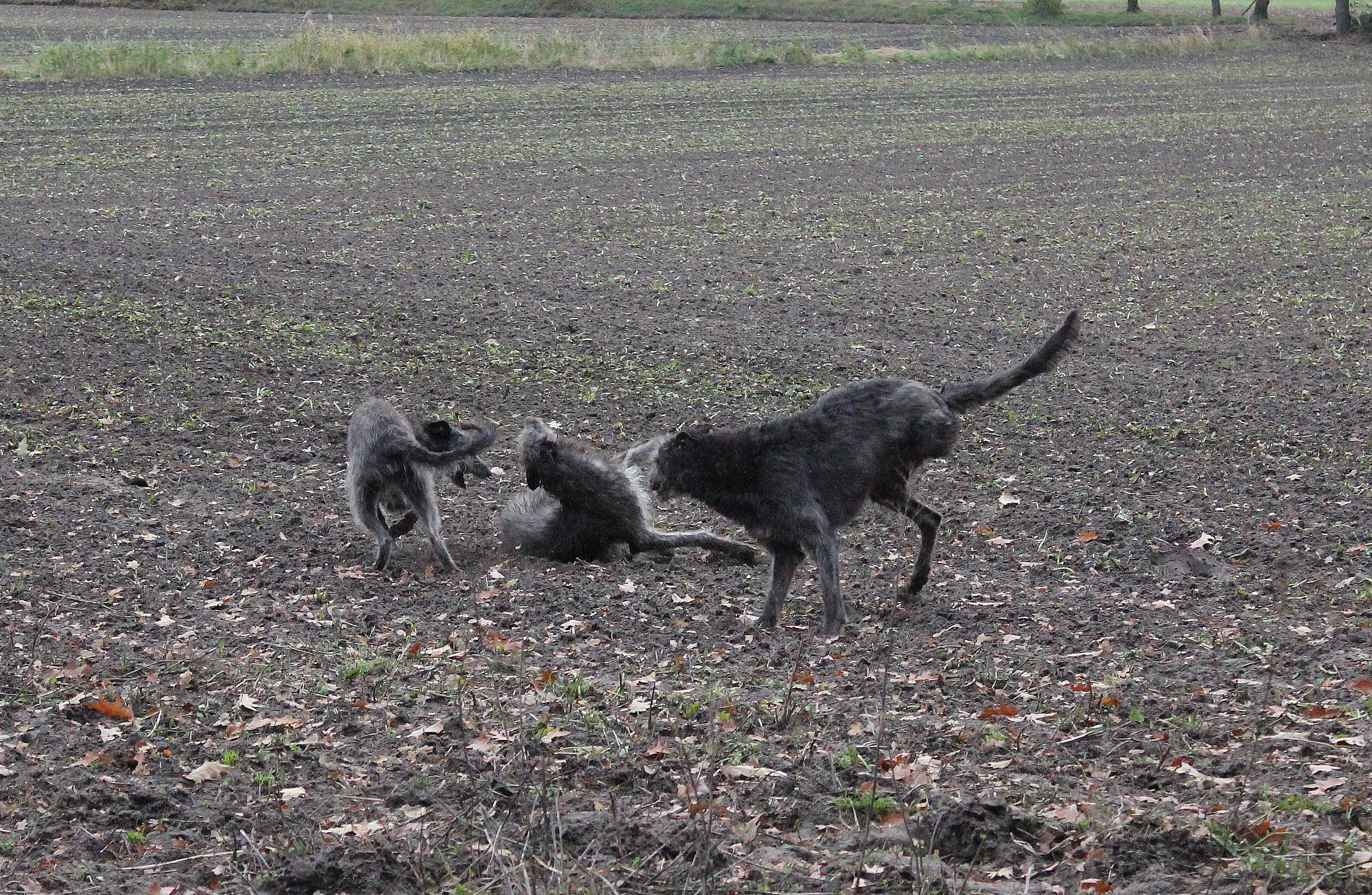 10, 11 & 12 June: Show and international CACIL coursing at Tuttleben (D). For the show on Friday, 15 Deerhounds are reported. Calhoun becomes best male with the CAC, Cheytah gets the CAC and Caintha the reserve CAC. BOB becomes Fritzen Silver Cloud by Sonja Hansen. On Sunday 6 males and 10 bitches walk the coursing. Calhoun becomes third with the Res. CACIL, Cheytah Sixth and Caintha ninth at the bitches.