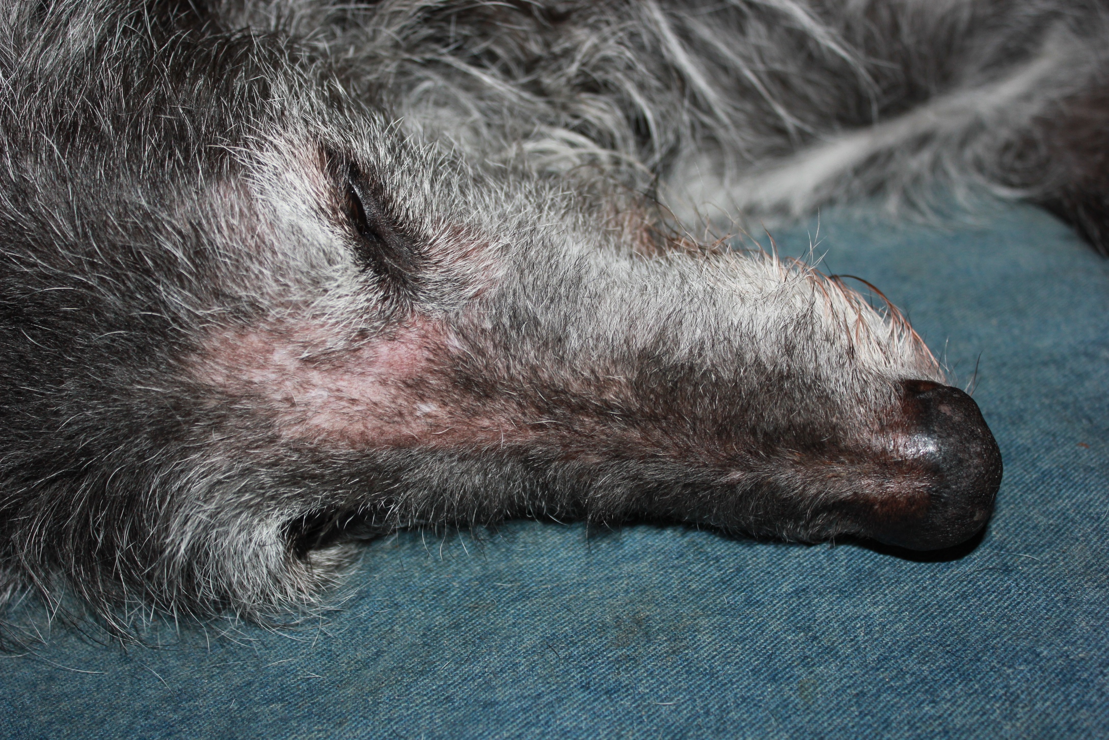 End 2012 began Caintha with ' reverse sneezing '. It was not often but something too often. After research with an ENT specialist, the diagnosis was made ' tubulopailifeer adenocarcinoma '. Or a tumor in the nose. I was told that it was low-grade and that Caintha could be old with it but soon Caintha suffered from nasal outflows in the form of bloody mucus. Unfortunately I was not familiar with the possibility of a new protocol of irradiation, but when Johan de Vos told me this, I made a work of it. It is called Quat-shot protocol and it implies that the tumor is irradiated 4 times within 48 hours and then during 3 months, once a month. In advance a CT scan is made to see how the tumor is situated and a mould is created in which the head is fixed during the irradiation. The scan was made on Friday 7 November, for this she had to of course under full anesthesia. When she woke up, at first everything seemed normal but after some attempts to stand it turned out that she was somewhat paralyzed in the back. She didn't put her feet away well and couldn't stand stable. After several more studies and an MRI scan to exclude a possible hernia, the cause could not be found. After a long talk we left Caintha in Utrecht as she could get the best care if needed. The next morning we were called at half past ten that the weather went fine with Caintha and we picked it up. At first we had blown off the rest of the treatment but after a couple of conversations with several doctors we decided to have the irradiation carried out anyway. The first session was 17, 18 and 19 November. We had put the caravan on a nearby campground so that the drive would not take too much time. This was fine and was also a piece of more relaxed for Caintha. The short-lasting narcoses was fine, she was soon the old one and she had caught a myxomatosis rabbit even once an hour after the irradiation. (when she dropped it, hupte happily continued again). A few days after the fourth irradiation, the nasal outflows stopped and in the course of the following days the nose sounds were also a lot less. We were absolutely delighted! However,