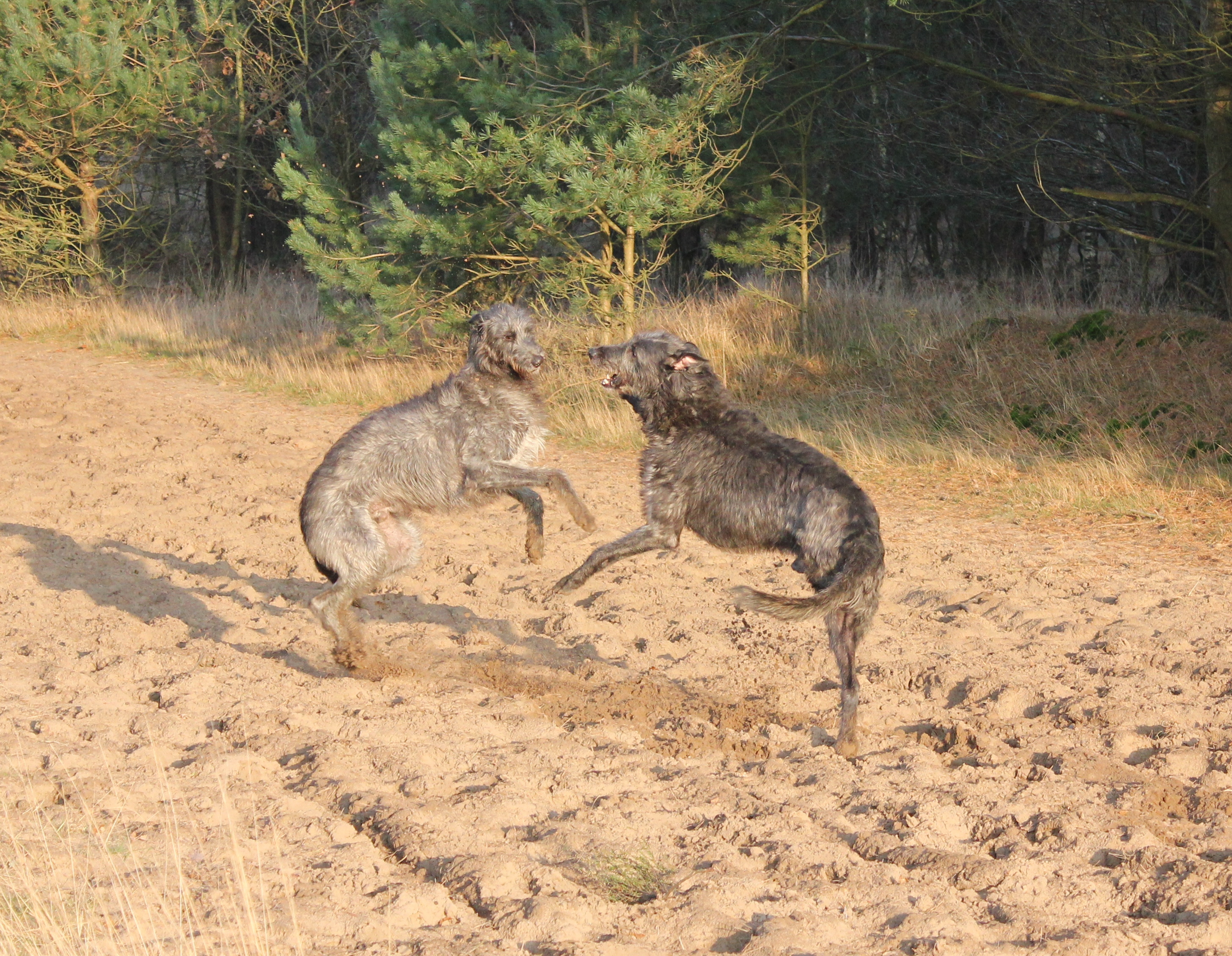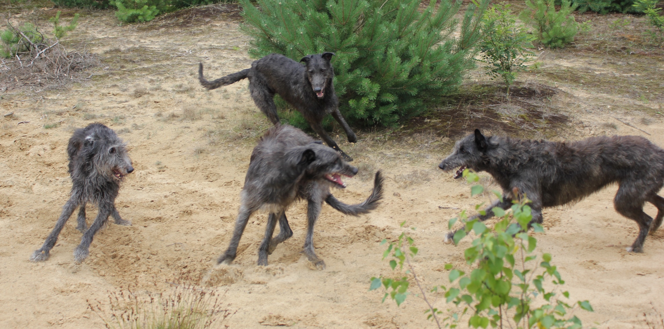 ed back, which had walked enough for the rest of the day! And Simon had enough stress for the rest of the weekend, which left Calhoun (fortunately) no more loose! The weather was extraordinary, almost 30 degrees but with a little wind so it was still well toefen. Only for a big walk it was soon too hot for our elderly club; 3 of 10 years and 1 of 11.5. On Saturday so the show, Sonja showed Brandir, Bernice and Silva. There were 9 Deerhounds reported, 8 present. Brandir and Bernice got their first YOUTHCAC and Brandir became JeugdBOB. BOB and BIS became the Kilbourne Harvest Moon, the brother of the father of Brandir and Bernice, living in Finland. Sunday, the coursing for which two Finnish Deerhounds were reported. One of them was blixen the Great Scott, this male had walked with Calhoun in the Czech Republic during the EKC in 2009. It was clear to see that he was a day old! Monday morning we all left again. We first went to Tüttleben to put our caravan there before the Pentecost weekend. From here we drove home on Tuesday.