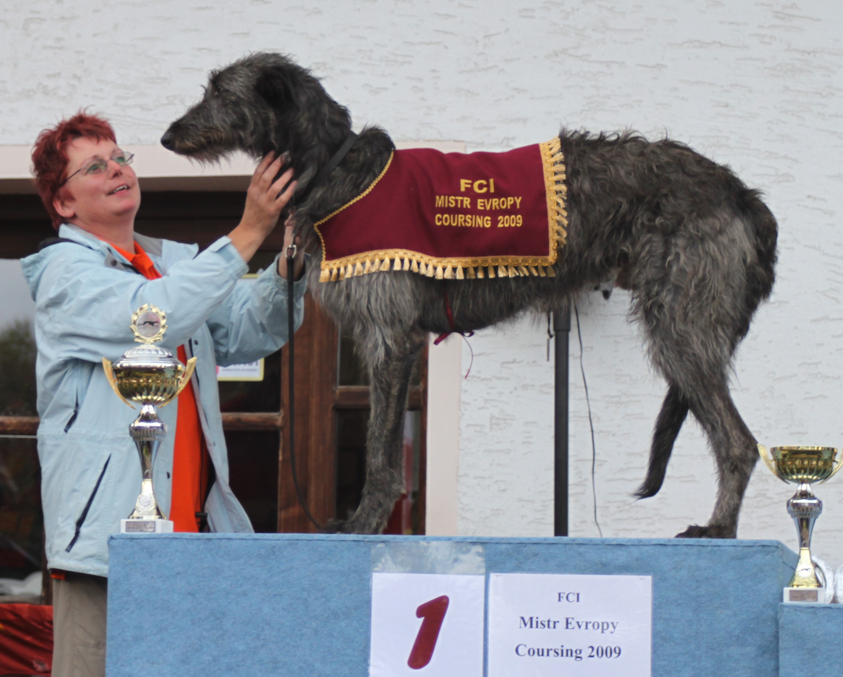 Last year I was still very enthusiastic and proud that my Calhoun O'Cockaigne had won the European Coursing Championship, on 1 July this year I received a letter from the Board of directors that the FCI has withdrawn its title. How can this be? To keep a long and difficult story short, it is tantamount to saying that, on the basis of statements by Frank Schmidt and Mr Martin Haas, both from Germany, the FCI believes that Calhoun would have walked his two qualifying matches too young.