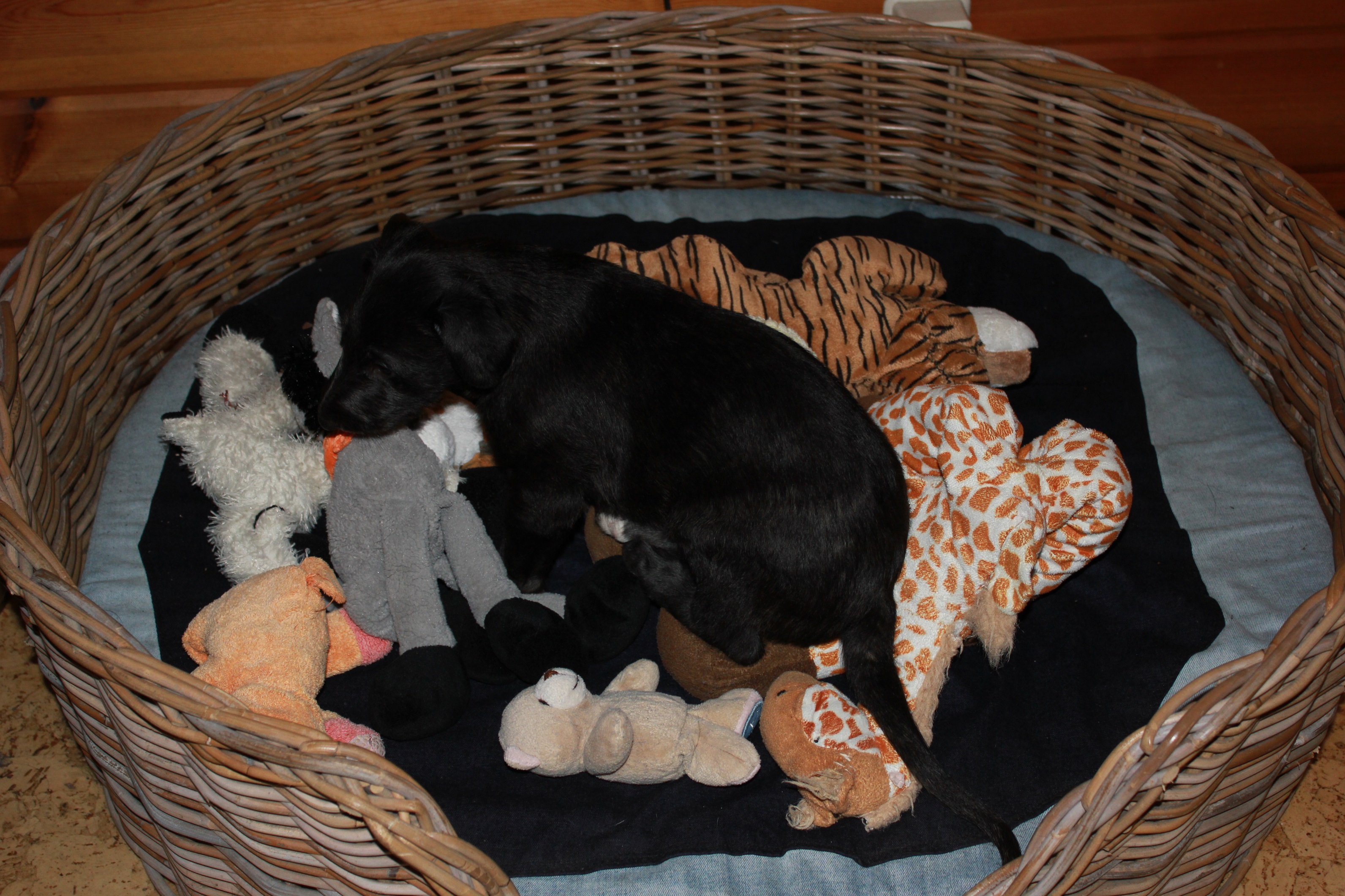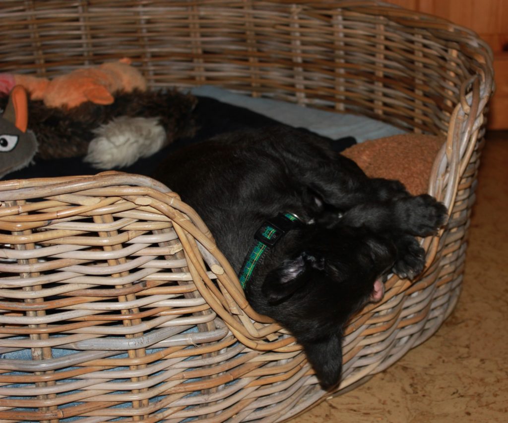 Their favourite place in the house is the large basket where Brandir usually lies. He always looks very upset when the puppies have taken his bed again. Poor grandpa Brandir!