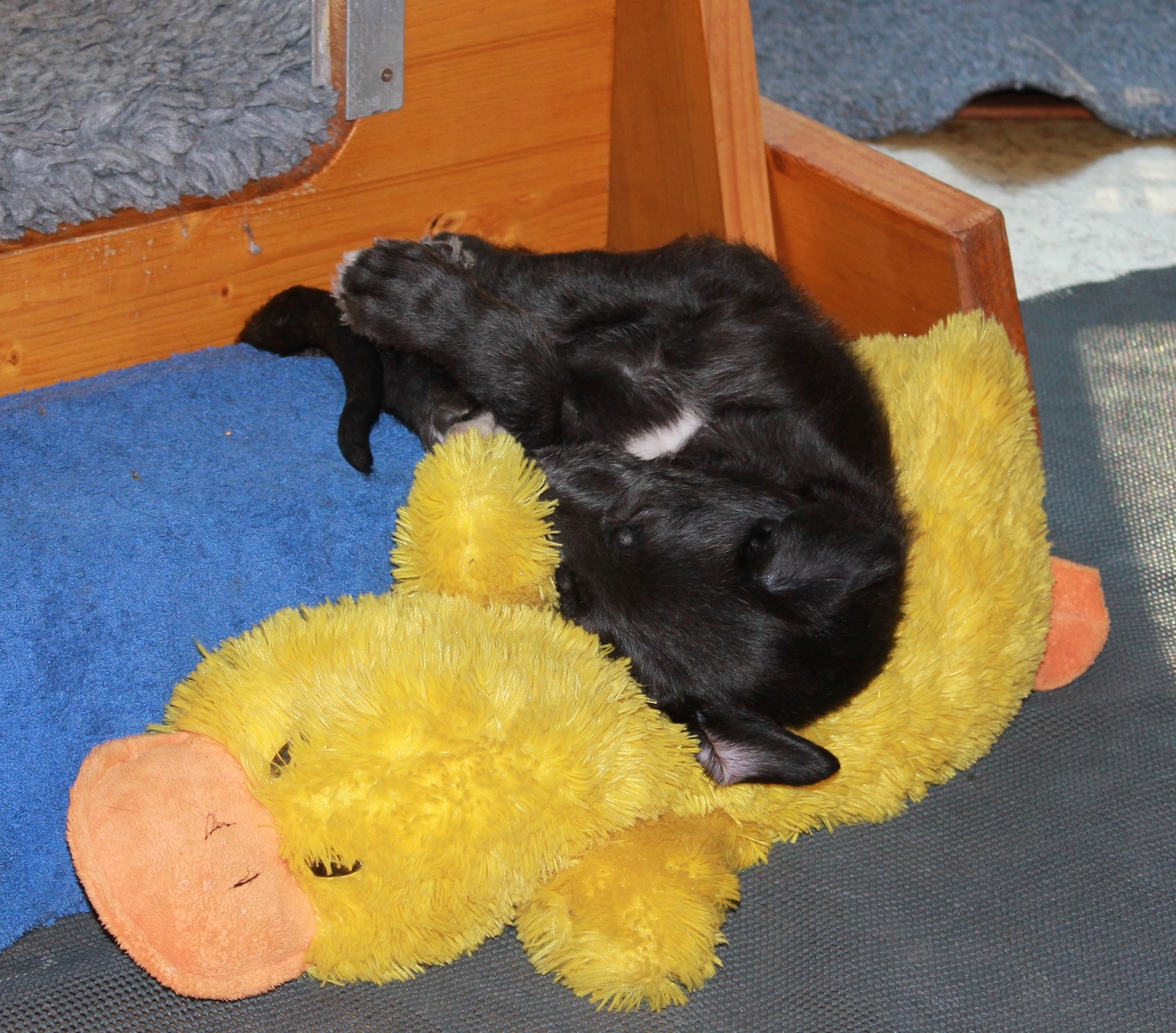 In the meantime they occasionally show a bit of playing behaviour, the eyes almost open and the standing is also getting better, but they are too thick to walk, top heavy, they roll over immediately.
