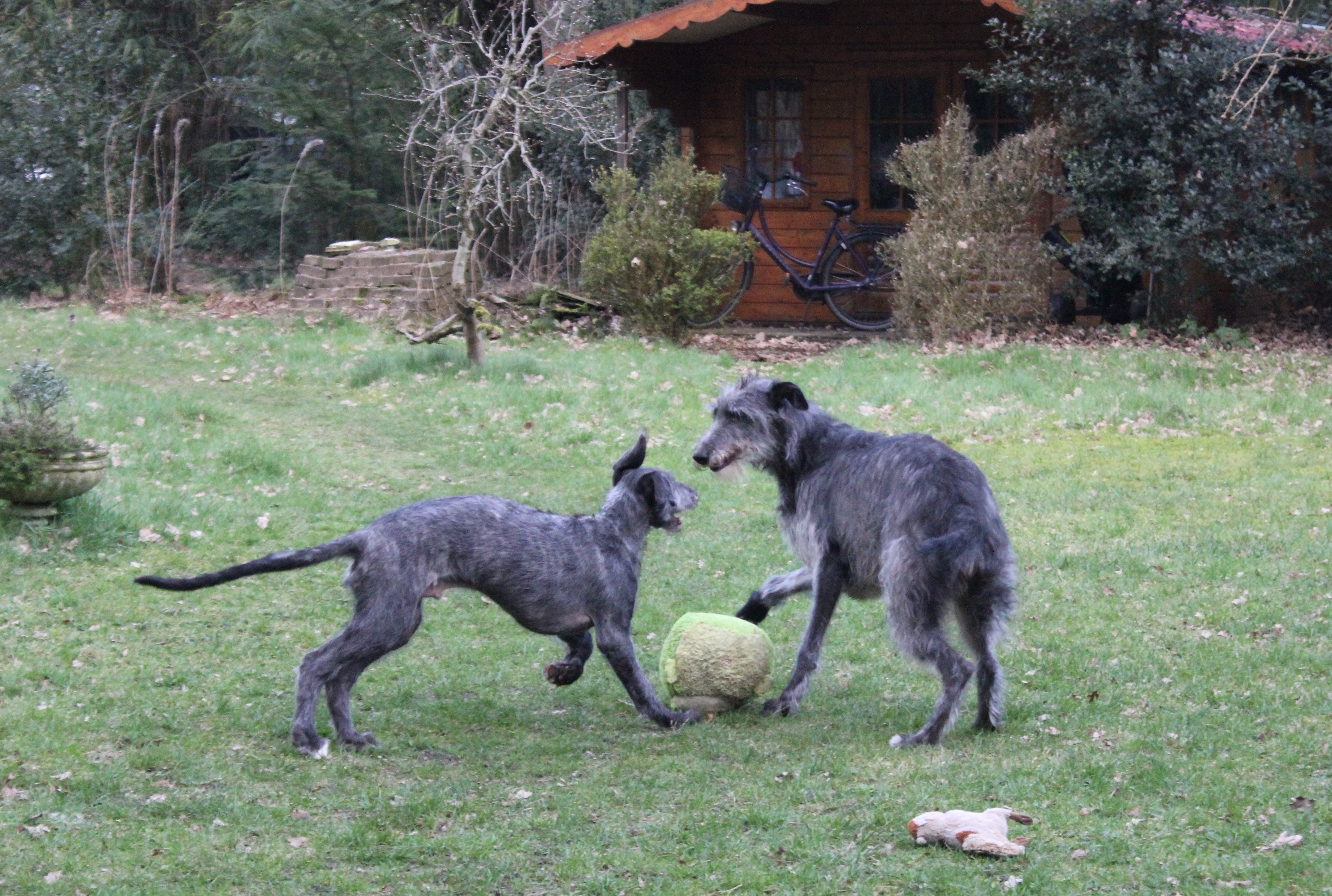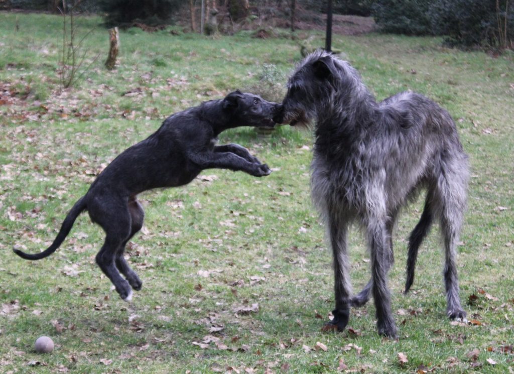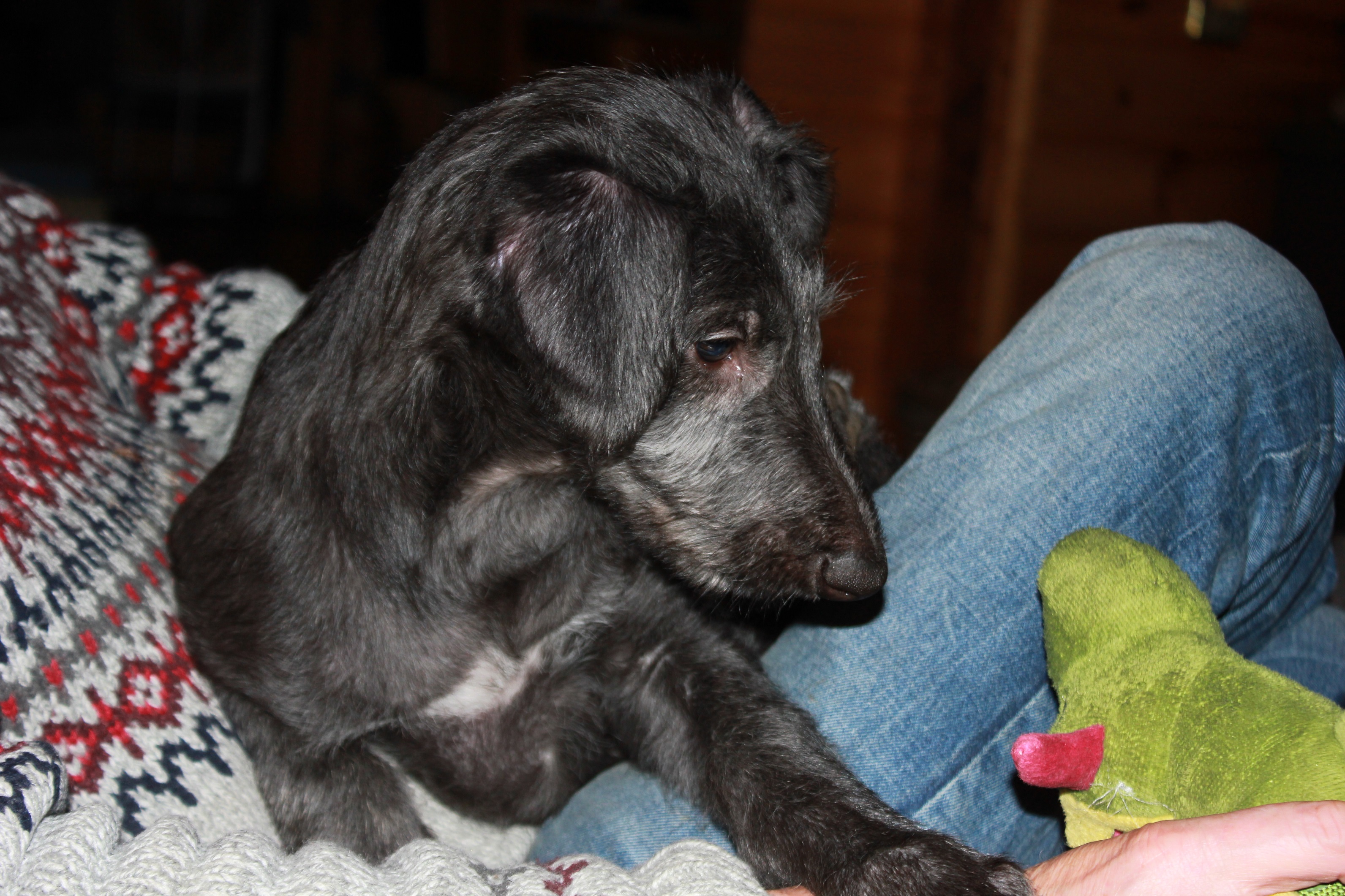 Today, Cearrean became 1 year old. Last year, right after his birth, when you picked him up, he crawled into your sleeve now he has to lash my trousers every evening. He no longer fits in a sleeve with his 46 kilos, but his nose still fits in a trouser leg! He has become a bit firmer and I have to say that he is gradually starting to look better. His knee is still a problem, he is still thickened and painful after playing and running. But yes, keeping him calm is really not an option, I have never had such an energy bomb!