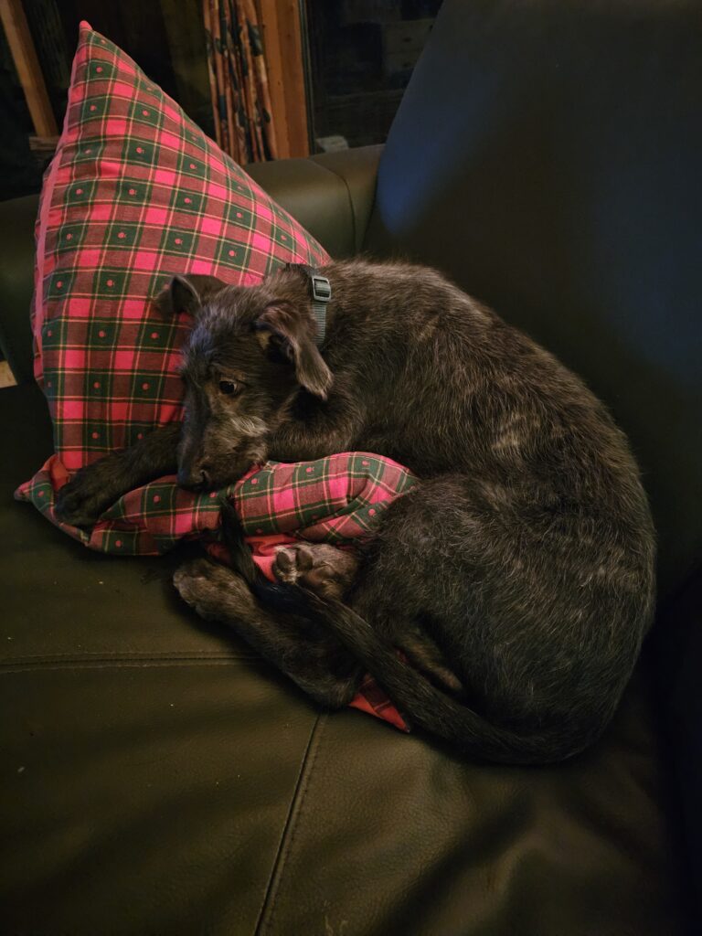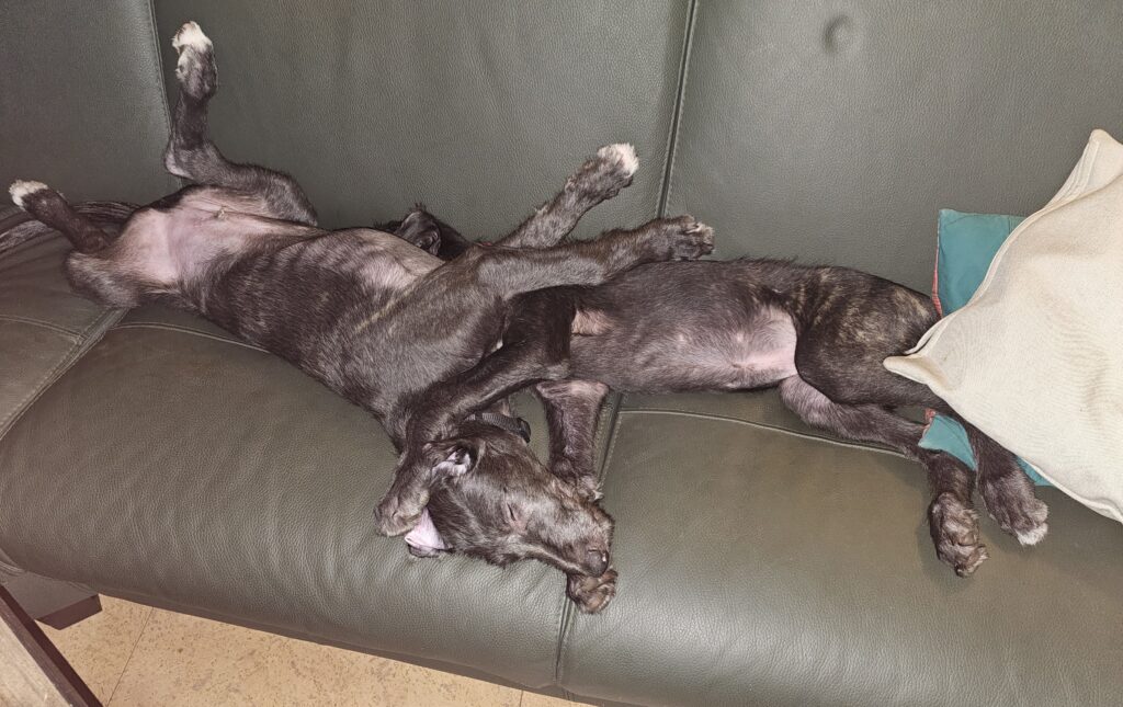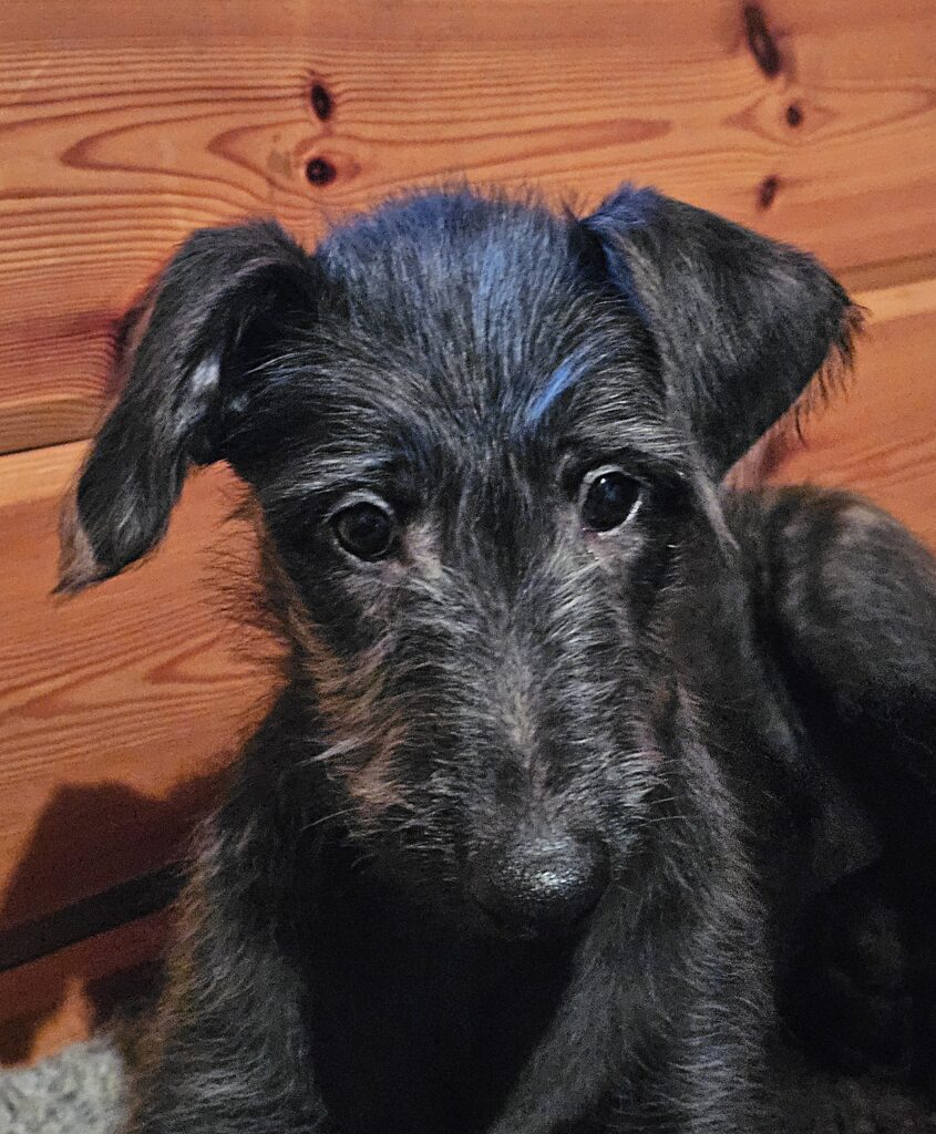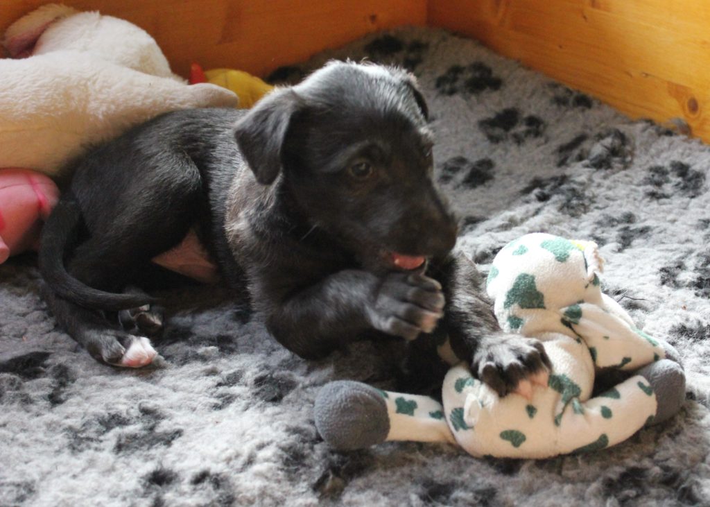 Today, Cearrean became 1 year old. Last year, right after his birth, when you picked him up, he crawled into your sleeve now he has to lash my trousers every evening. He no longer fits in a sleeve with his 46 kilos, but his nose still fits in a trouser leg! He has become a bit firmer and I have to say that he is gradually starting to look better. His knee is still a problem, he is still thickened and painful after playing and running. But yes, keeping him calm is really not an option, I have never had such an energy bomb!