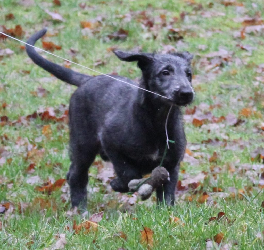 In the meantime, Cearrean has had coursing training. The cat toy, a mouse on a rod, is ideal for this. Cearrean finds it a fantastic game and shows itself to be a fanatic. Let’s hope he continues to like it.