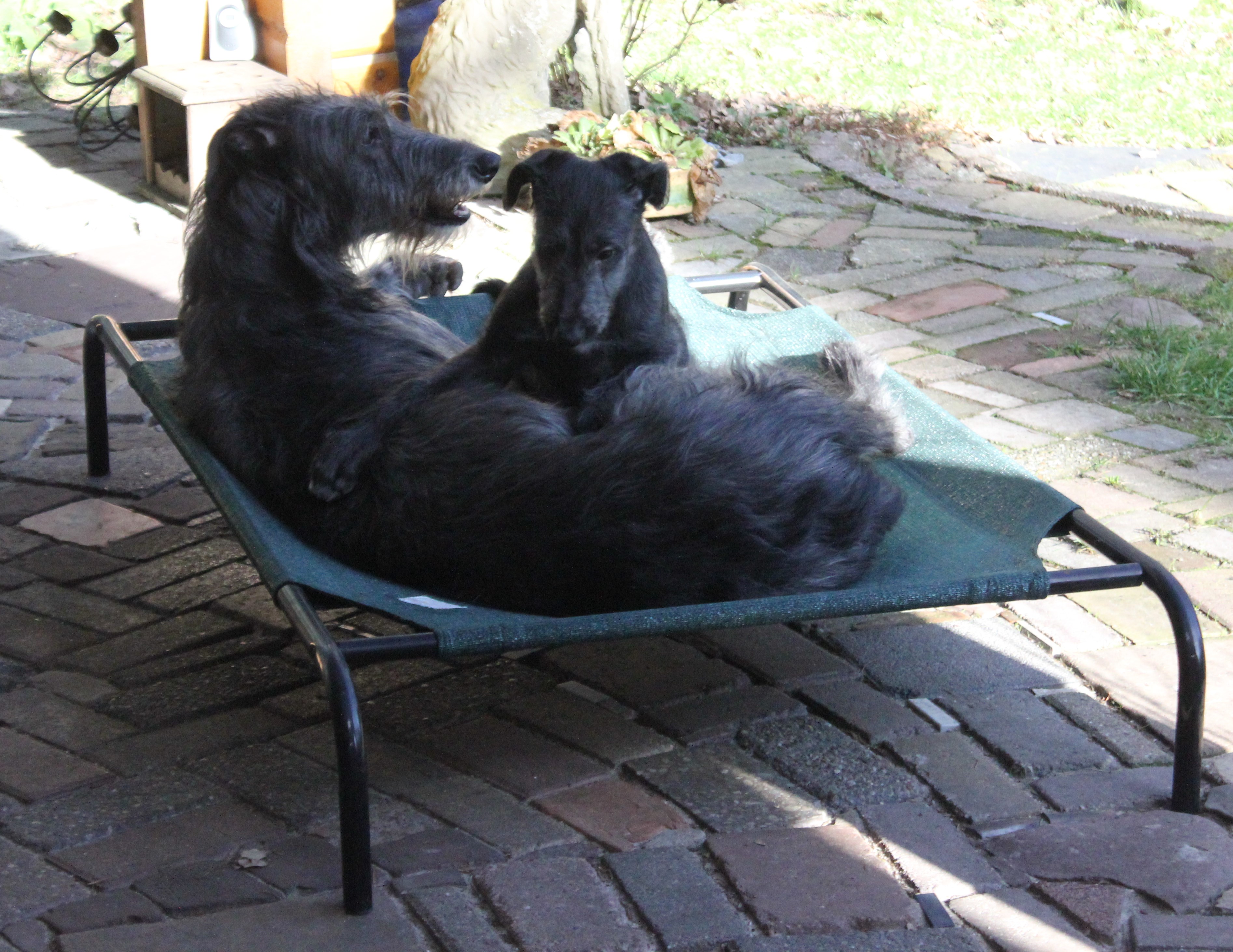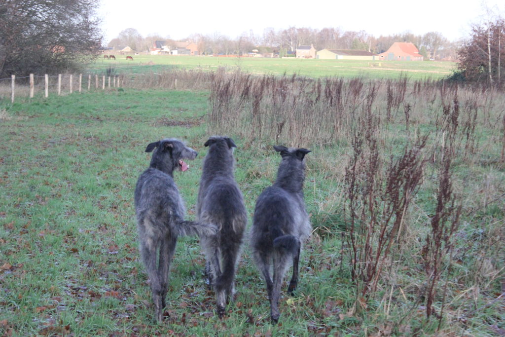 The last days it was very nice to enjoy the sun again. After all that rain and cold wind, the hounds loved to lie on their stretchers in the sun. Cearrean preferred to keep scratching around, you sleep at night, not during the day!
