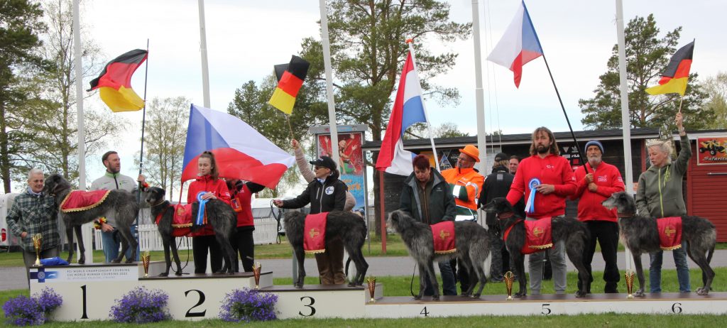 From Kristianstad we left via Gothenburg by ferry to Frederikshaven in Denmark where we had to prepare a field for the International Coursing in Nørresundby the weekend after the World Cup. On Saturday, July 8, the sighthound show was held where Charlaigne became Danish Champion and later in the day BIS. Judge was Agneta Doverholt.