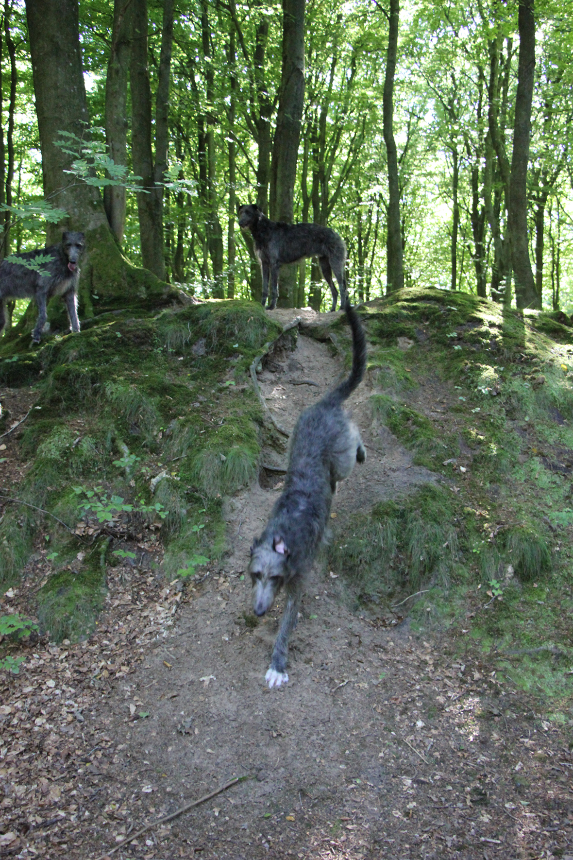 On March 28, Sonja came to us for a few days and then we went to the Deerhound Jahresausstellung in Cologne. As judge we had Brit Schöne-Brodwall from Norway. A total of 51 Deerhounds were entered of which only 15 were males! I had entered Cytaugh in the veteran class and out of 5 old ladies she came third. Charlaigne was in the working dog class and was placed behind a dog that I wouldn’t want to have myself. To say the least, it was a very strange judging.