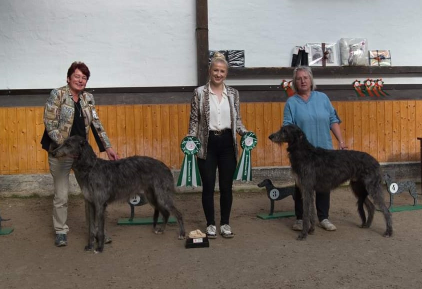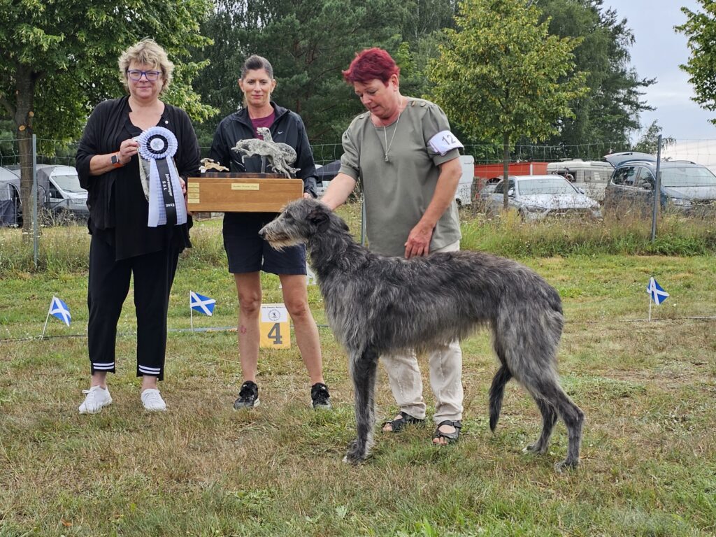 e in fifth place. And at the awards ceremony, which is always a feast in Tüttleben, it appeared that Cytaugh had won the prize for beauty and performance!!! What was I proud of her! After a year with a lot of fear and care for her foot, it turns out that all this effort was not for nothing. For the eighth time I took the "of the Scottish Highlands" Wanderpreis for the best Gebruikshound home and the since last year, for the Deerhound with the highest points number for Schönheit und Leistung, made available Quodlibet Drambui Trophy.